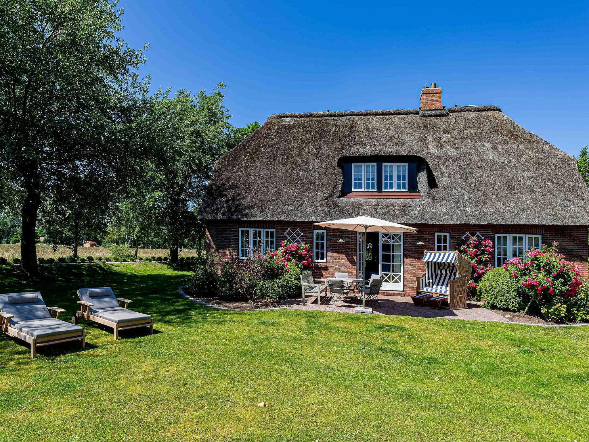 Ein herzliches Willkommen in unserem wunderschönen, reetgeckten Einzelhaus Landhaus de Meere. Es liegt schön und ruhig am Rande der Felder und doch gleichzeitig zentral in Nieblum in der Nähe zum Teich „De Meere“. Zum herrlichen Sandstrand sind es nur wenige Minuten. Genießen Sie die gemütliche, hochwertige Einrichtung und die Großzügigkeit der lichtdurchfluteten Räume in Ihrem Reethaus. Der liebevoll angelegte Garten ?mit Blick über die Wiesen verleitet zum Träumen und wird Sie begeistern. Einfach das perfekte Haus für Sie und Ihre gesamte Familie. Besuchen Sie uns und genießen Sie eine herrliche Urlaubszeit.
