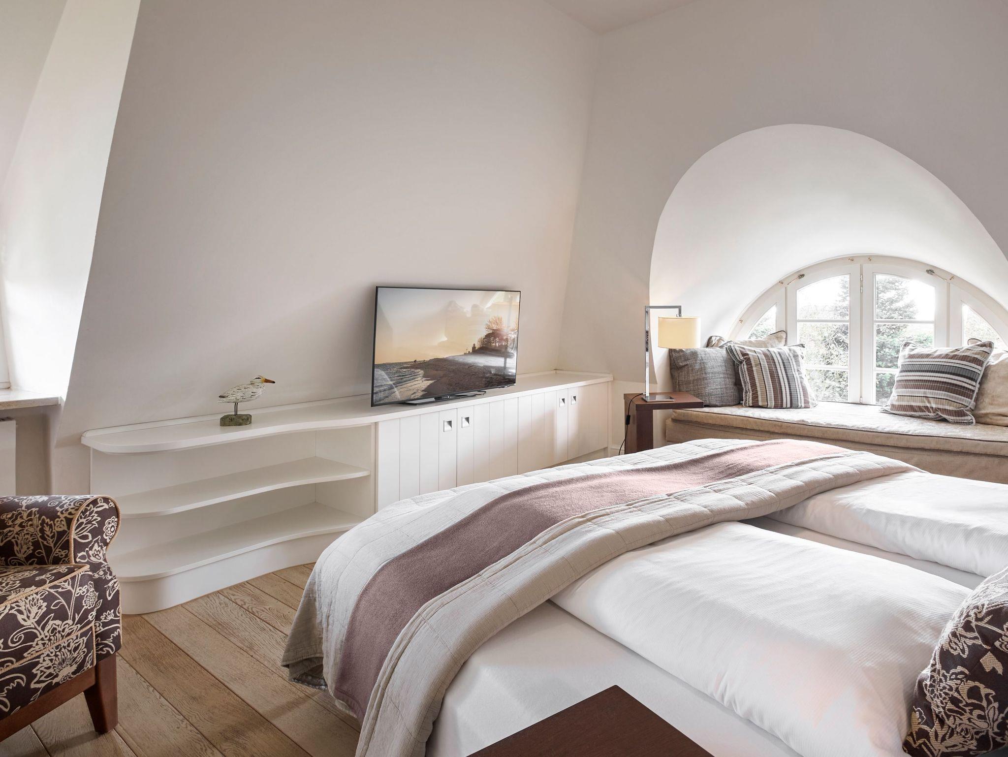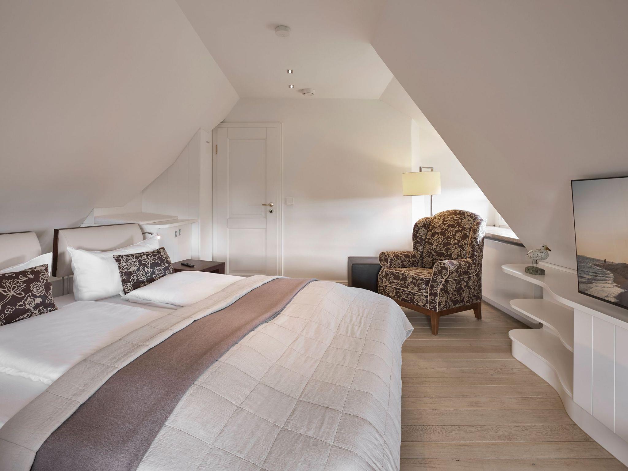 Luxus, Lässigkeit und Modernität: All dies steht für das stilsicher eingerichtete „Landhaus Am Dünenweg - Ost. Genießen Sie Ihren Aufenthalt in diesem großzügigen Loft-Appartment. Die nach Süden ausgerichtete Holz -Terrasse, wie auch die Frühstücksterrasse bieten alle Optionen für einen sonnigen Urlaubstag. Im Obergeschoss befinden sich zwei luxuriöse Doppelzimmer. Entdecken Sie dort die gemütlichen Rückzugsmöglichkeiten mit Meerblick! Ein Bad mit Rain-Dance-Dusche ist im Obergeschoss gelegen, ein weiteres Bad mit Wanne befindet sich im Erdgeschoss. Die Wellness-Oase dieses Hausteils mit verglaster Sauna, Ruhebereich und Dusche im Untergeschoss setzt neue Maßstäbe.