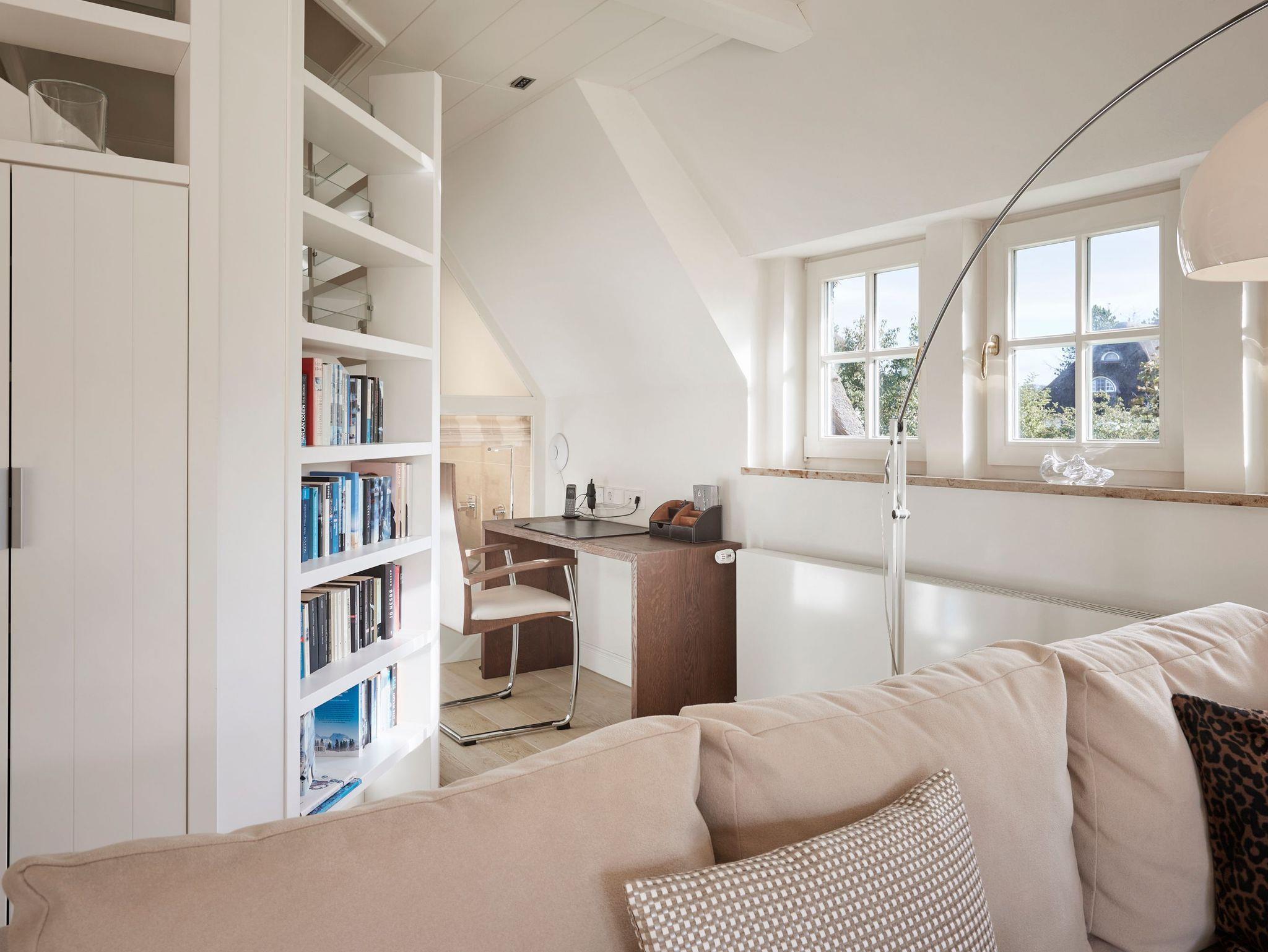Luxus, Lässigkeit und Modernität: All dies steht für das stilsicher eingerichtete ?Landhaus Am Dünenweg - Ost. Genießen Sie Ihren Aufenthalt in diesem großzügigen Loft-Appartment. Die nach Süden ausgerichtete Holz -Terrasse, wie auch die Frühstücksterrasse bieten alle Optionen für einen sonnigen Urlaubstag. Im Obergeschoss befinden sich zwei luxuriöse Doppelzimmer. Entdecken Sie dort die gemütlichen Rückzugsmöglichkeiten mit Meerblick! Ein Bad mit Rain-Dance-Dusche ist im Obergeschoss gelegen, ein weiteres Bad mit Wanne befindet sich im Erdgeschoss. Die Wellness-Oase dieses Hausteils mit verglaster Sauna, Ruhebereich und Dusche im Untergeschoss setzt neue Maßstäbe.