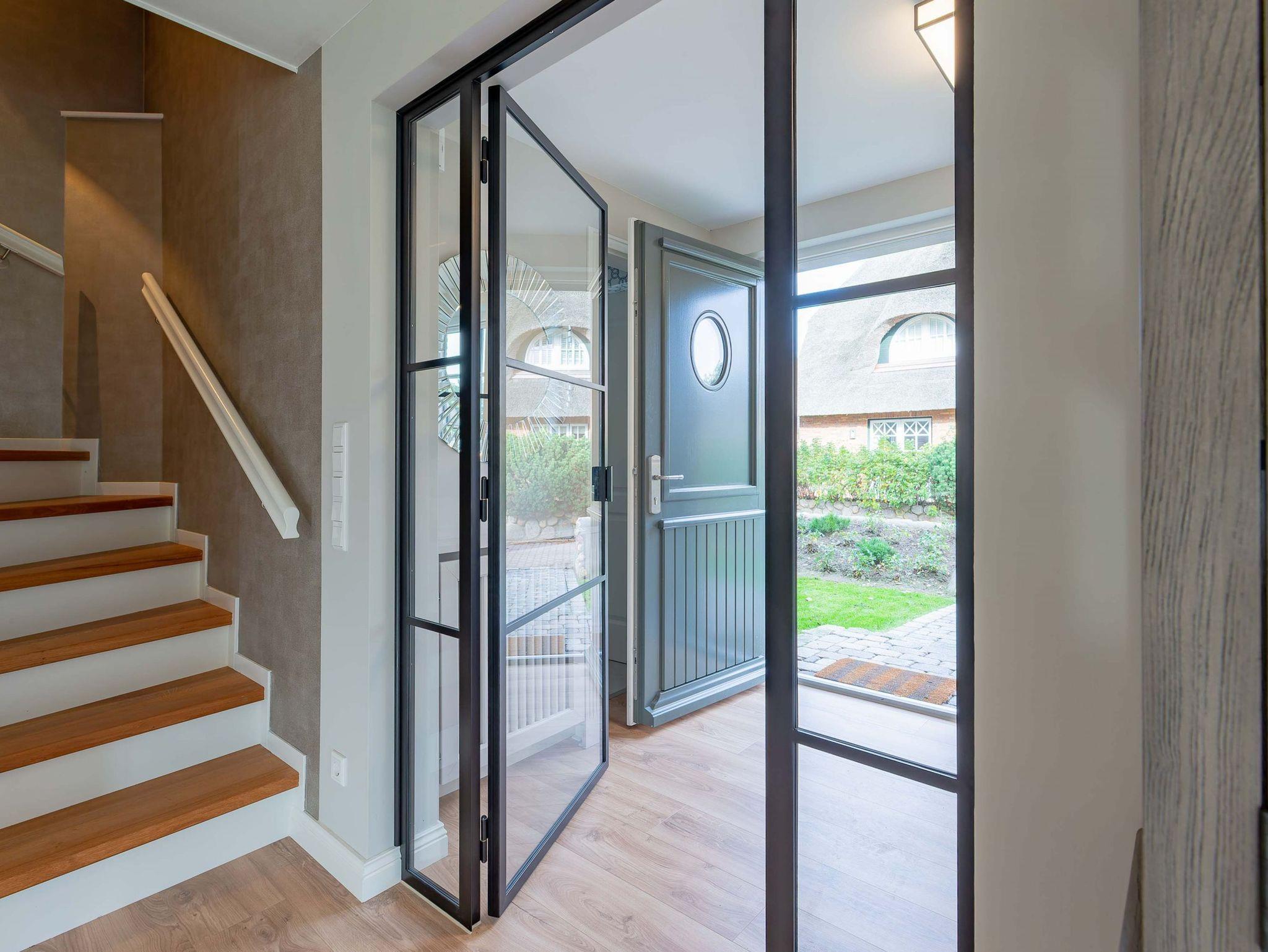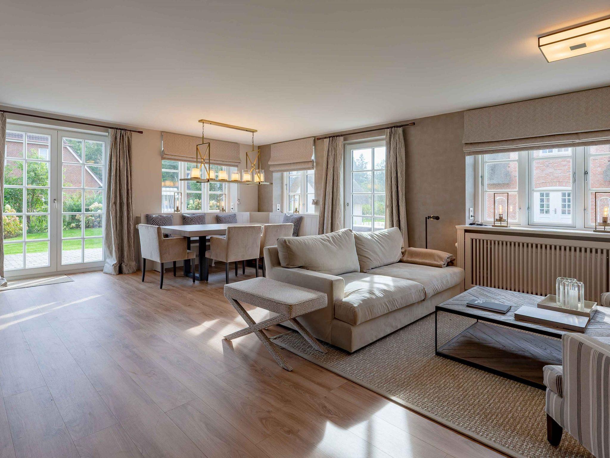 Für die schönste Zeit des Jahres bieten wir mit dem East Side eine Haushälfte unter Reet in Nieblum an. Die Räume wurden von einem bekannten Hamburger Interior Designer modern und sehr geschmackvoll gestaltet. Auf dem sonnig und ruhig gelegenen Grundstück können Sie den Tag mit einem Kaffee begrüssen oder den Abend beim Sonnenuntergang im Strandkorb ausklingen lassen. Günstig gelegen befinden sich in 200 Meter Entfernung das Zentrum von Nieblum mit Restaurants, Bäcker und bezaubernden Läden zum Einkaufen. Nur 800 Meter entfernt ist der feinsandige Nieblumer Strand mit Wassersportmöglichkeiten. Drei Schlafzimmer jeweils mit Fernseher bieten Platz für 6 Personen. Die Sauna im Spitzboden und der Kamin im Wohnzimmer sorgen für Behaglichkeit zu jeder Jahreszeit. Die offene Küche verbindet Ess- und Wohnraum und lädt zum Verweilen ein. Die schönsten Gassen und Bauerngärten und die alten Kapitänshäuser möchten von Ihnen entdeckt werden. Nieblum, als eines der schönsten Dörfer in Nordfriesland, wird bestimmt auch Ihr Herz erobern.