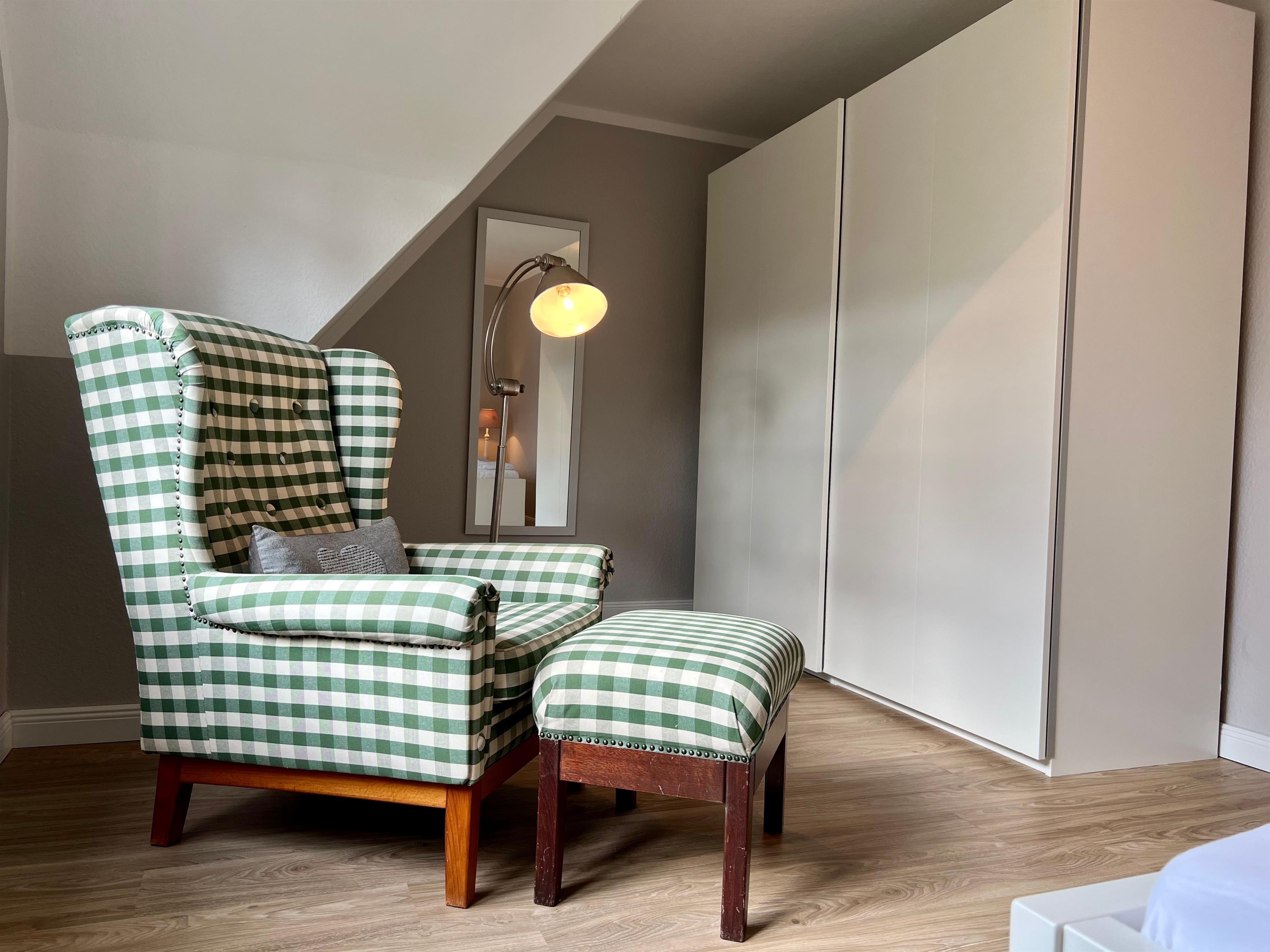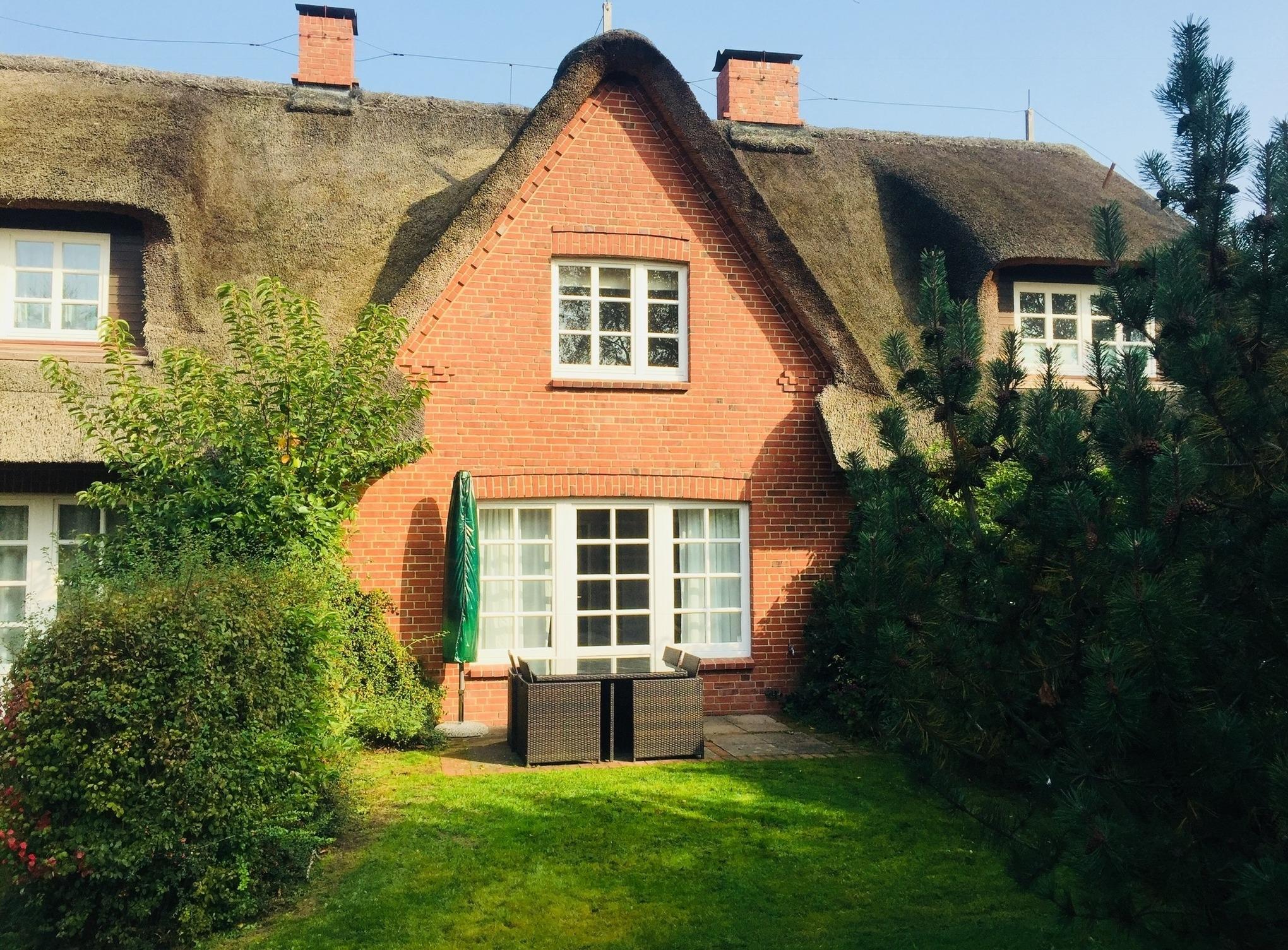 Im Dezember 2017 wurde das Haus Friesenfeuer für seine Feriengäste komplett neu ausgestattet. Auf einem sonnigen und großen Gemeinschaftsgrundstück gelegen, erstreckt sich das reedgedeckte Reihenmittelhaus über 85 Quadratmeter Wohnfläche auf zwei Etagen und bietet Platz für vier Personen plus Kleinkind. Es verfügt im Erdgeschoss über einen großzügigen und gemütlichen Wohn- und Essbereich, eine separate vollausgestattete Küche und ein geräumiges Badezimmer mit Dusche. Im Obergeschoss befindet sich ein großes Schlafzimmer mit Doppelbett, ein Kinderzimmer mit Etagenbett und ein weiteres Badezimmer mit Badewanne und kostenfrei nutzbarer Waschmaschine. Der ausgebaute Dachbereich kann als Abstellraum oder Spielzimmer für Kinder genutzt werden. Die sonnige Südwestterrasse mit zugehörigem gepflegten Garten lädt zum Verweilen ein. Ein Kfz-Stellplatz sowie eine geschützte Abstellmöglichkeit für Fahrräder befinden sich ebenfalls auf dem Grundstück.