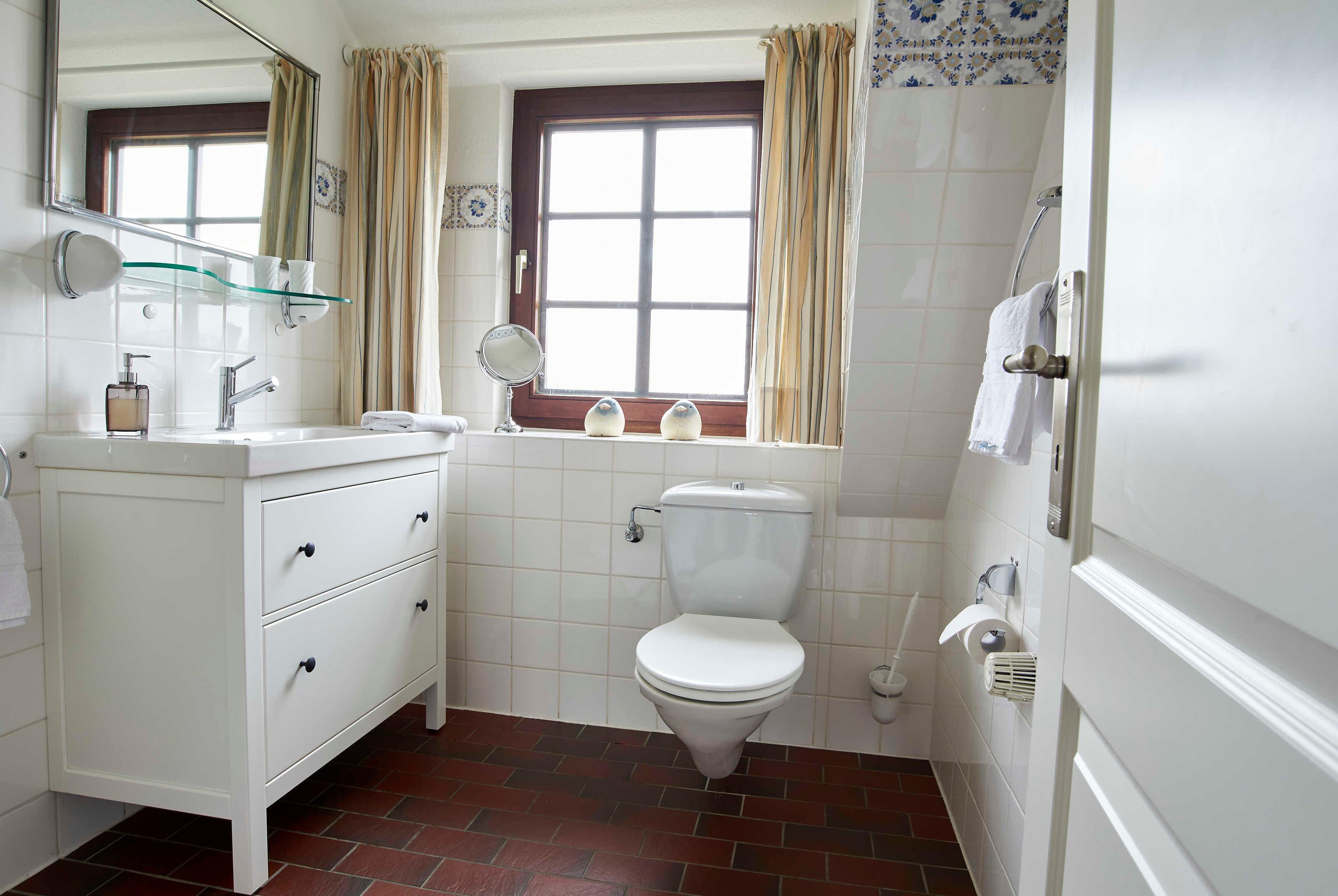 Das 2015 sanierte Bad ist mit einer Dusche und einem Waschtisch ausgestattet.