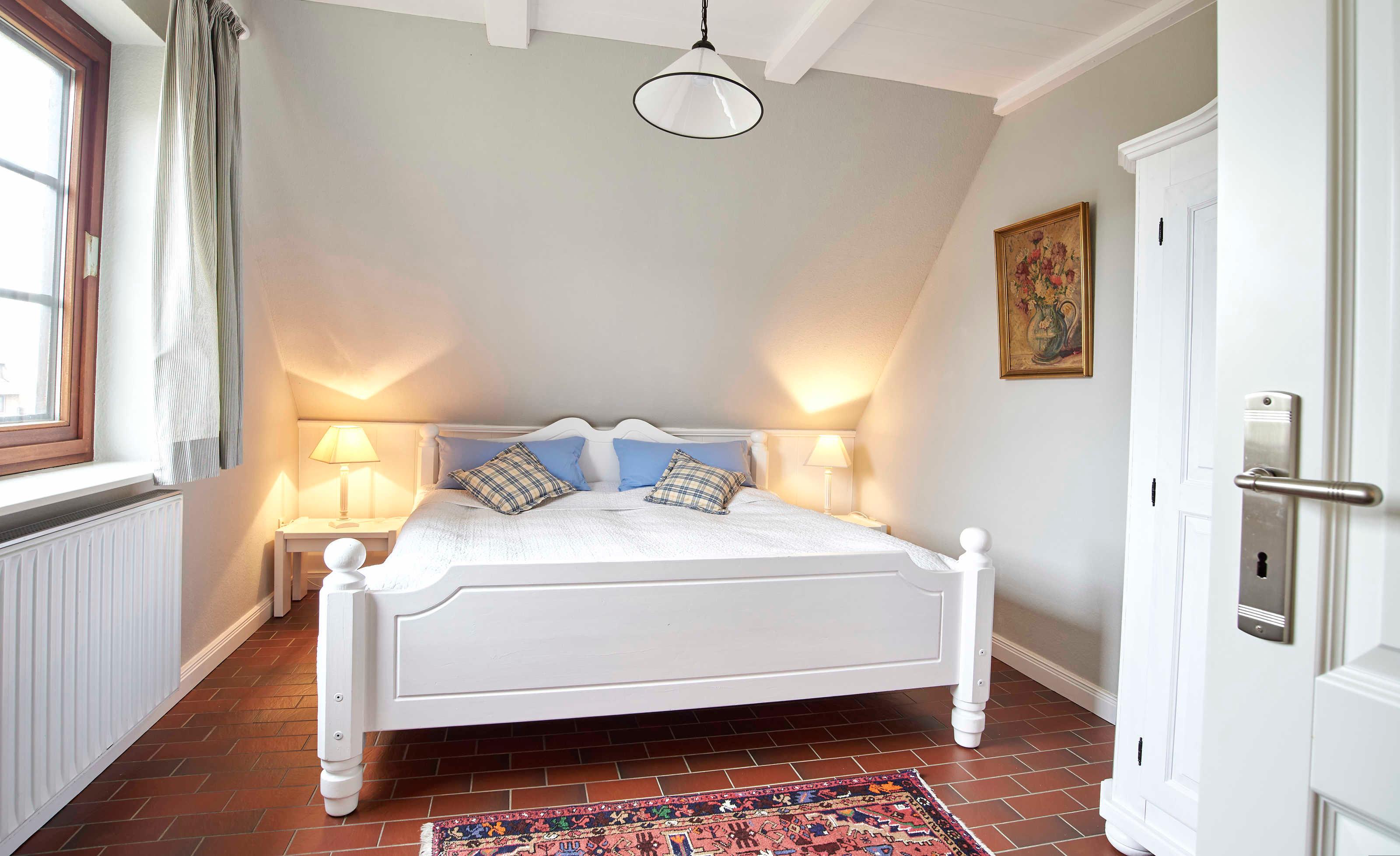 Das Schlafzimmer ist ausgestattet mit einem Doppelbett und einem Kleiderschrank.