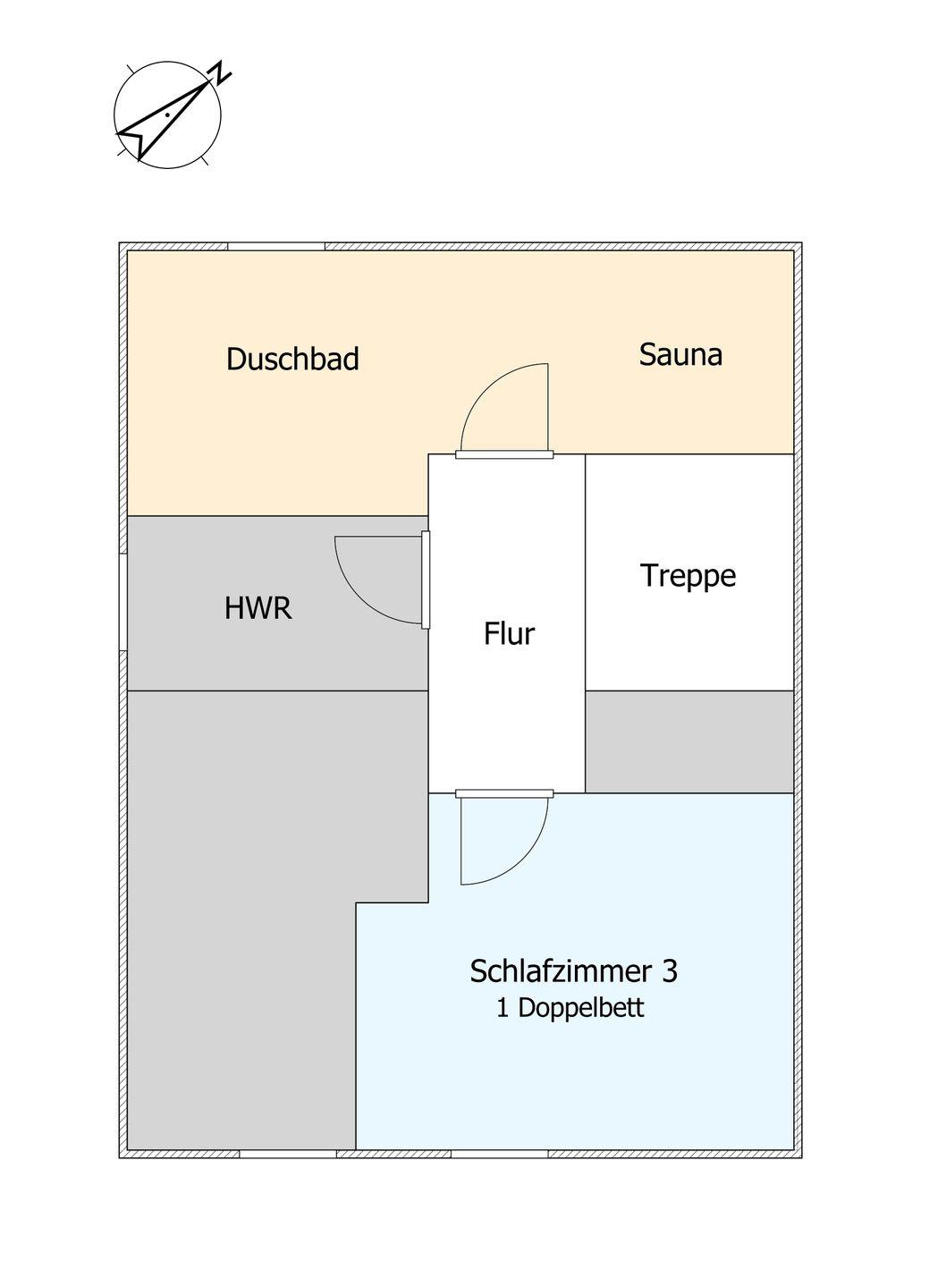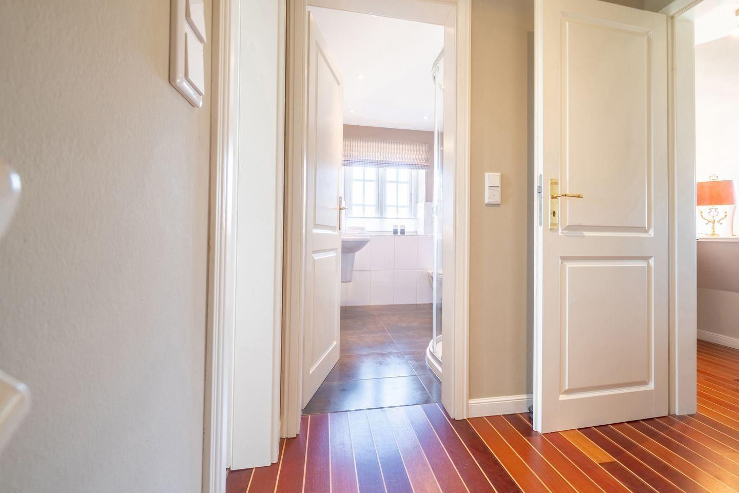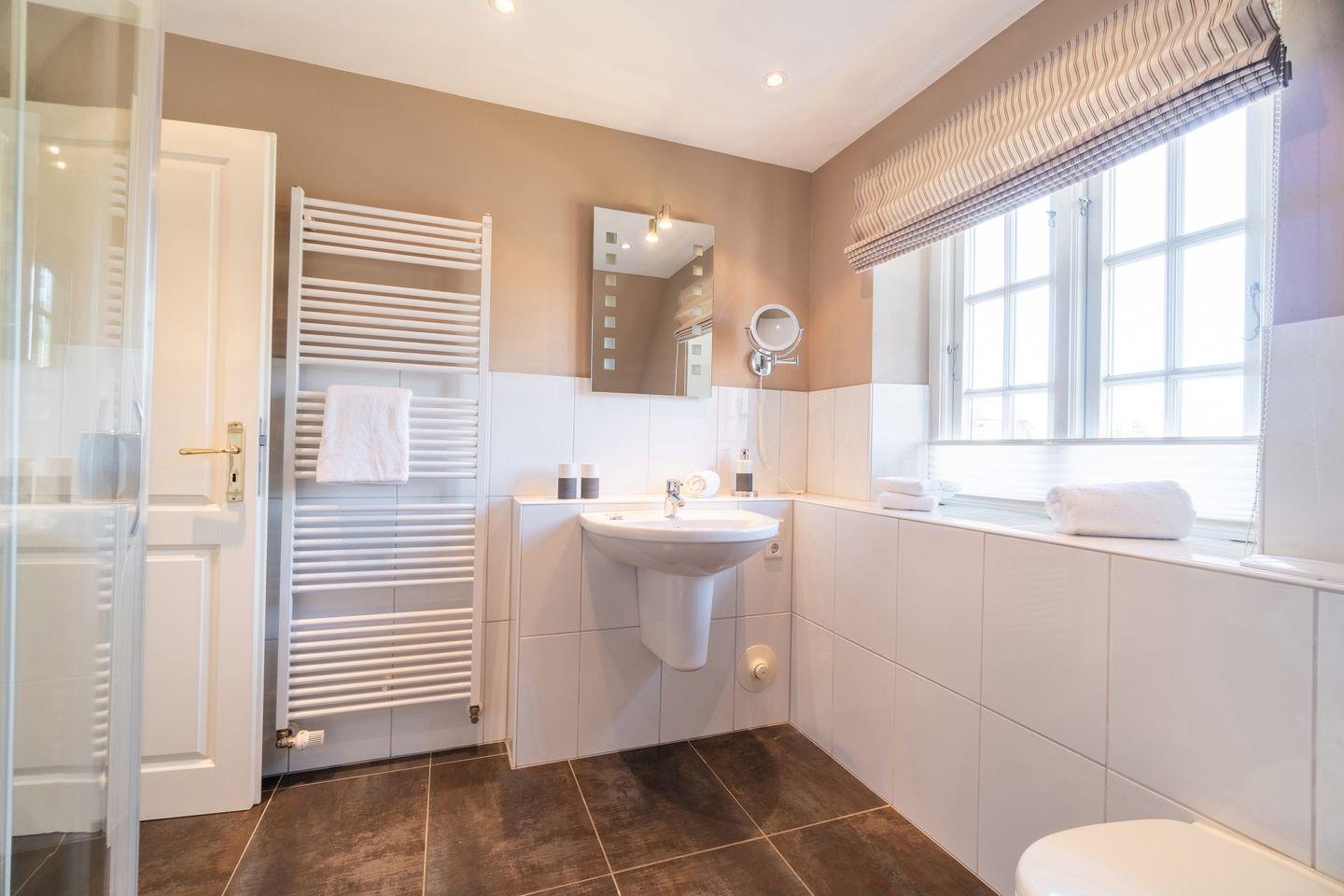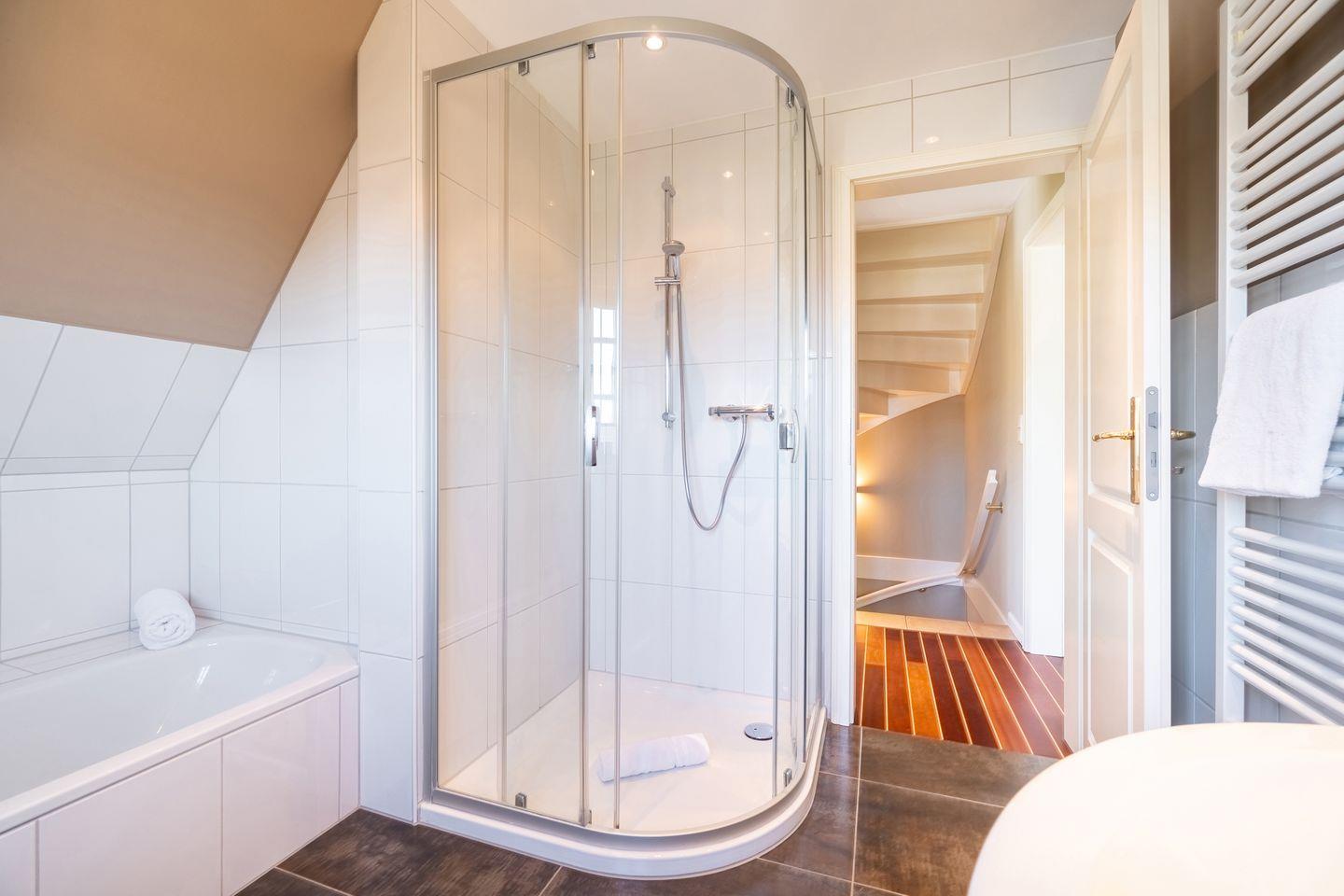 Im Obergeschoss sind die drei Schlafzimmer - zwei mit jeweils einem Doppelbett, eines mit einem Einzelbett - sowie eines der beiden Duschbäder, welches zudem über eine Badewanne verfügt, gelegen.