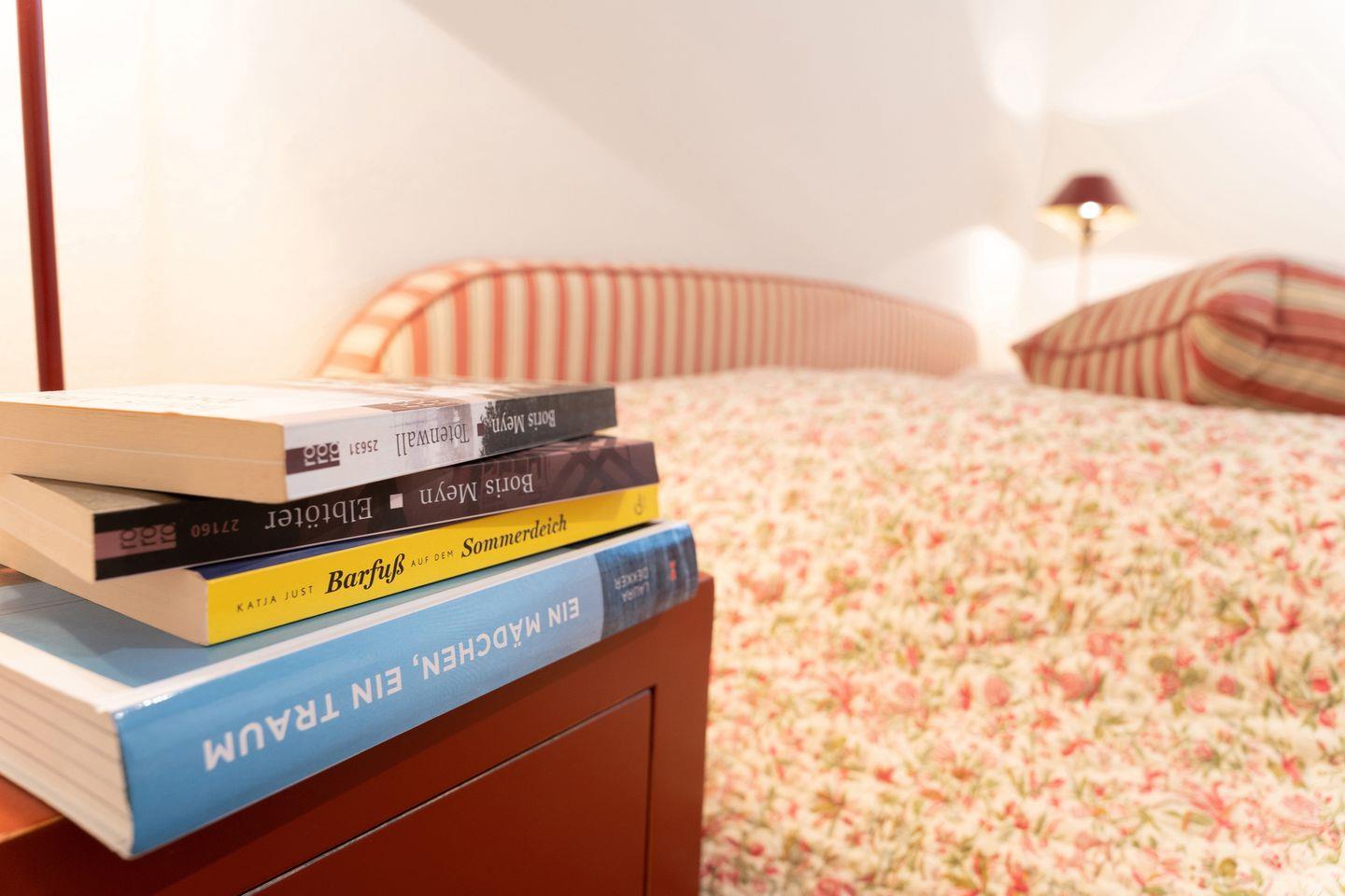 Zu den Highlights der Ferienunterkunft zählen wir u. A. den Original Mylin-Kachelofen, den Garten mit Terrasse und Strandkorb sowie die Sauna, die ausschließlich den Gästen vom Meets Hüs zur Verfügung steht.