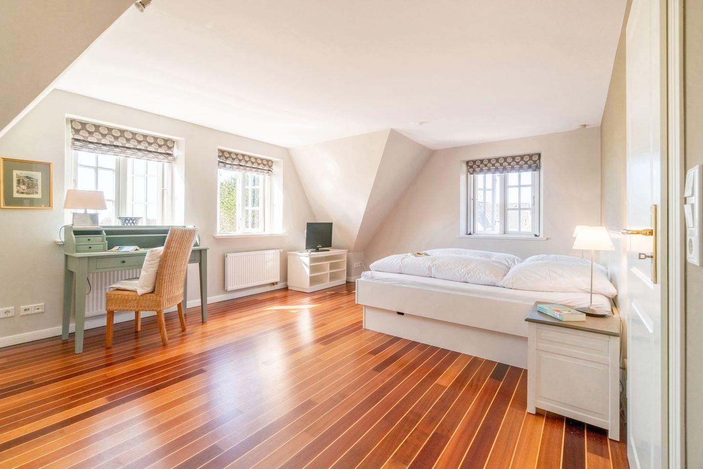 Die reetgedeckte Doppelhaushälfte Meets Hüs verfügt über 3 Schlafzimmer und 2 Bäder und bietet somit komfortabel Platz für bis zu 5 Personen zuzüglich einer Kleinkinderaufbettung.
