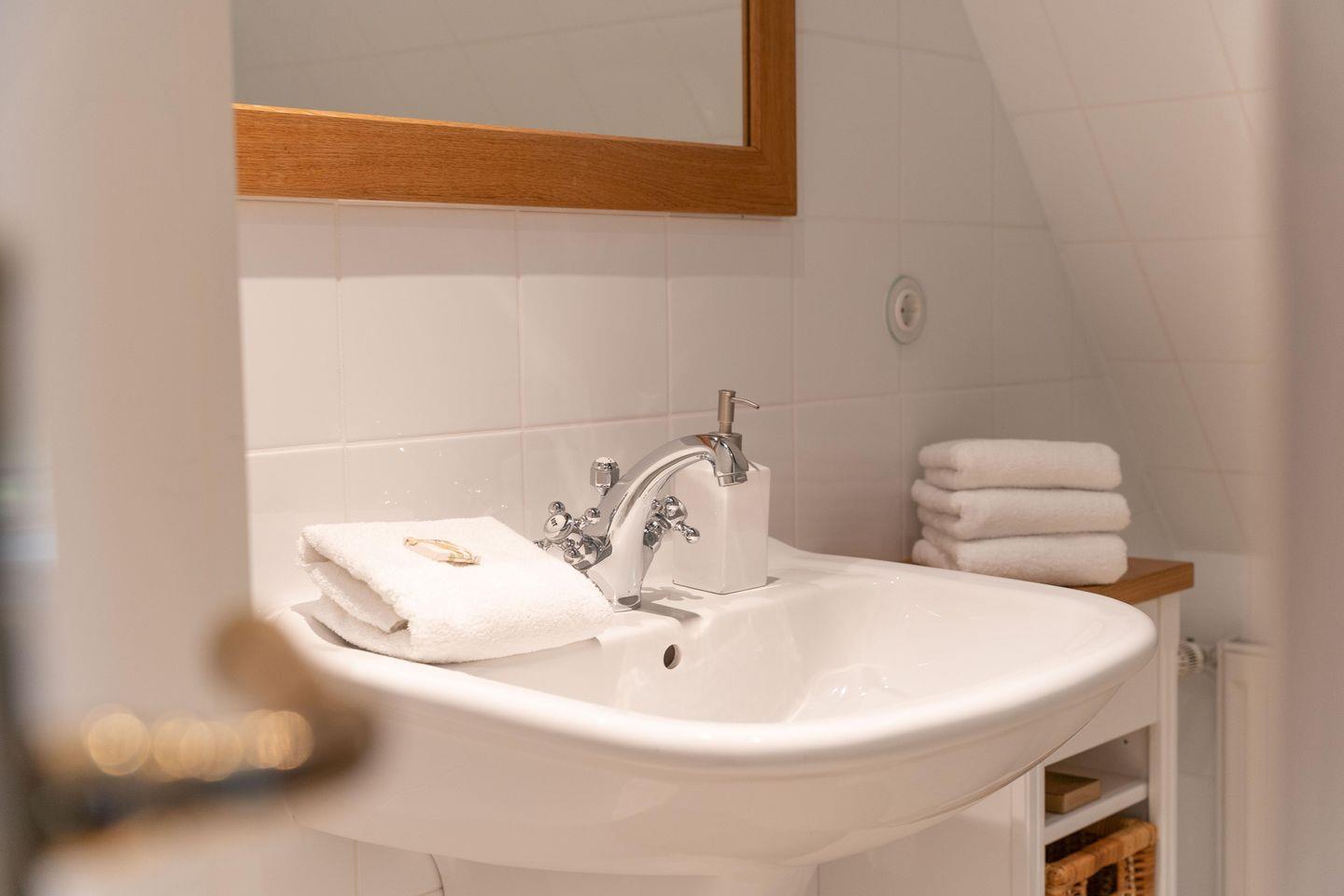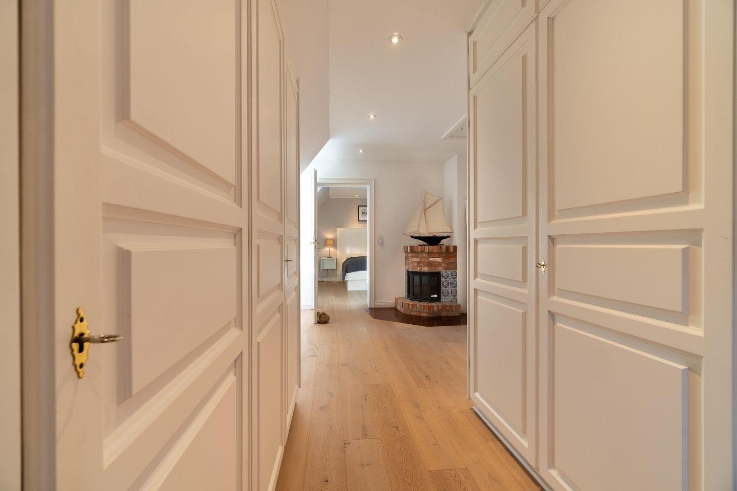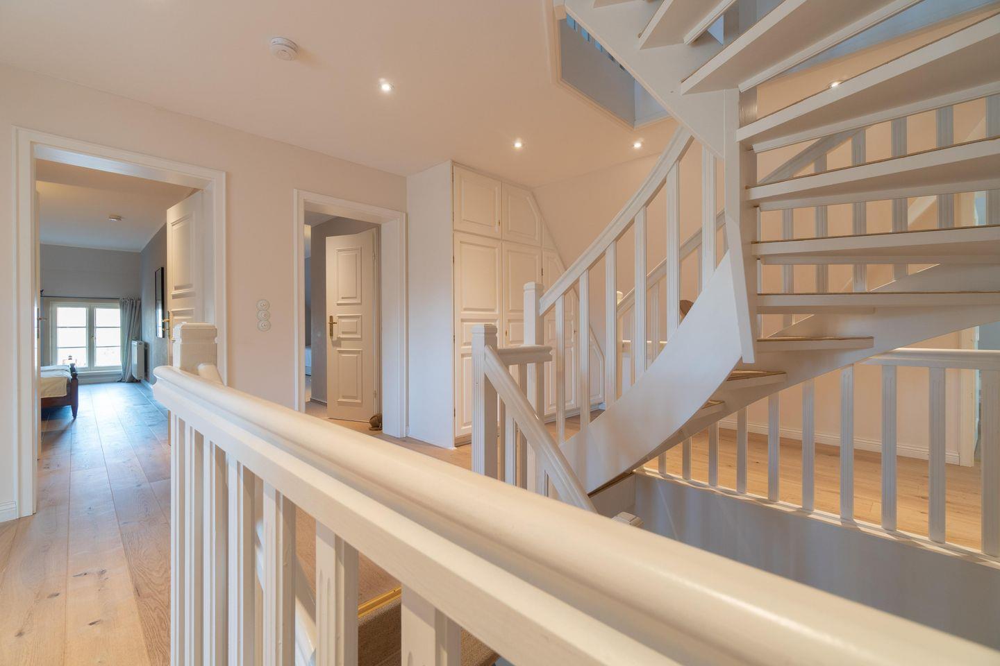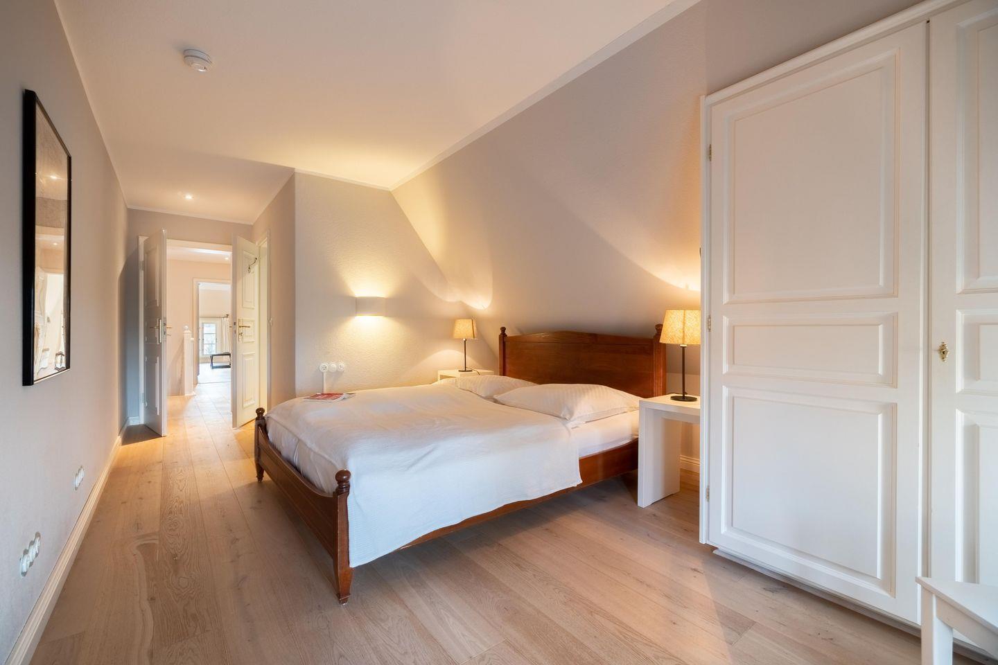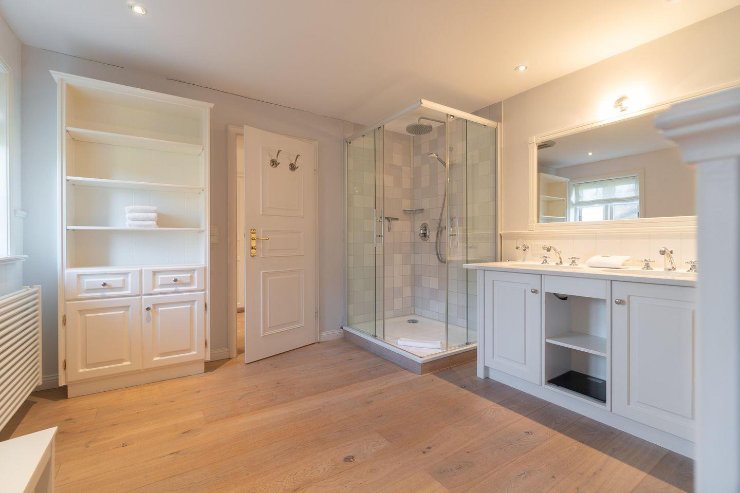 Im Obergeschoss sind die vier weiteren Schlafzimmer - drei mit je einem Doppelbett und eines mit zwei Einzelbetten -, das dritte TV-Zimmer sowie das zweite Vollbad gelegen. Drei der Schlafzimmer verfügen jeweils über ein Duschbad en Suite.