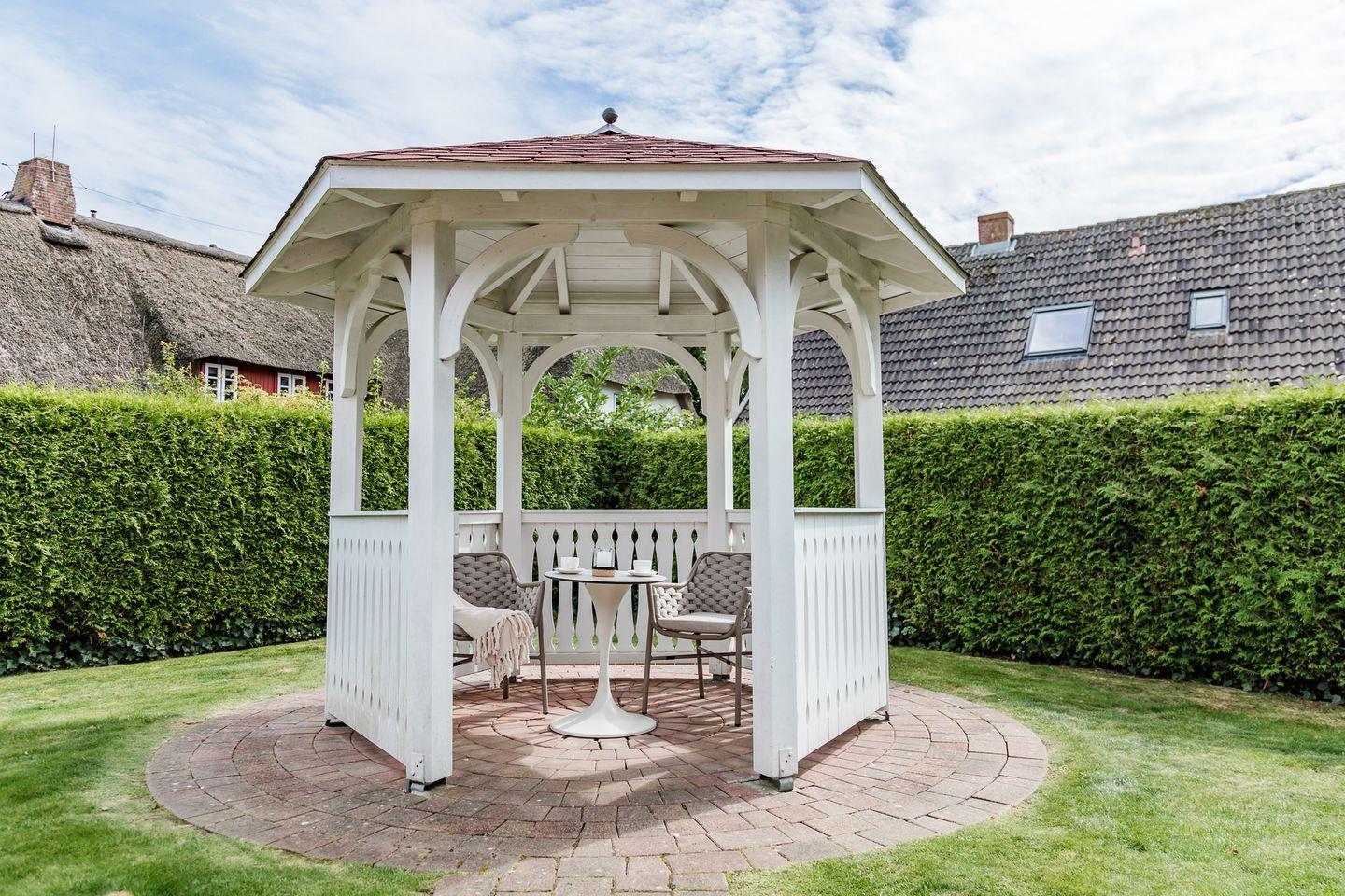 Reetdachhaus mit eigener Sauna und Kaminofen sowie großem Garten mit Terrasse, Strandkorb und Pavillon.