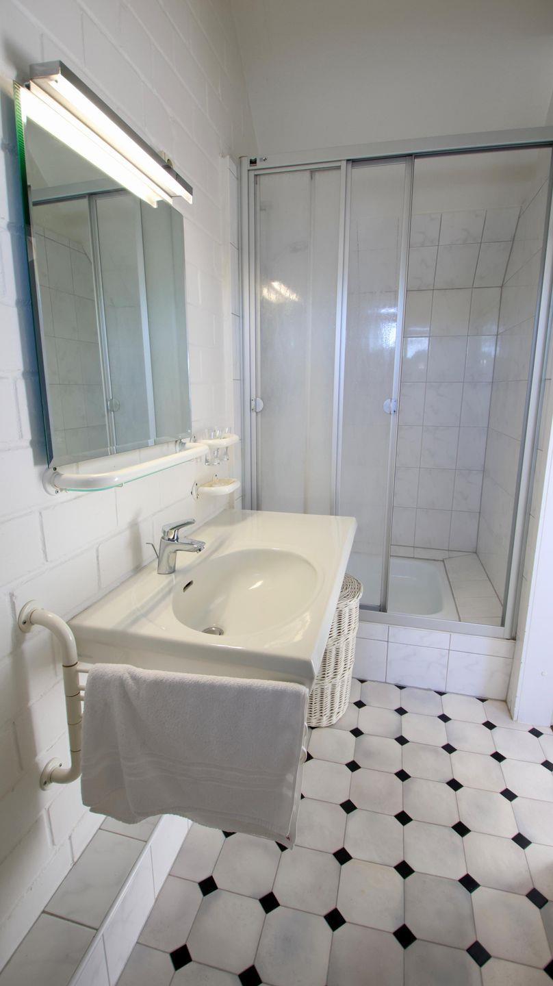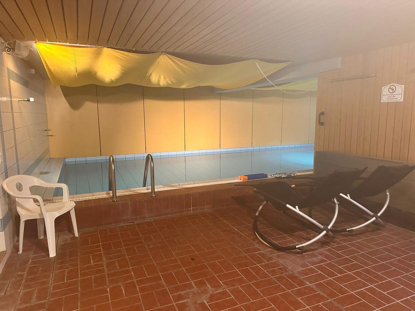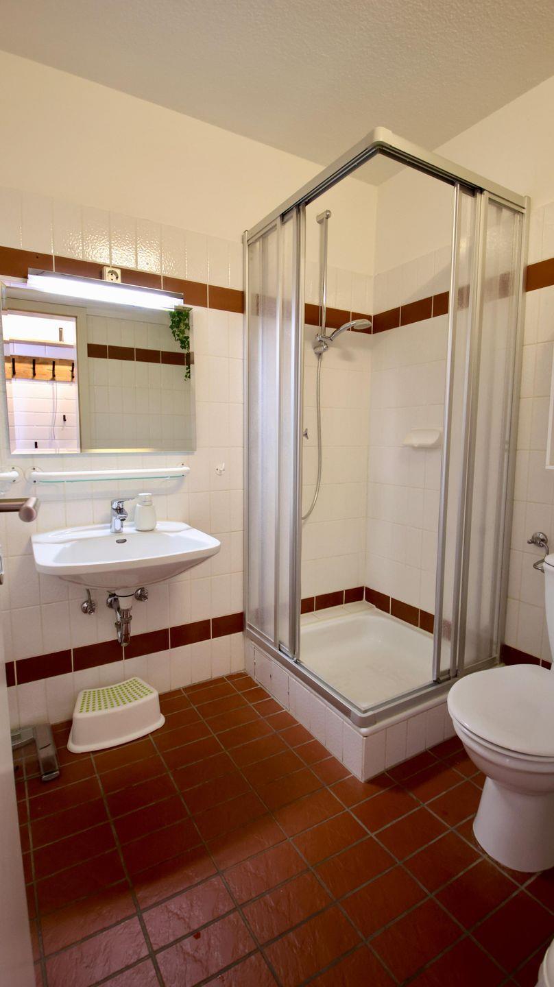 Helle 3-Zimmer-Ferienwohnung im Obergeschoss mit sonnigem Balkon. Die individuelle Wohnung verfügt über einen gemütlichen Wohn- Essbereich mit Zugang zur kleinen, aber gut ausgestatteten Küche. Der Balkon, der mit einer großen Markise versehen ist, erreichen Sie über den Wohn-Essbereich. Auf dieser Ebene befindet sich das Schlafzimmer mit zwei einzelnen Betten. Direkt daneben liegt das erste von zwei Duschbädern. Auf der 2. Ebene gibt es ein zusätzliches Schlafzimmer mit Doppelbett und bad-en-suite. Hervorzuheben ist der ausreichende Stauraum in beiden Schlafzimmern, der durch die Einbauschränke gegeben wird. Im Souterrain des Hauses finden Sie die kleine Sauna sowie das Schwimmbad. Den Sandstrand in Nieblum erreichen Sie in wenigen Gehminuten.