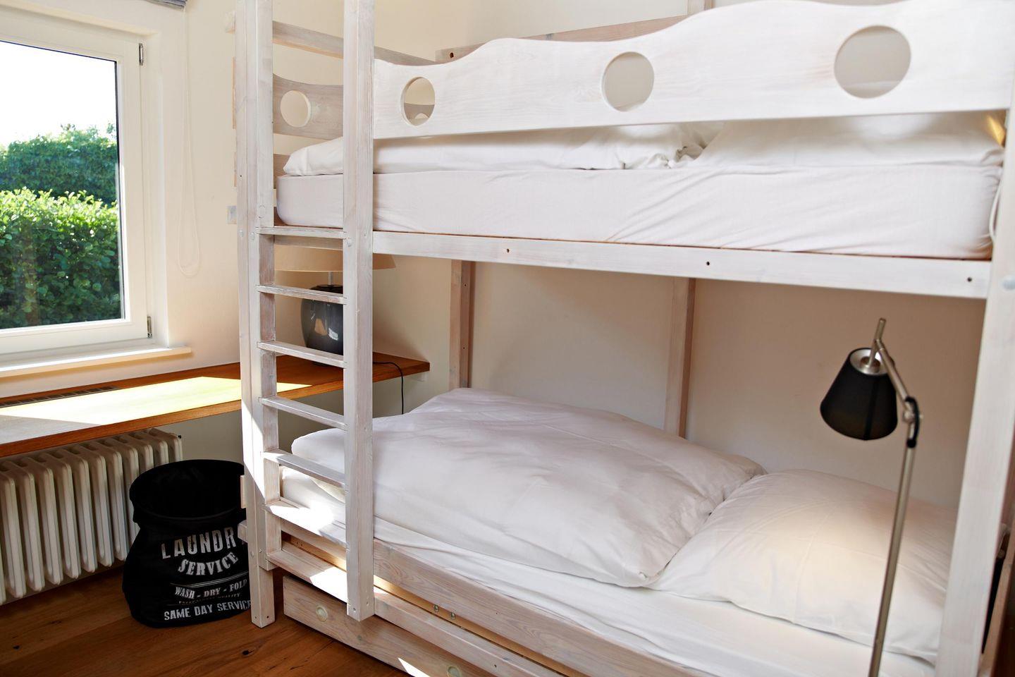 Im Haus befindet sich ein Wohn-/Esszimmer mit integrierter Küche, von dem aus Sie auf die Terrasse gehen können. Im Wohnzimmer stehen zwei gemütliche Sofas, wo Sie in Ruhe fernsehen können. Es gibt drei Schlafzimmer im Erdgeschoss - eins mit Doppelbett, eins mit einem Einzelbett und eins mit Etagenbett. In dem Haus befinden sich zwei Badezimmer, alle enthalten jeweils eine Dusche. Im Außenbereich der Unterkunft finden Sie eine Sauna.