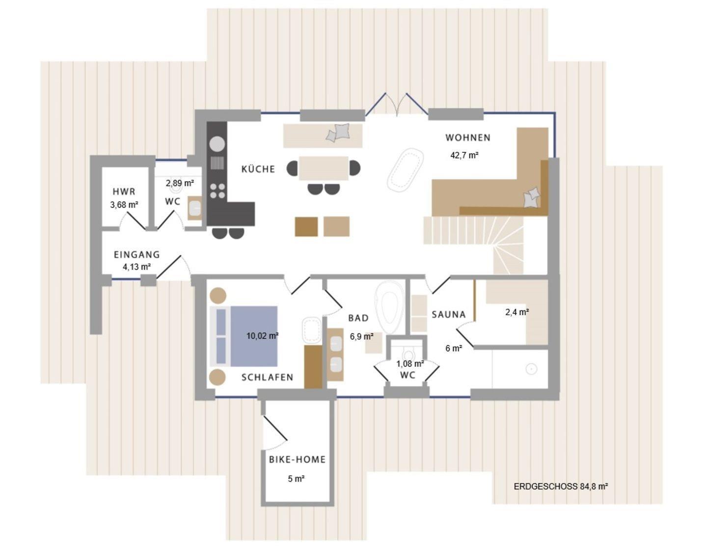 Im angebauten Bike-Home befinden sich die hauseigenen Sonnenliegen, Ihr Elektrogrill und natürlich haben Sie hier die Möglichkeit Fahrräder sicher und trocken unterzustellen.