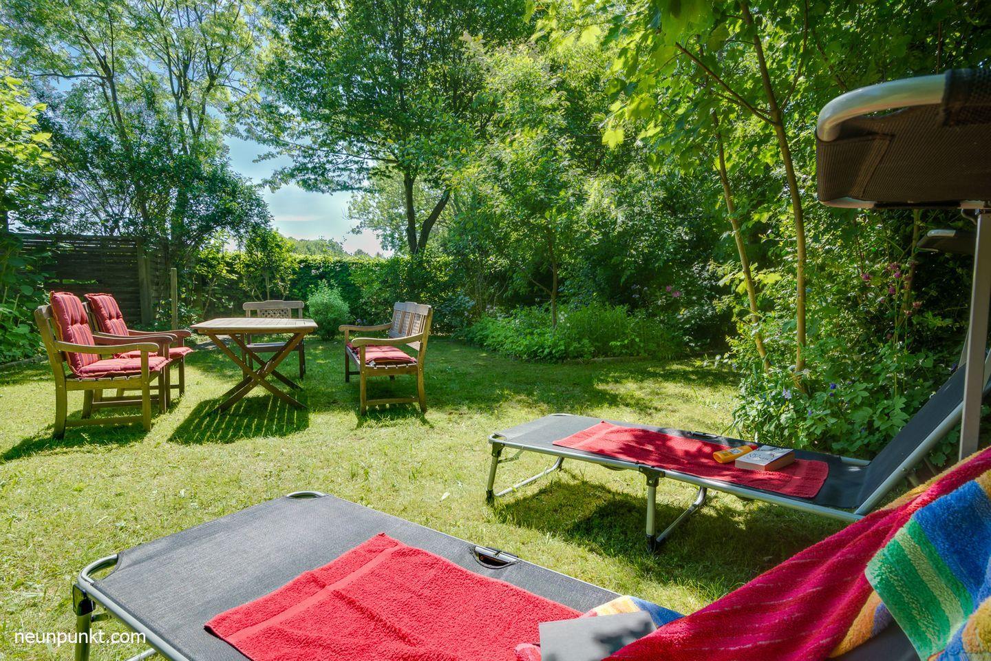 Zum Ferienhaus gehört außerdem ein Garten und eine Terrasse.