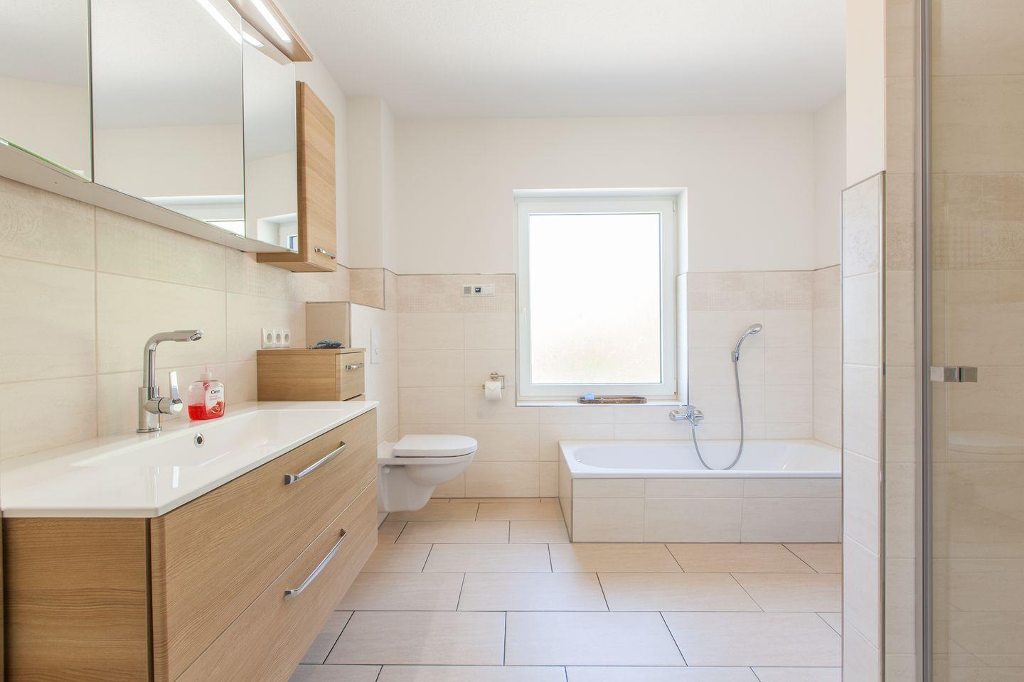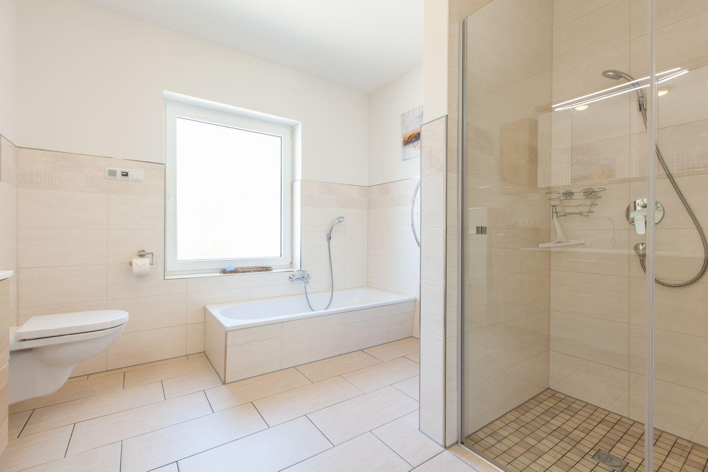 Das Badezimmer bietet neben der ebenerdigen Regendusche und dem Wandradio auch einen Handtuchtrockner und eine abgesenkte Badewanne. Das zweite Badezimmer ist ebenfalls mit einer Regendusche und Wandradio ausgestattet. Ihre Wäsche können Sie bei Bedarf im Hauswirtschaftsraum waschen.