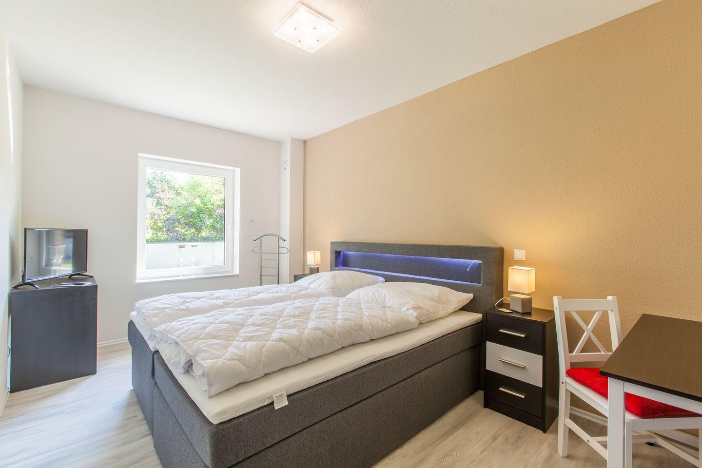 Da jedes Schlafzimmer über Flat-TV, Schreibtisch und LAN-Anschluss verfügt, mangelt es Ihnen an nichts. Das zentrale Ankleidezimmer lässt Koffer und Klamotten gekonnt verschwinden. Jeder Raum kann mit elektrischen Außenrolläden abgedunkelt werden.