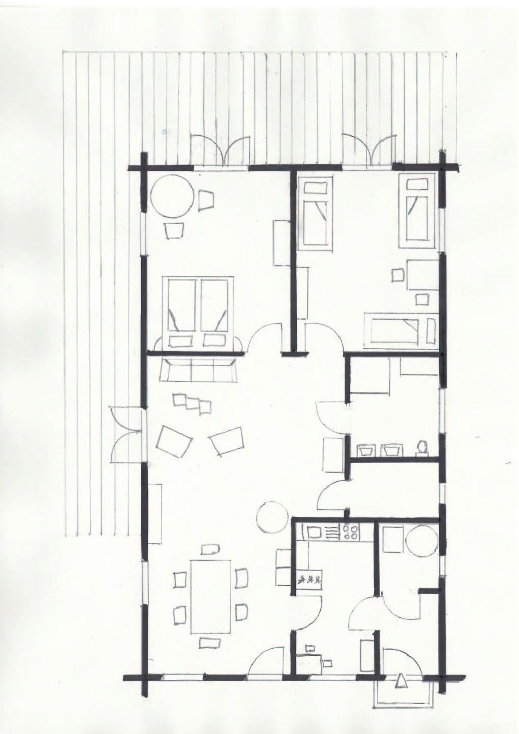Im gemütlichen Wohnzimmer mit Kaminofen lassen sich viele tolle Familienabende verleben. Mit Fernseher und einer bequemen Sofalandschaft finden Sie hier, was Sie brauchen: Die Räume sind sehr hell und auch die Küche lässt mit einer kompletten Ausstattung keine Wünsche offen.