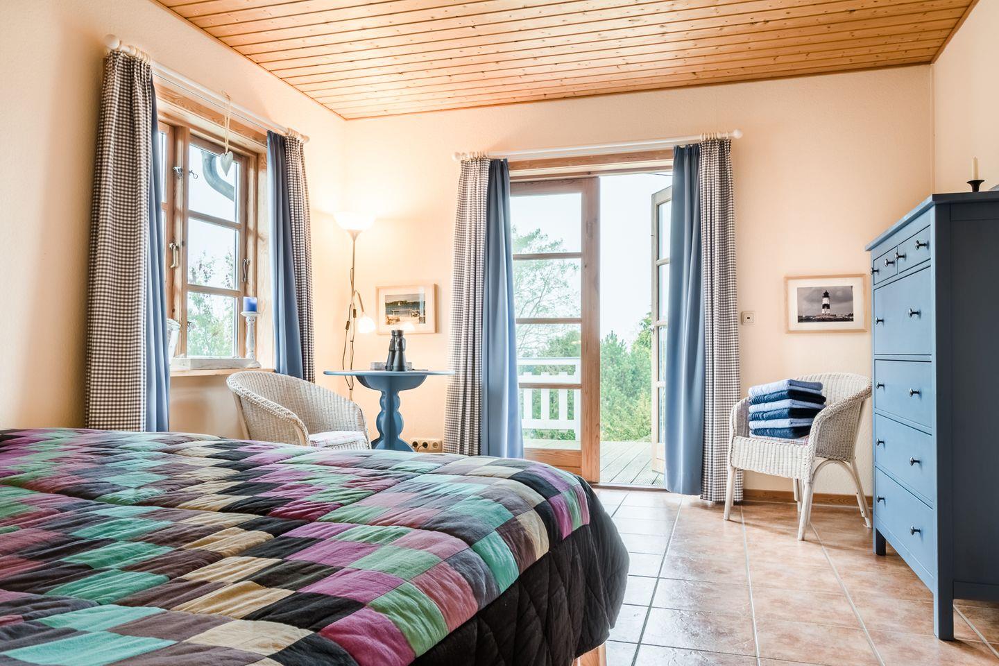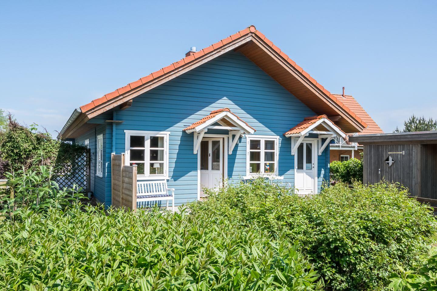 Das schöne blaue Ferienhaus ist schön eingerichtet und bietet neben einem Ofen viel Platz und einen tollen Außenbereich - alles, was man sich für seinen Ostsee-Urlaub wünscht.