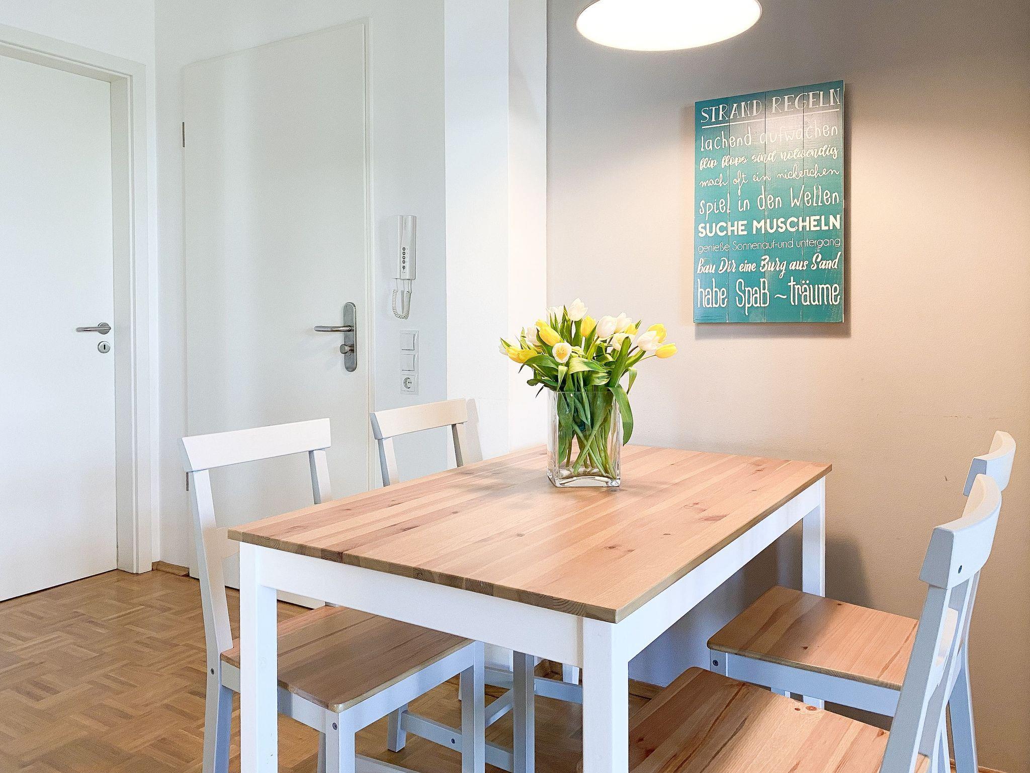 Die geschmackvoll eingerichtete Erdgeschosswohnung mit Strandflair befindet sich in einem Apartmenthaus mit nur 8 Wohneinheiten in Niendorf, einem Ortsteil von Timmendorfer Strand. Innerhalb von 2 Minuten zu Fuß ist der kilometerlange Sandstrand und die schöne Promenade sowie der urige Niendorfer Hafen mit einer Vielzahl von Restaurants und Cafés erreicht. Ein Bäcker und ein Fahrradverleih befinden sich in unmittelbarer Umgebung.