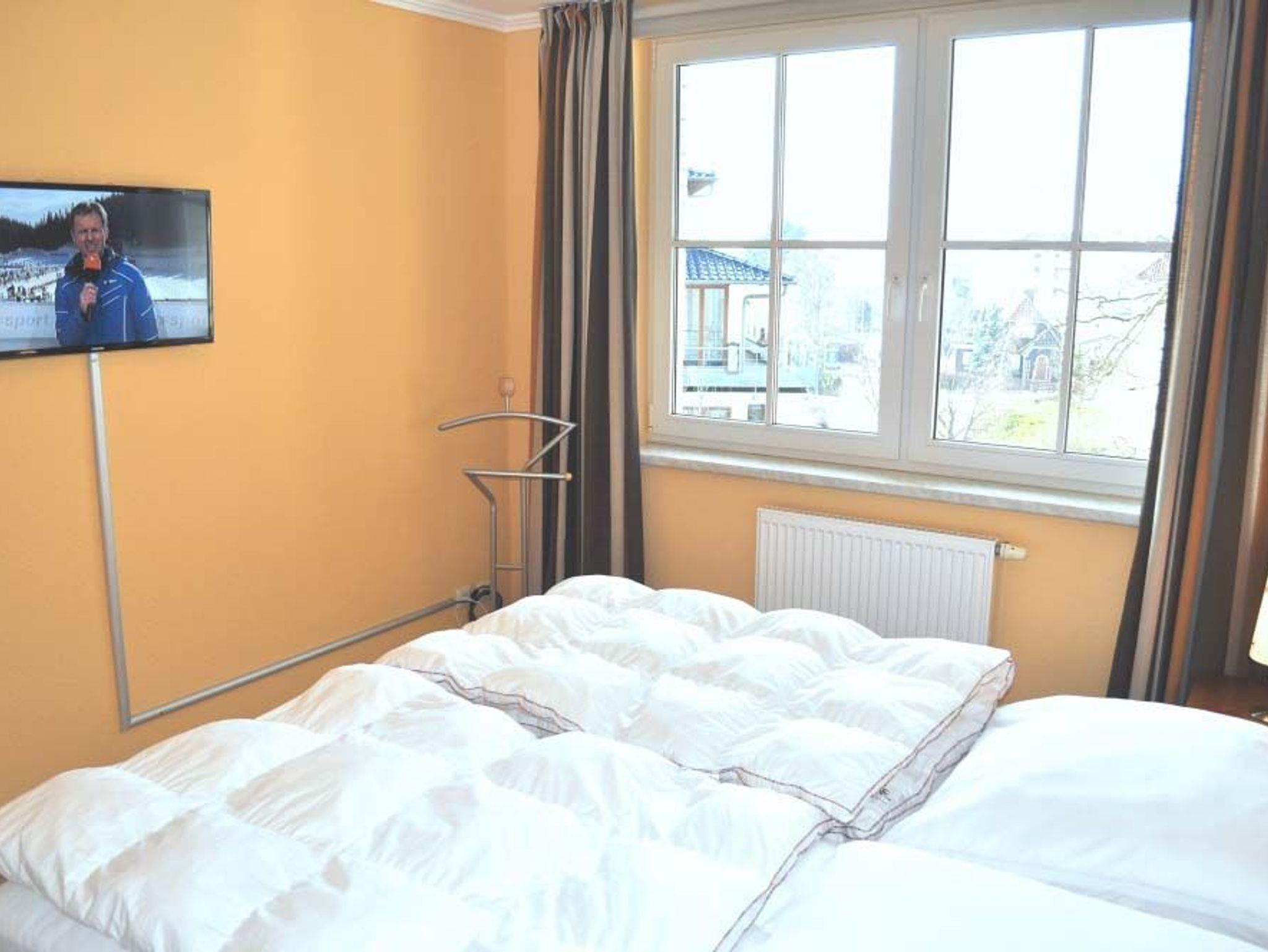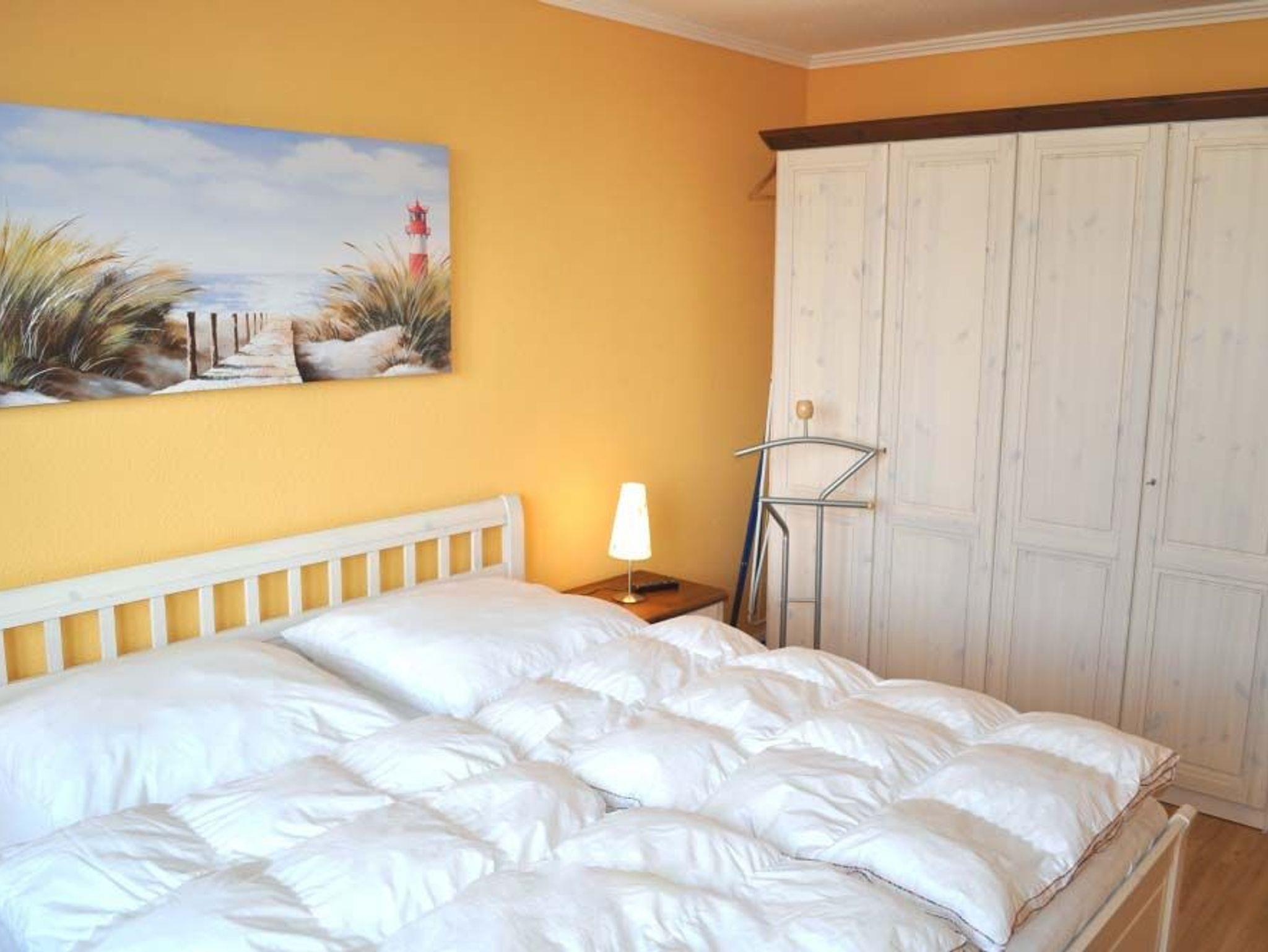 Schlafzimmer 1: 2 Matratzen, 2 Nachttische, 2 stumme Diener, Doppelbett 2,00 x 1,80 m, Flachbildschirm, Kabel-TV, Kleiderschrank, Radiowecker, Spiegel, Wäscheständer