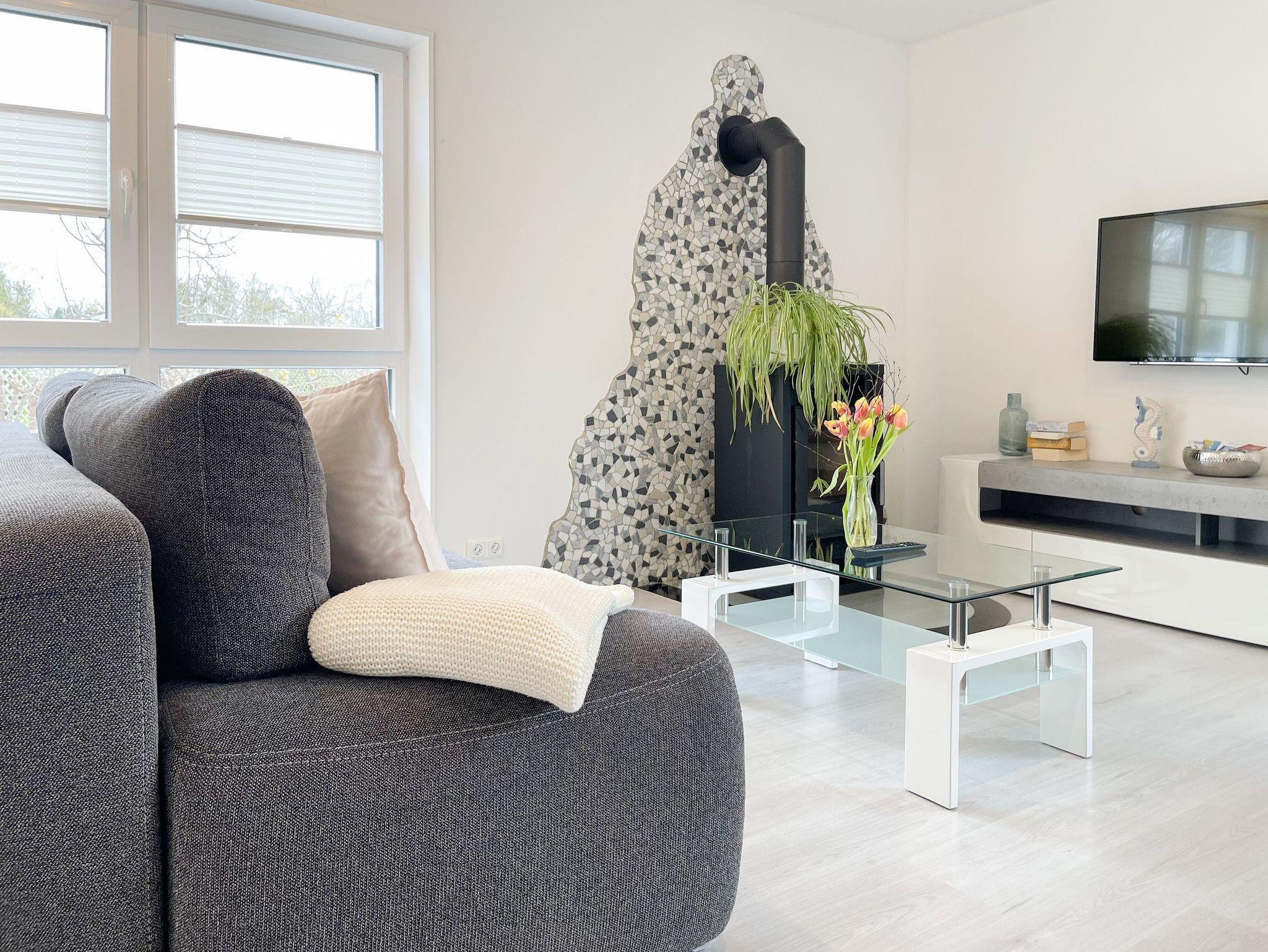 Das familienfreundliche Haus bietet auf ca. 90 m² Platz für bis zu 4 Personen und schafft mit seinem durchdachten Grundriss eine behagliche Wohlfühlatmosphäre. Im großzügigen Wohnbereich sorgen der Kamin, Sat-TV, Radio mit USB und kostenfreies WLAN für gemütliche Stunden. Direkt angrenzend lädt der offene Essbereich mit Platz für vier Personen zum gemeinsamen Schlemmen ein. Die moderne Einbauküche ist bestens ausgestattet mit Spülmaschine, Backofen und Mikrowelle bleiben kaum Wünsche offen.