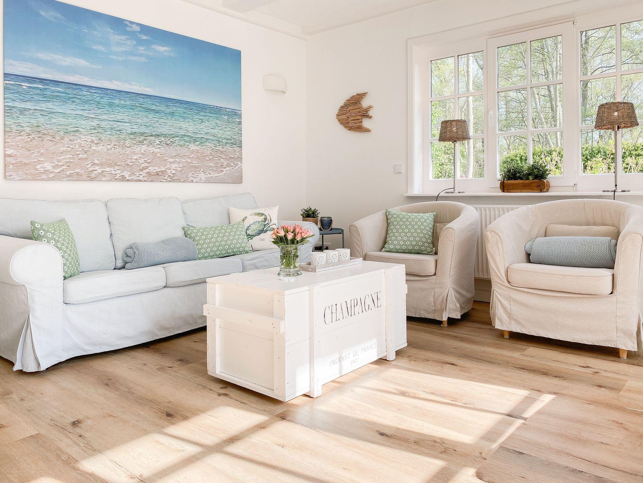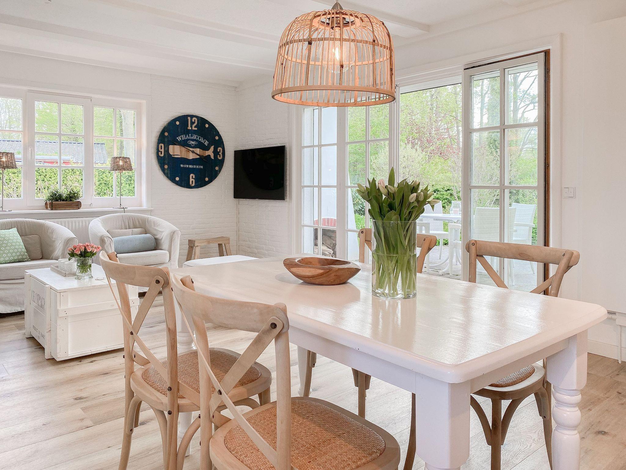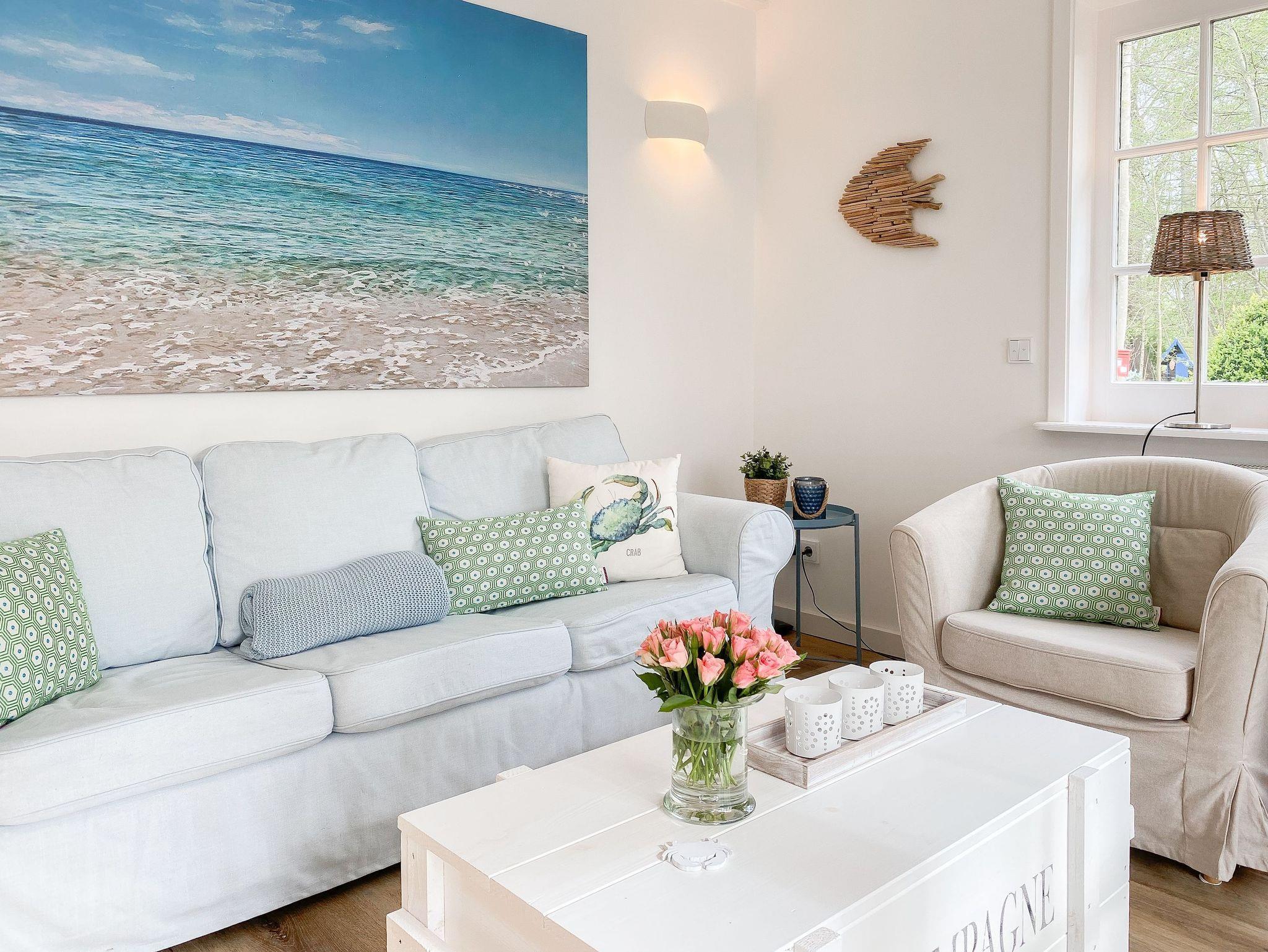 Strandflair pur! Das vollständig renovierte und hochwertig ausgestattete Cottage bietet jeglichen Komfort für 4 Personen, um einen entspannten Urlaub zu verleben! Die stilvolle Einrichtung mit Liebe zum Detail, helle Räumlichkeiten und zeitgemäßes Ambiente wie TV, Bluetooth Lautsprecher, Internetradio und WLAN sorgen für eine Atmosphäre zum Wohlfühlen. Es gibt einen gemütlichen Wohnbereich mit schönem Blick in den eingewachsenen Garten. Die vorgelagerte Sonnenterrasse ist teilweise überdacht und zum Südwesten ausgerichtet. Ein Außenkamin für gemütliche Urlaubsabende, Markise, Sonnenliegen und Gartenmöbel stehen zur Verfügung. Der Essbereich bietet ausreichend Platz für 4 Personen und die offene, hochwertige Einbauküche ist bestens ausgestattet. Es stehen zwei separate Schlafzimmer mit Boxspringbetten (180x200 und 160x200)[nbsp] sowie zwei Duschbäder zur Verfügung. Sämtliche Fenster sind mit elektrischen Außenjalousien versehen. Eine Waschmaschine ist im Bad untergebracht.