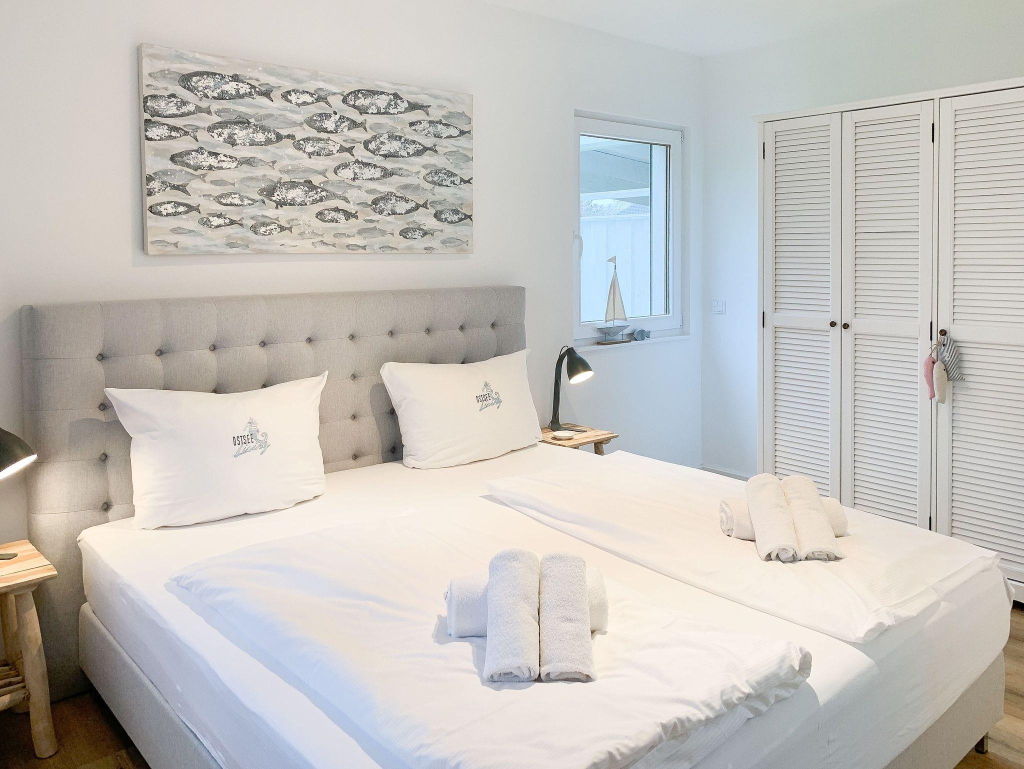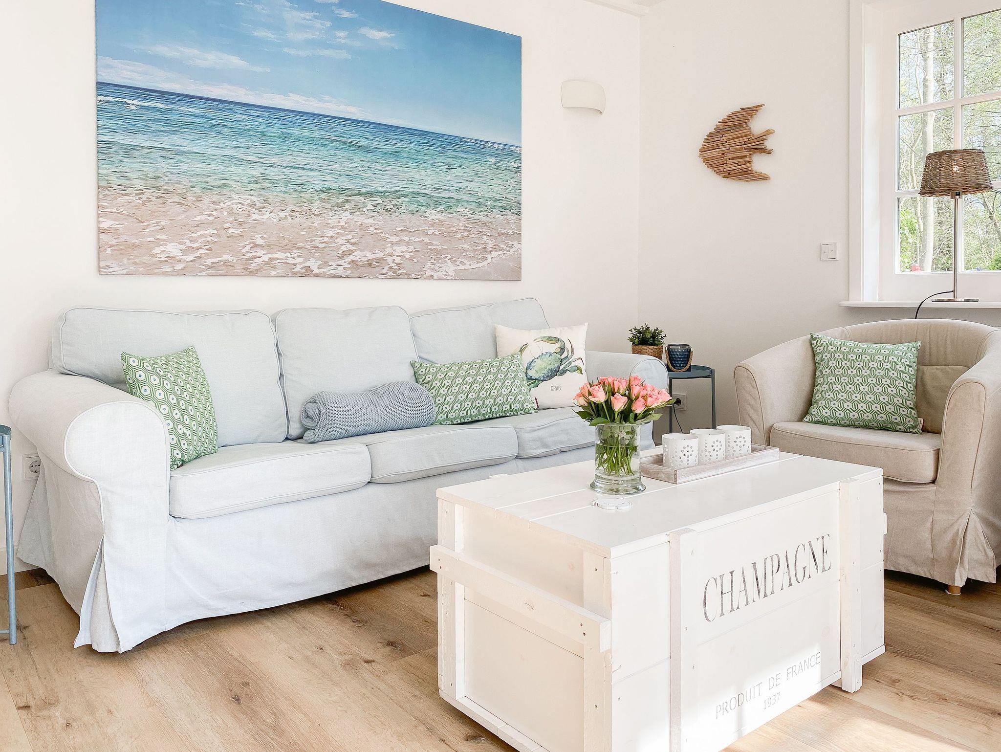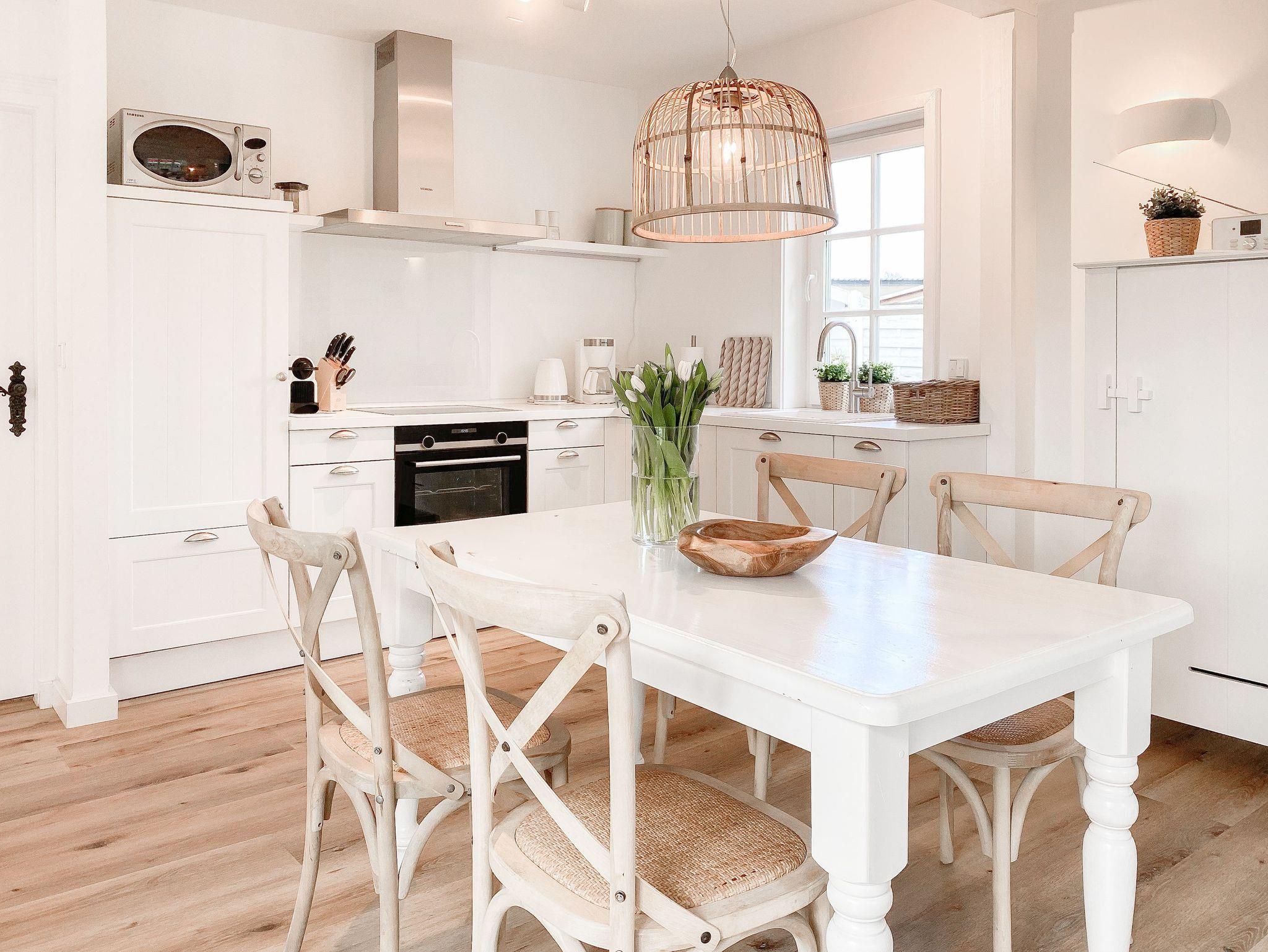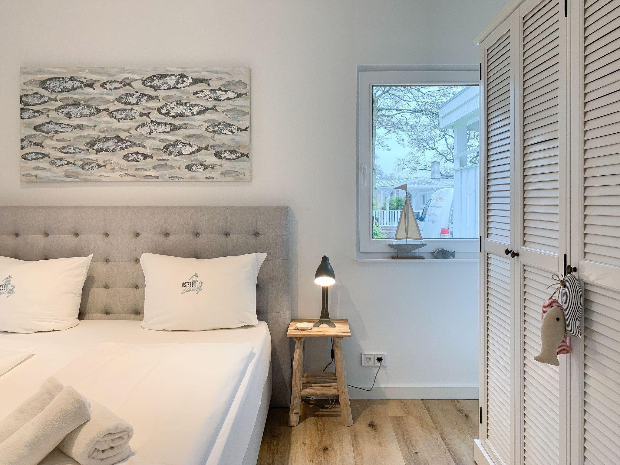 Strandflair pur! Das vollständig renovierte und hochwertig ausgestattete Cottage bietet jeglichen Komfort für 4 Personen, um einen entspannten Urlaub zu verleben! Die stilvolle Einrichtung mit Liebe zum Detail, helle Räumlichkeiten und zeitgemäßes Ambiente wie TV, Bluetooth Lautsprecher, Internetradio und WLAN sorgen für eine Atmosphäre zum Wohlfühlen. Es gibt einen gemütlichen Wohnbereich mit schönem Blick in den eingewachsenen Garten. Die vorgelagerte Sonnenterrasse ist teilweise überdacht und zum Südwesten ausgerichtet. Ein Außenkamin für gemütliche Urlaubsabende, Markise, Sonnenliegen und Gartenmöbel stehen zur Verfügung. Der Essbereich bietet ausreichend Platz für 4 Personen und die offene, hochwertige Einbauküche ist bestens ausgestattet. Es stehen zwei separate Schlafzimmer mit Boxspringbetten (180x200 und 160x200)[nbsp] sowie zwei Duschbäder zur Verfügung. Sämtliche Fenster sind mit elektrischen Außenjalousien versehen. Eine Waschmaschine ist im Bad untergebracht.
