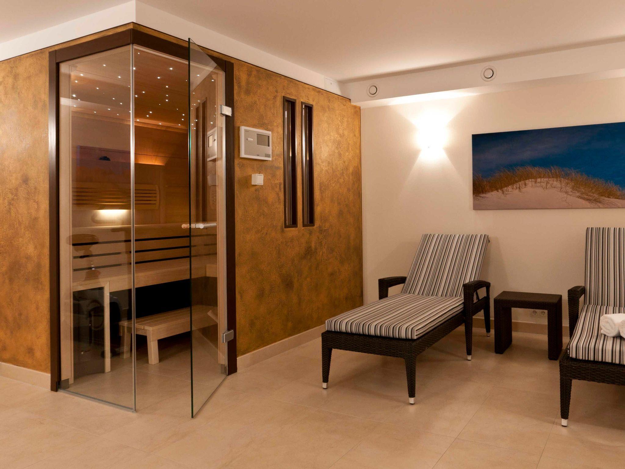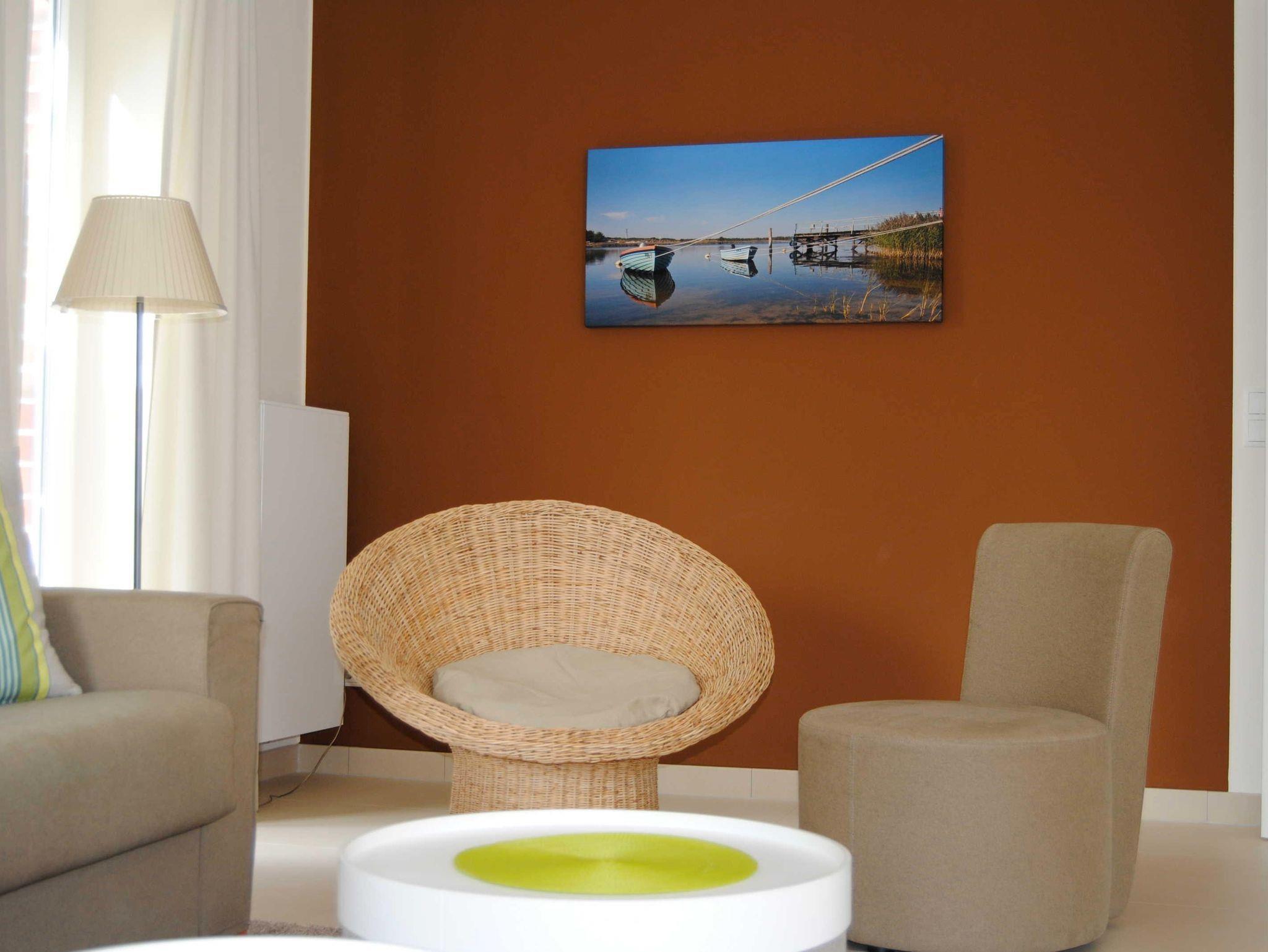 In unserem Herzstück der 144 qm großen Wohnung Captain´s Home können Sie gemütlich vor dem Holzkamin verweilen mit Freunden oder Ihrer Familie mit bis zu 6 Personen. Im Wellnessbereich finden Sie unsere Klafssauna mit Regendusche und Fitnessgeräten wie einem Crosstrainer und Ergometer. Ladestationen für Ihr Elektrofahrzeug im Carport sind vorhanden.