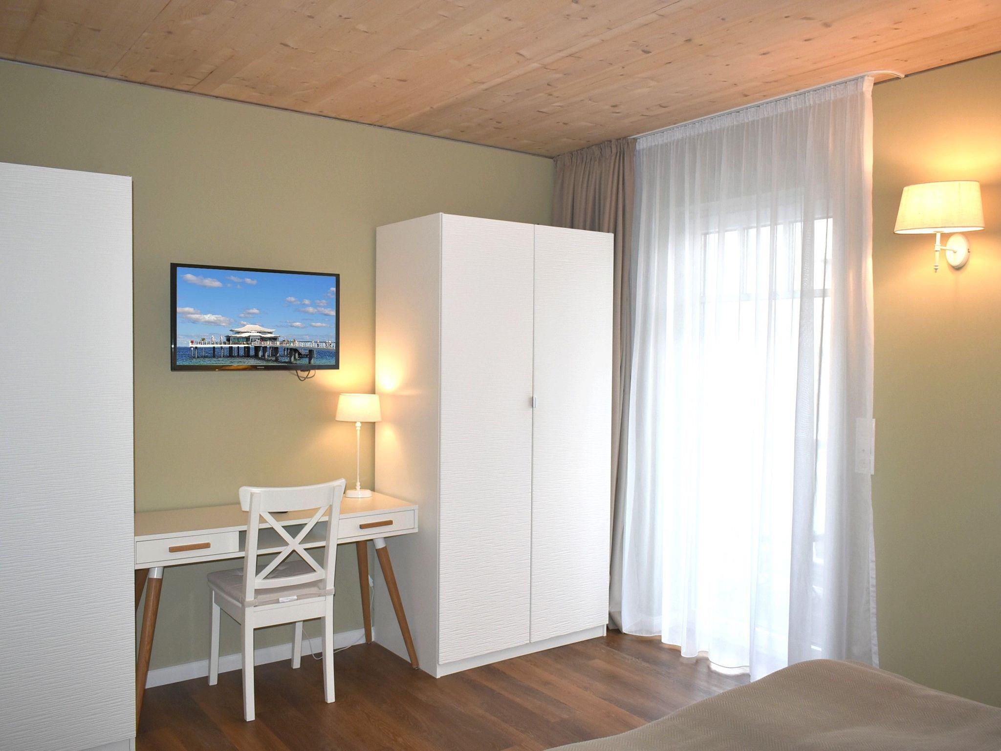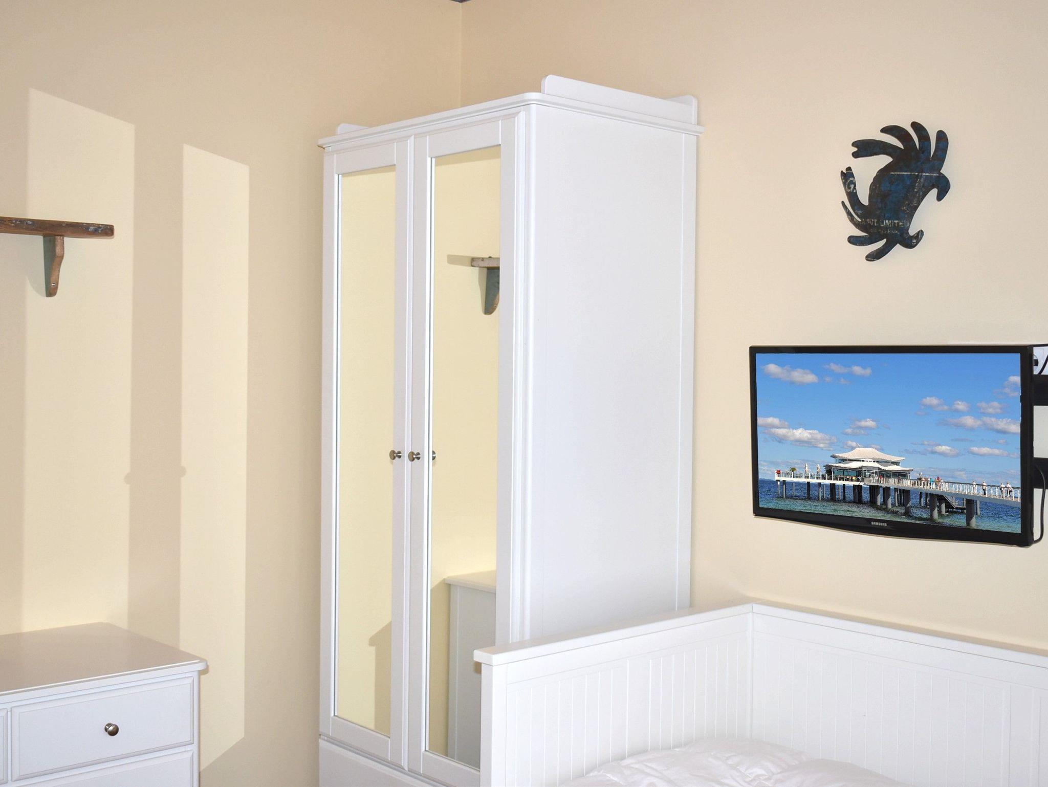 Schlafzimmer 2: 2 Einzelbetten 2,00 x 0,80 m, 2 Hocker, Flachbildschirm, Kleiderschrank, Kommode, Sat-TV, Spiegel, Tisch