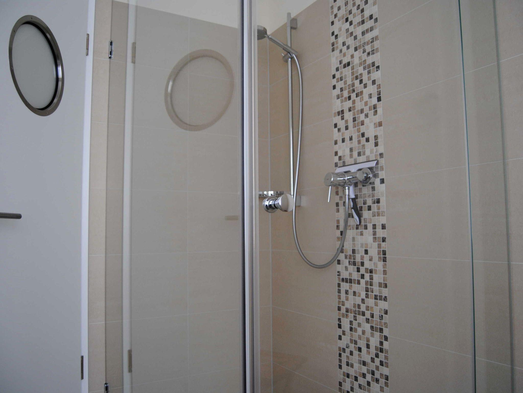 Deck 1 befindet sich im Erdgeschoss des Ferienhauses Ostsee Lodges mit Aufzug, Sauna und Fitnessbereich. Genießen Sie Ihren Urlaub in der 75 qm großen, hellen Wohnung mit bodentiefen Fenstern, Südost Terrasse und elektrischer Sonnenmarkise. Sie gelangen von der komfortablen halboffenen Küche in den großzügigen Wohn-Essbereich, einfach zum Wohlfühlen. Bei der Einrichtung der Wohnung und Errichtung des Hauses wurde auf hochwertige Materialien Wert gelegt. In den 2 separaten Schlafzimmern mit Doppelbetten (180x200 und 140x200) und TV erwartet Sie hoher Schlafkomfort. Die Wohnung ist ausgestattet mit Loewe-TV´s, Musikanlage und kostenlosem Internetzugang über WLAN. Das hochwertige Bad mit viel Tageslicht ist mit einer Glaskomfortdusche, Fußbodenheizung und Handtuchwärmer ausgestattet. In der Wohnung befindet sich ein kleiner Hauswirtschaftsraum mit einem Waschtrockner.