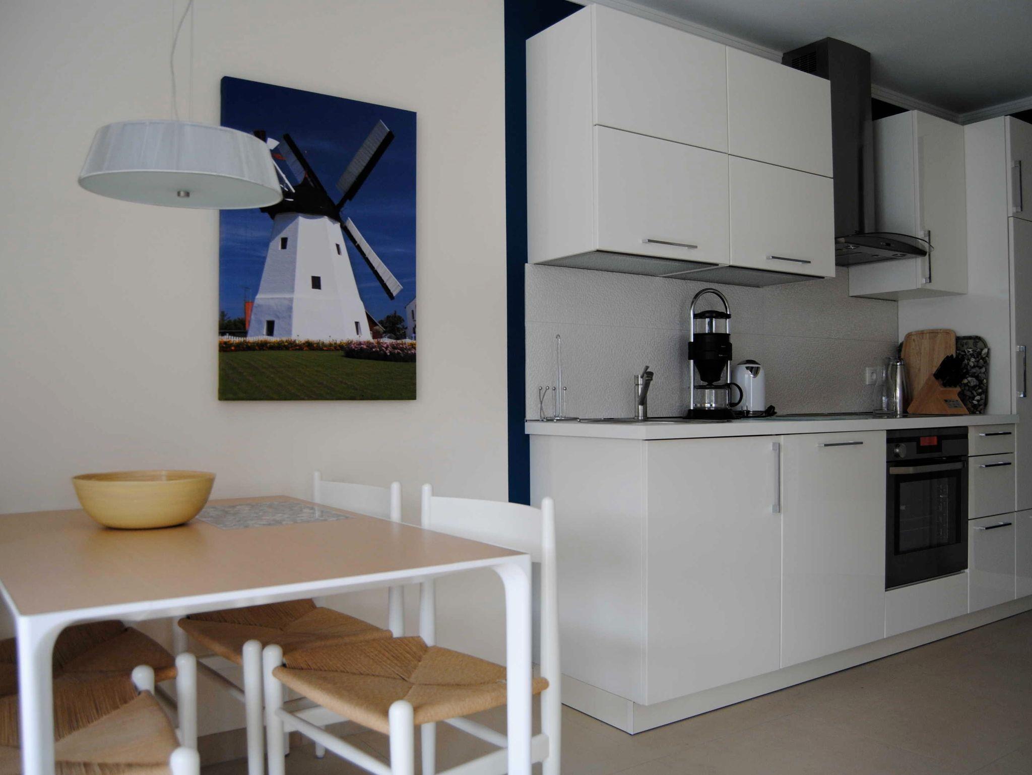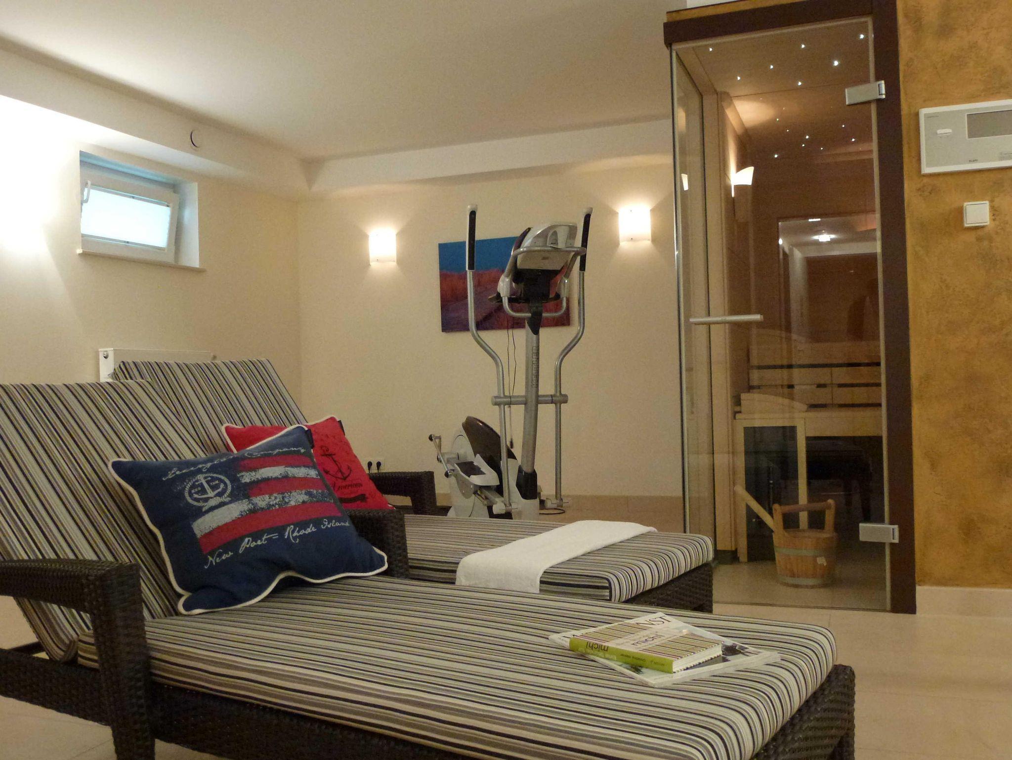 In unserem Herzstück der 144 qm großen Wohnung Captain´s Home können Sie gemütlich vor dem Holzkamin verweilen mit Freunden oder Ihrer Familie mit bis zu 6 Personen. Im Wellnessbereich finden Sie unsere Klafssauna mit Regendusche und Fitnessgeräten wie einem Crosstrainer und Ergometer. Ladestationen für Ihr Elektrofahrzeug im Carport sind vorhanden.