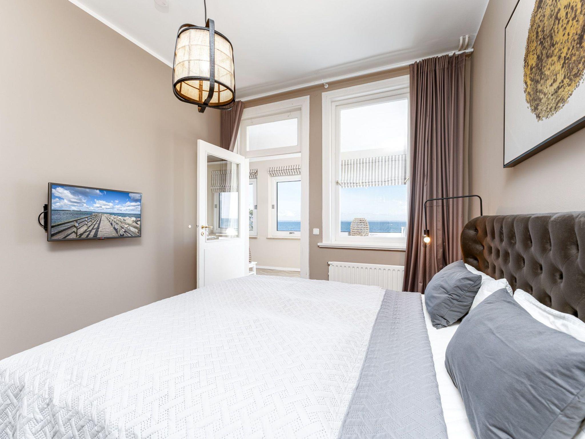 In der 1. Etage des Hauses liegt die 60m² große und für bis zu 4 Personen ausgelegte Niendorf Ferienwohnung Jackie O mit wunderschönem Meerblick.