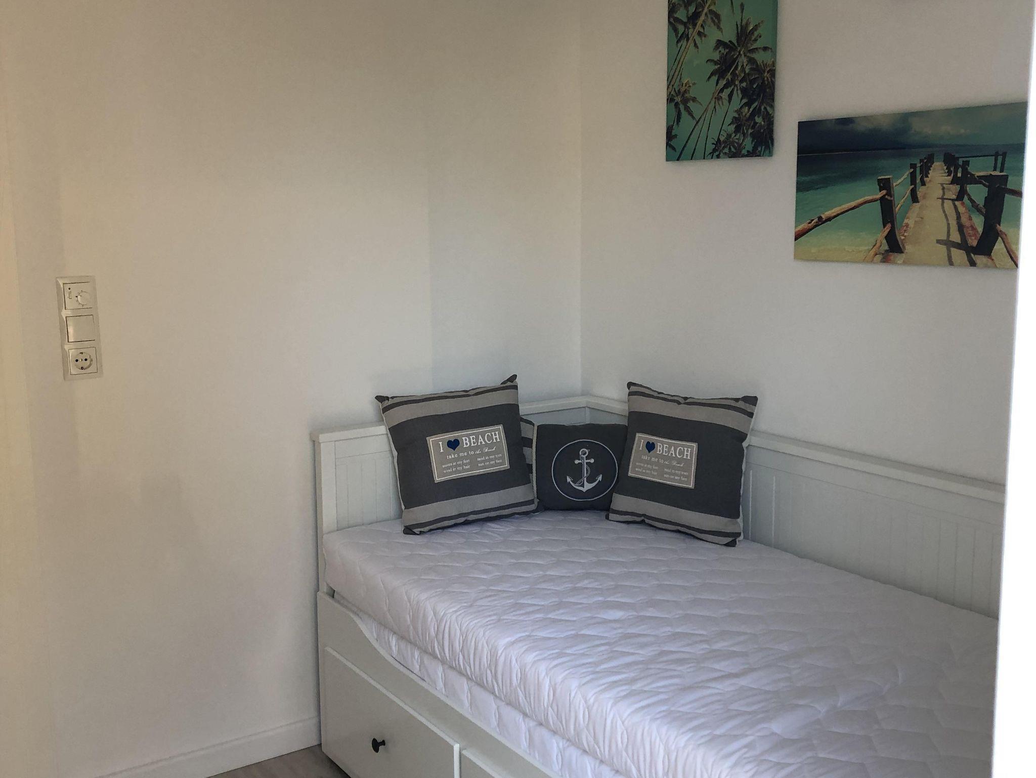 Im Schlafzimmern gibt es ein 180x200cm grosses Doppelbett und ein Kleiderschrank. Im Kinderzimmern gibt es ein Tagesbett welches ausziehbar ist (Gesamtliegefläche 140x200 cm) sowie einen großen Kleiderschrank.