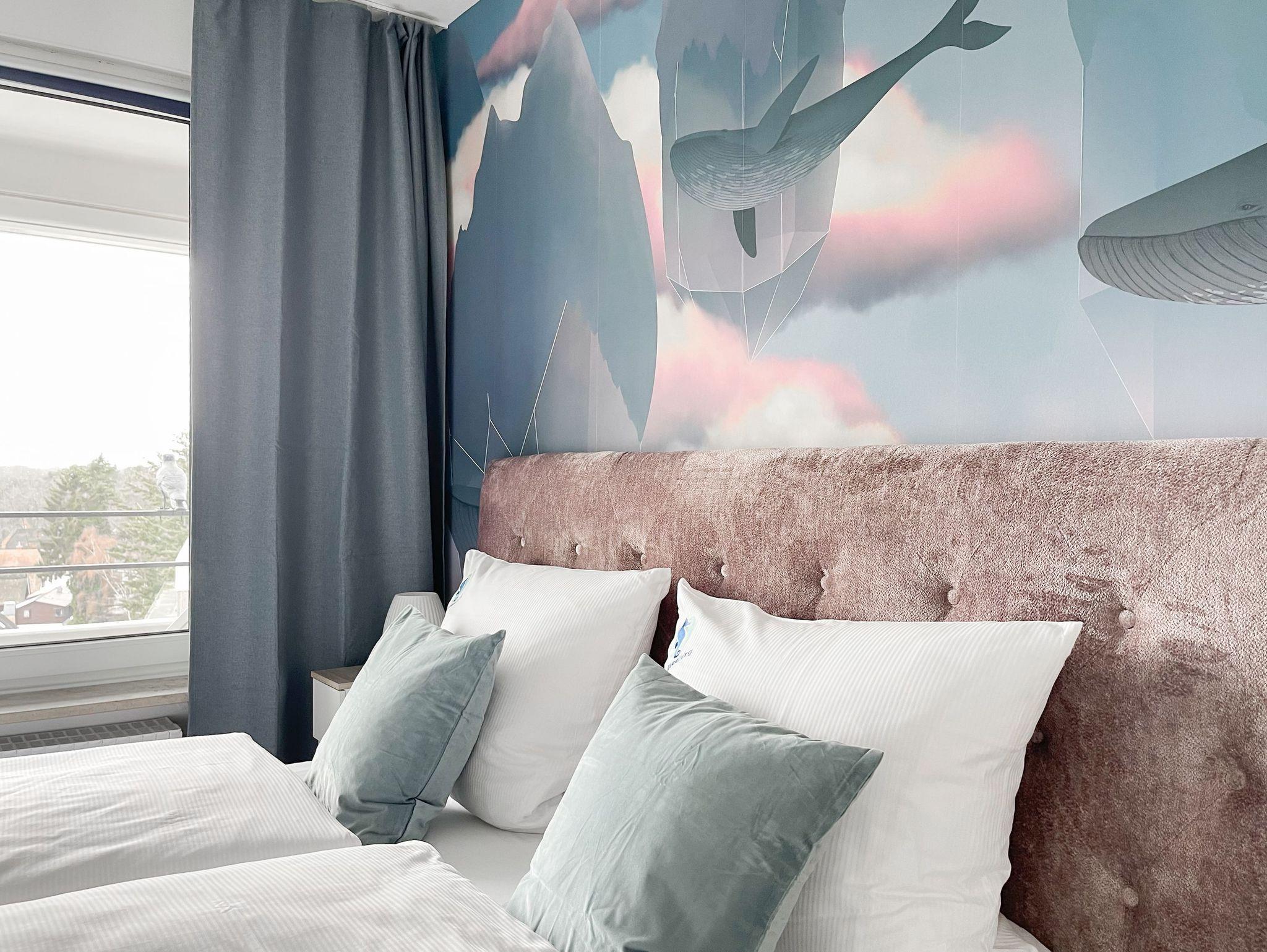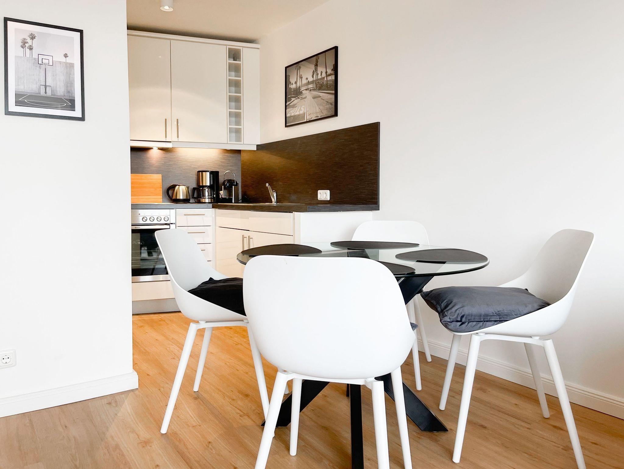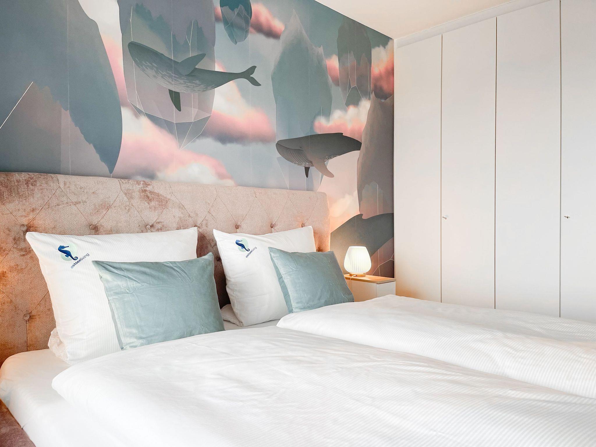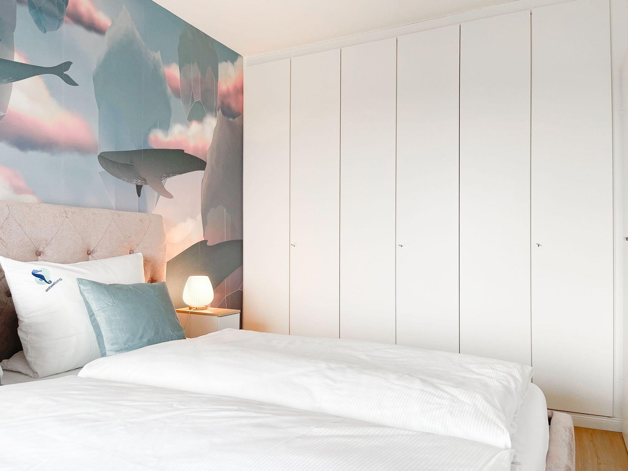 Die aufwendig renovierte und mit viel Liebe zum Detail eingerichtete Ferienwohnung befindet sich in der Endetage im Carpe Diem, einer gepflegten Wohnanlage. Es erwartet Sie ein lichtdurchfluteter Wohnbereich mit schönem Panoramablick, eingerichtet mit einem hochwertigen Schlafsofa, TV, Radio und WLAN sowie einem gemütlichen[nbsp] [nbsp]Essbereich. Die offene, neue Einbauküche ist gut ausgestattet und verfügt über einen Backofen, Cerankochfeld und einen Kühlschrank mit Gefrierfach. Der Balkon in Südwestausrichtung ist mit Gartenmöbeln und einer Markise ausgestattet und bietet einen herrlichen Ausblick, teilweise kann man die Ostsee durch die Bäume blitzen sehen.[nbsp] Meeresrauschen und die frische Seeluft sind garantiert. Das separate Schlafzimmer ist mit einem Doppelbett (180x200)und einem Kleiderschrank mit reichlich Stauraum für die Urlaubsgarderobe ausgestattet. Die Fenster sind mit Jalousien und Vorhängen zur Abdunkelung versehen. Zur Wohnung gehört ein Tiefgaragenstellplatz[nbsp] (Einfahrthöhe 1,95m). Der Fahrstuhl geht bis in die 6. Etage, von dort ist die Endetage über Treppen zu erreichen.