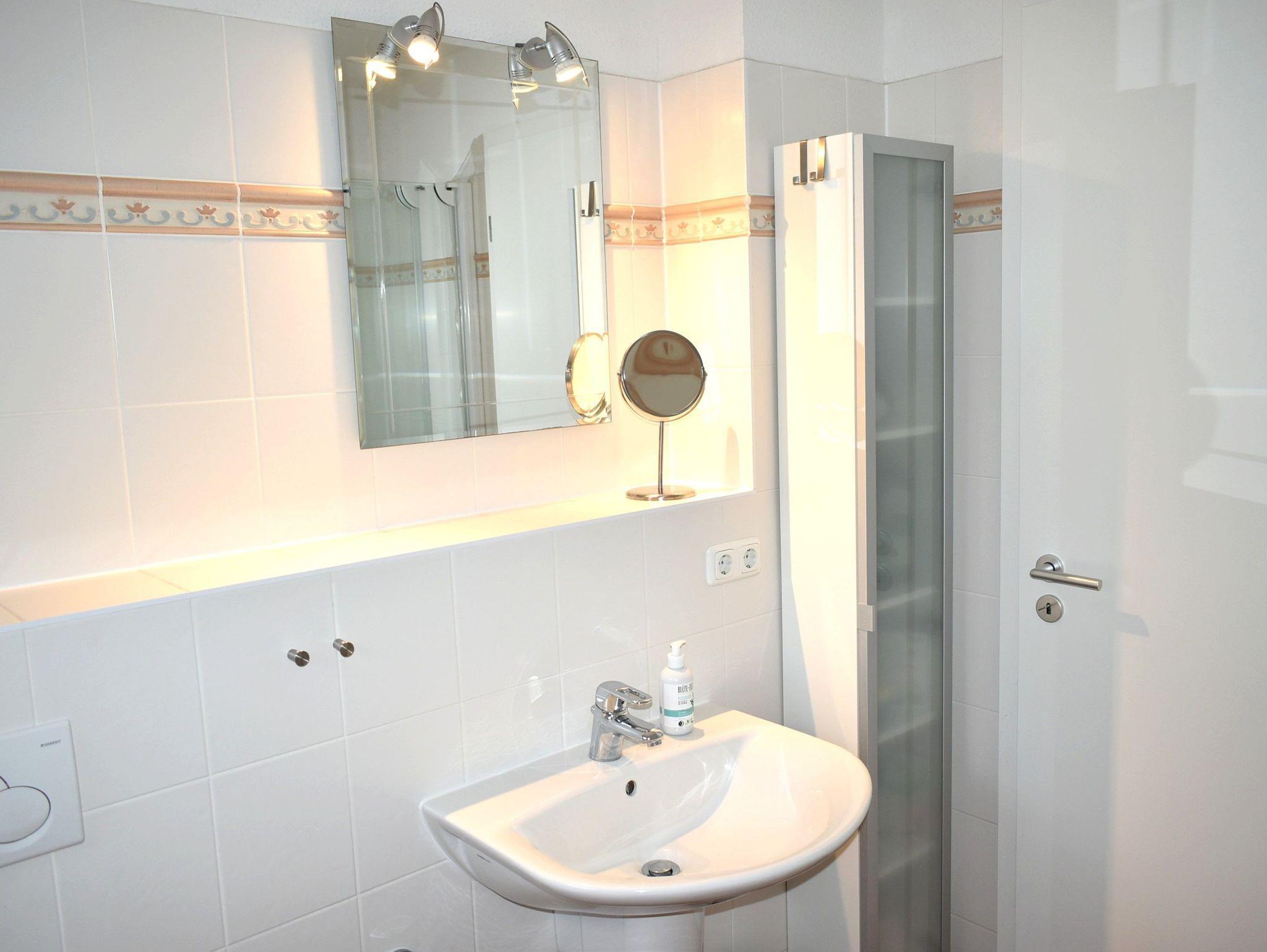 Bad 1: Badewanne, Duschwand, Kosmetikspiegel, Spiegel, Waschbecken, WC, Schrank, Waschmaschine