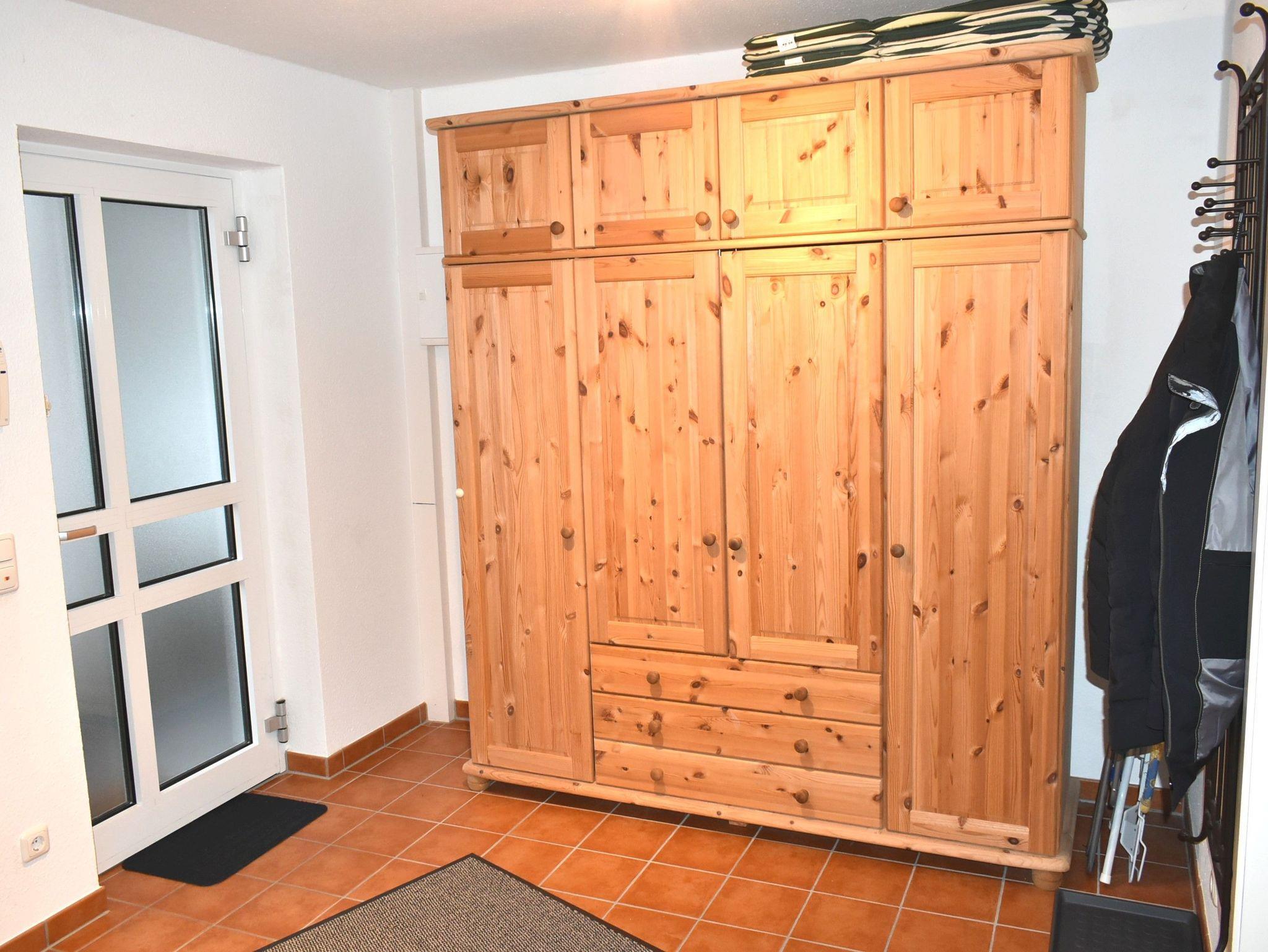 Flur: Spiegel, Garderobe, Schrank, Bügelbrett, Bügeleisen, Staubsauger, Wäscheständer