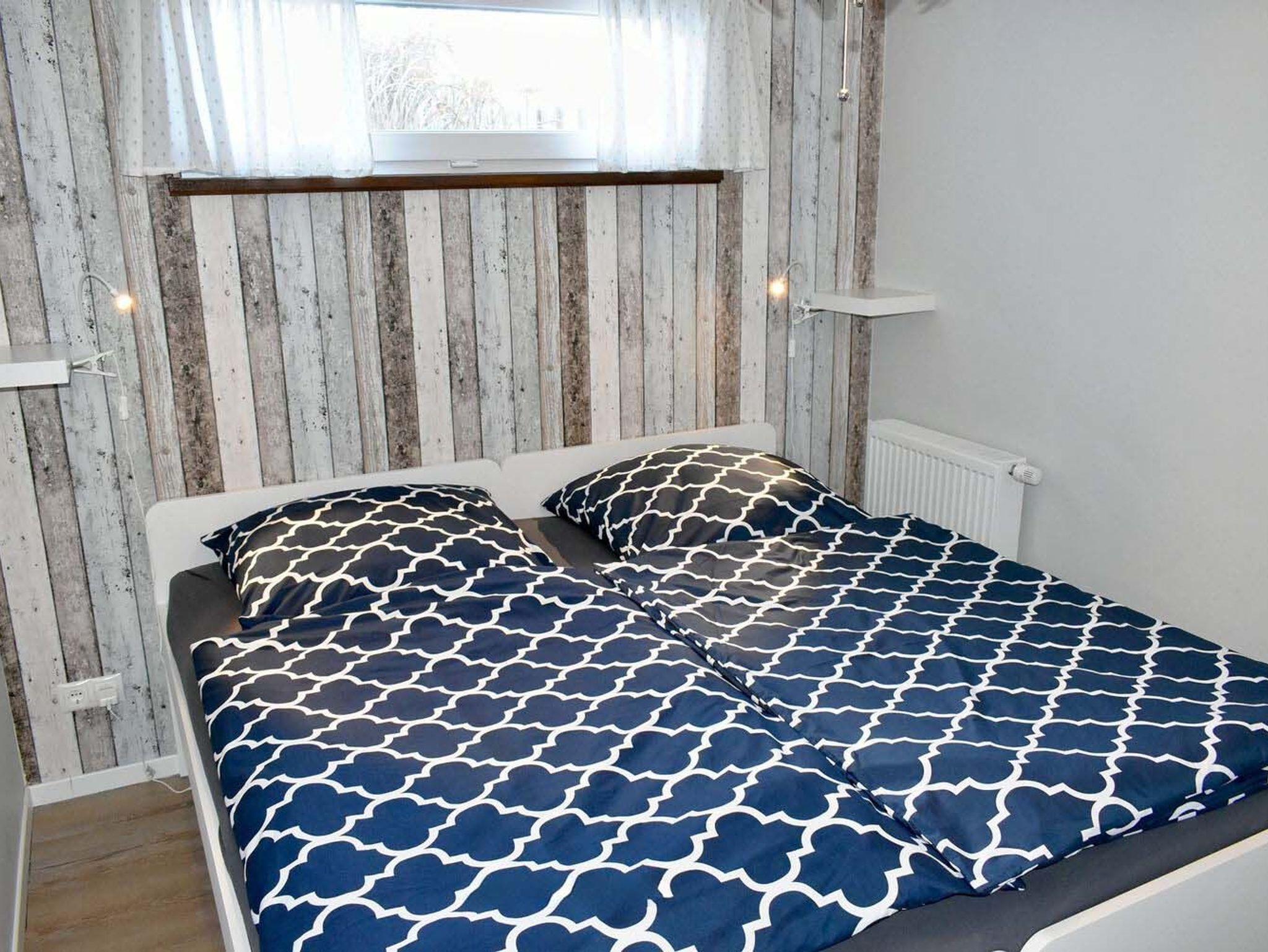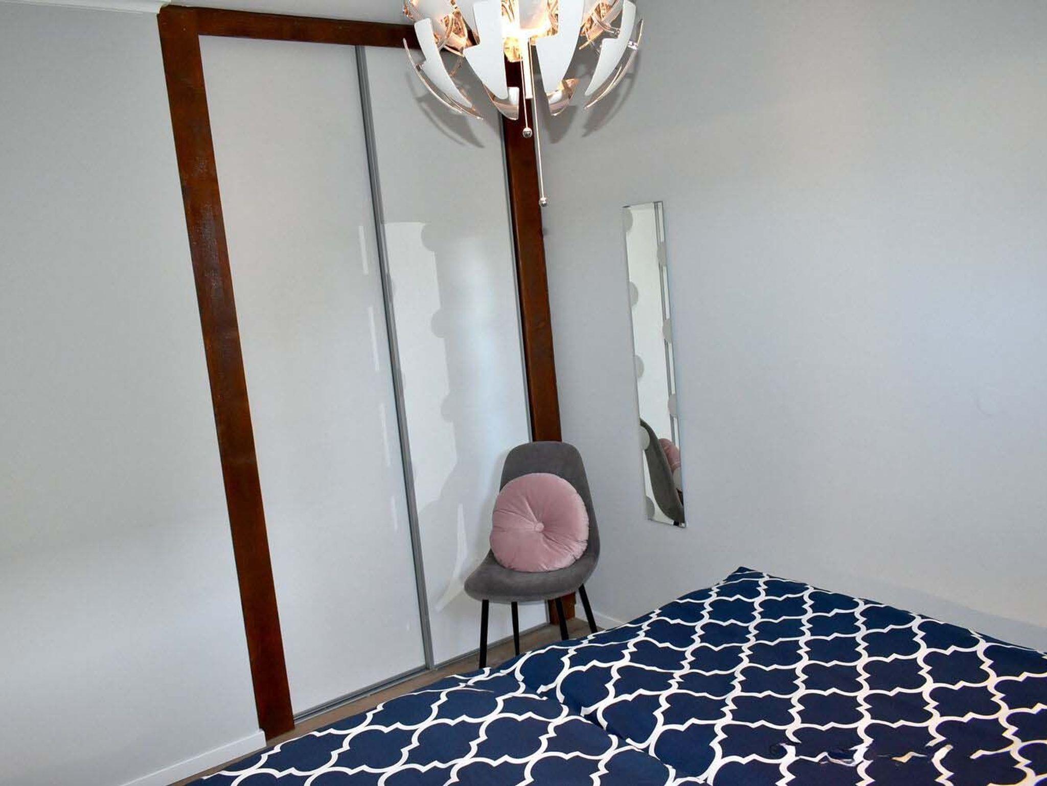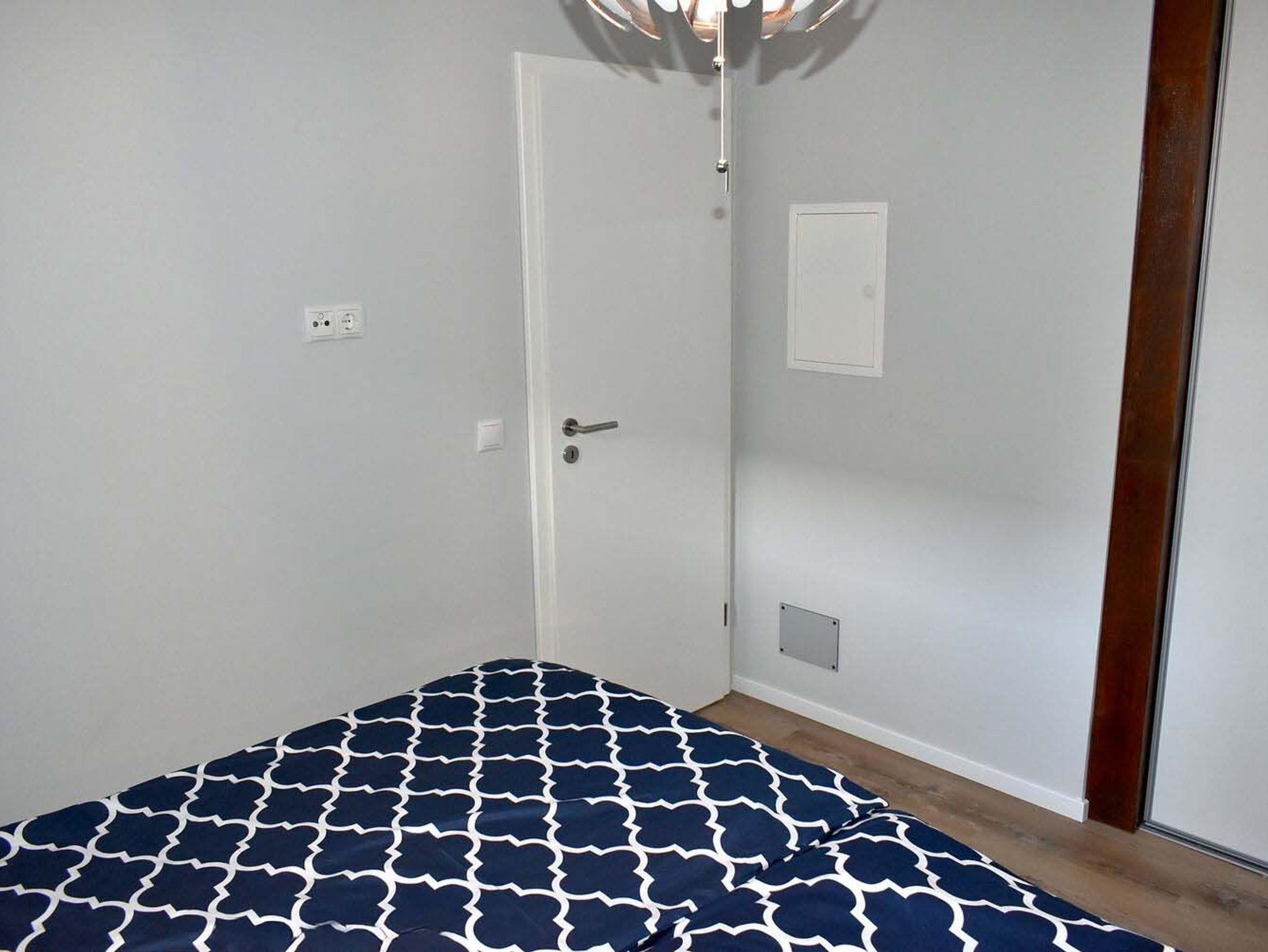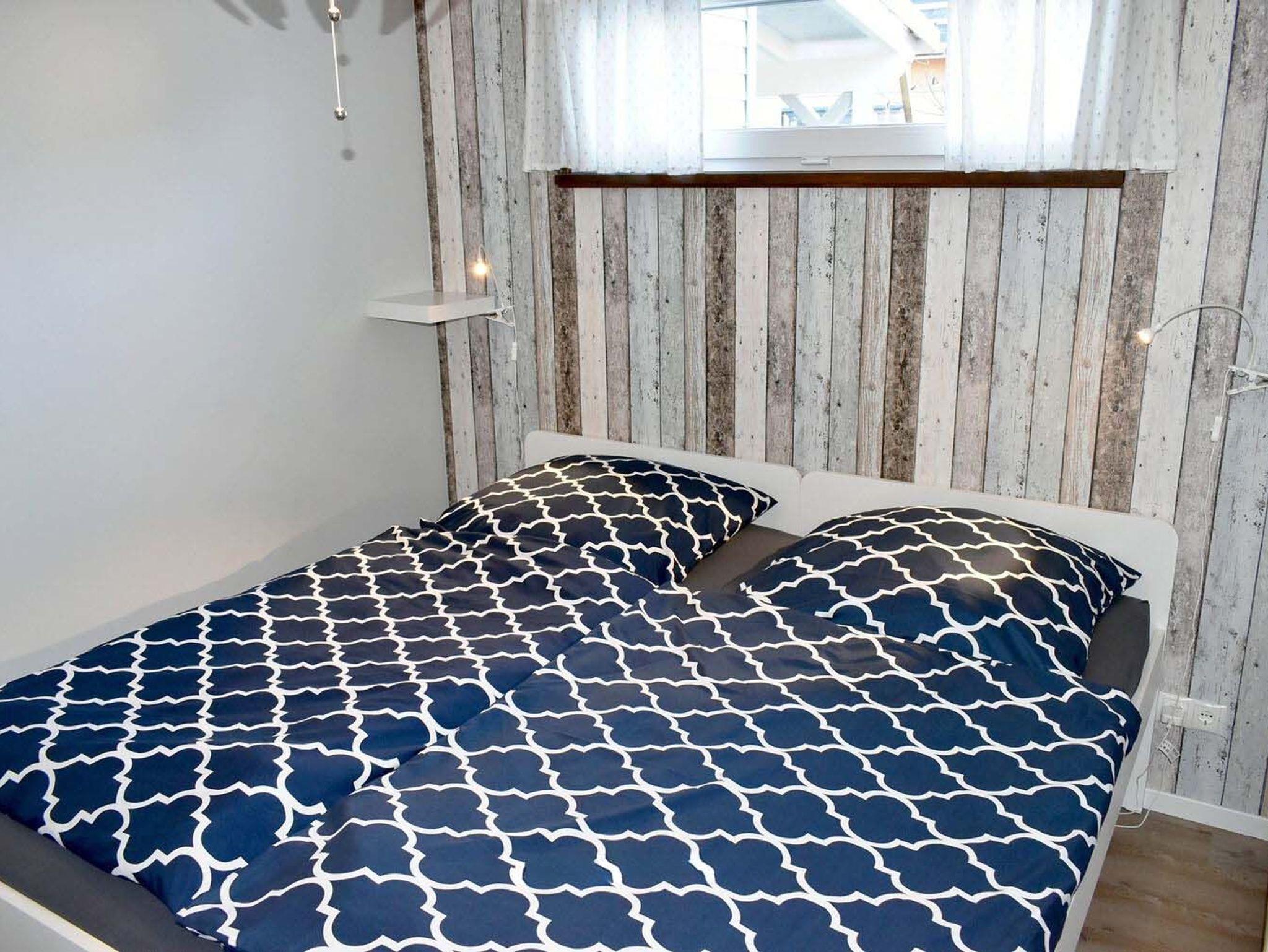 Schlafzimmer 1: 2 Ablagen, 2 Matratzen, Doppelbett 2,00 x 1,80 m, Einbauschrank, Spiegel, Staubsauger, Stuhl