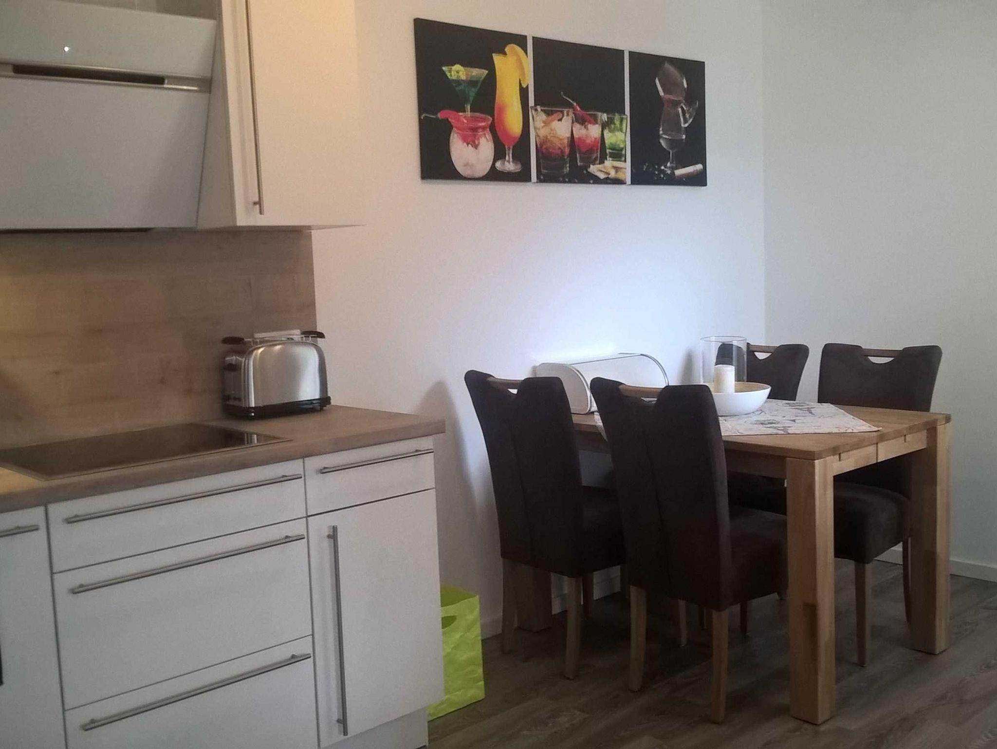 - Esstisch für 4 Personen mit Stühlen ? Hochstuhl für Kleinkind vorhanden;
