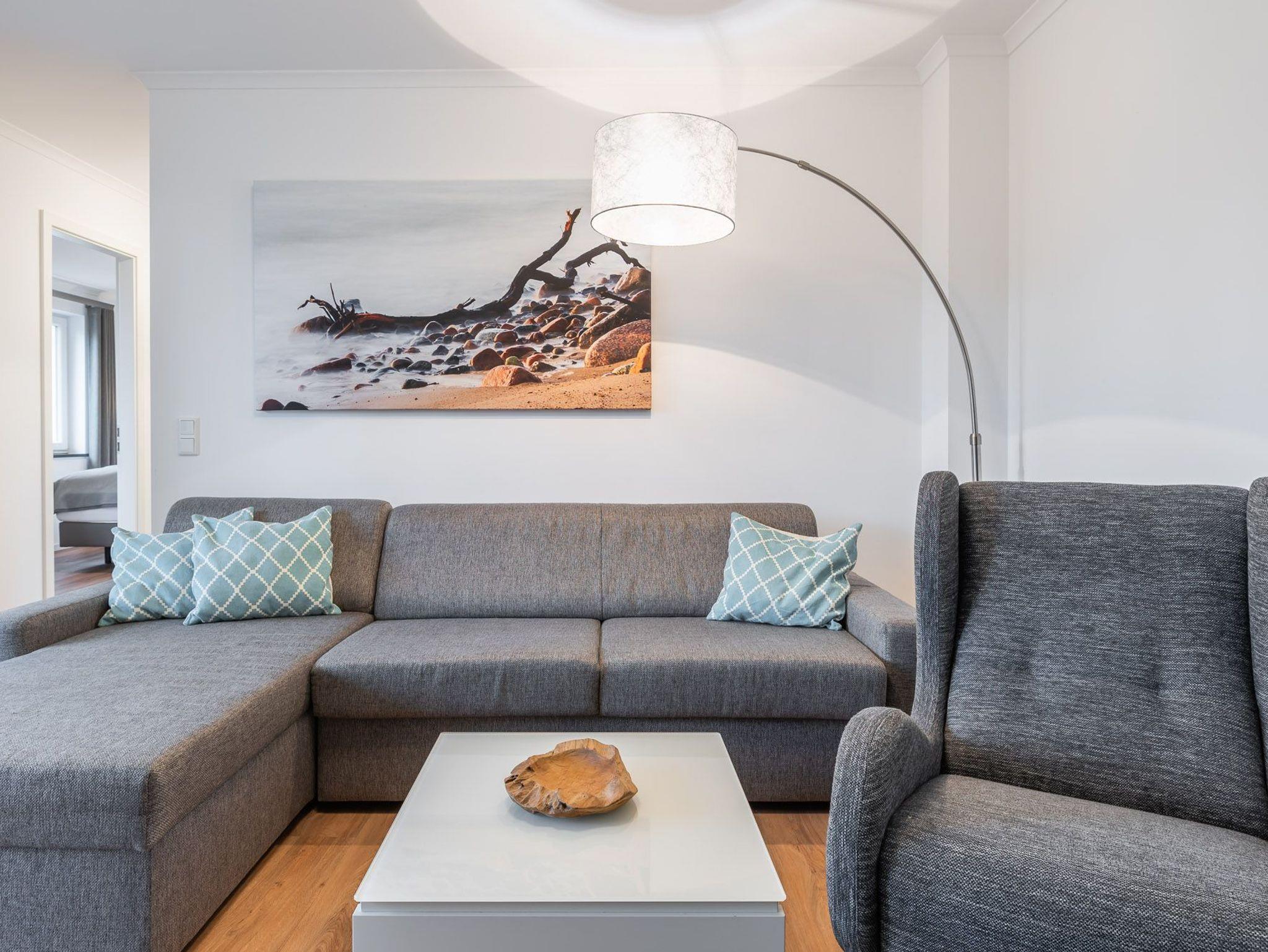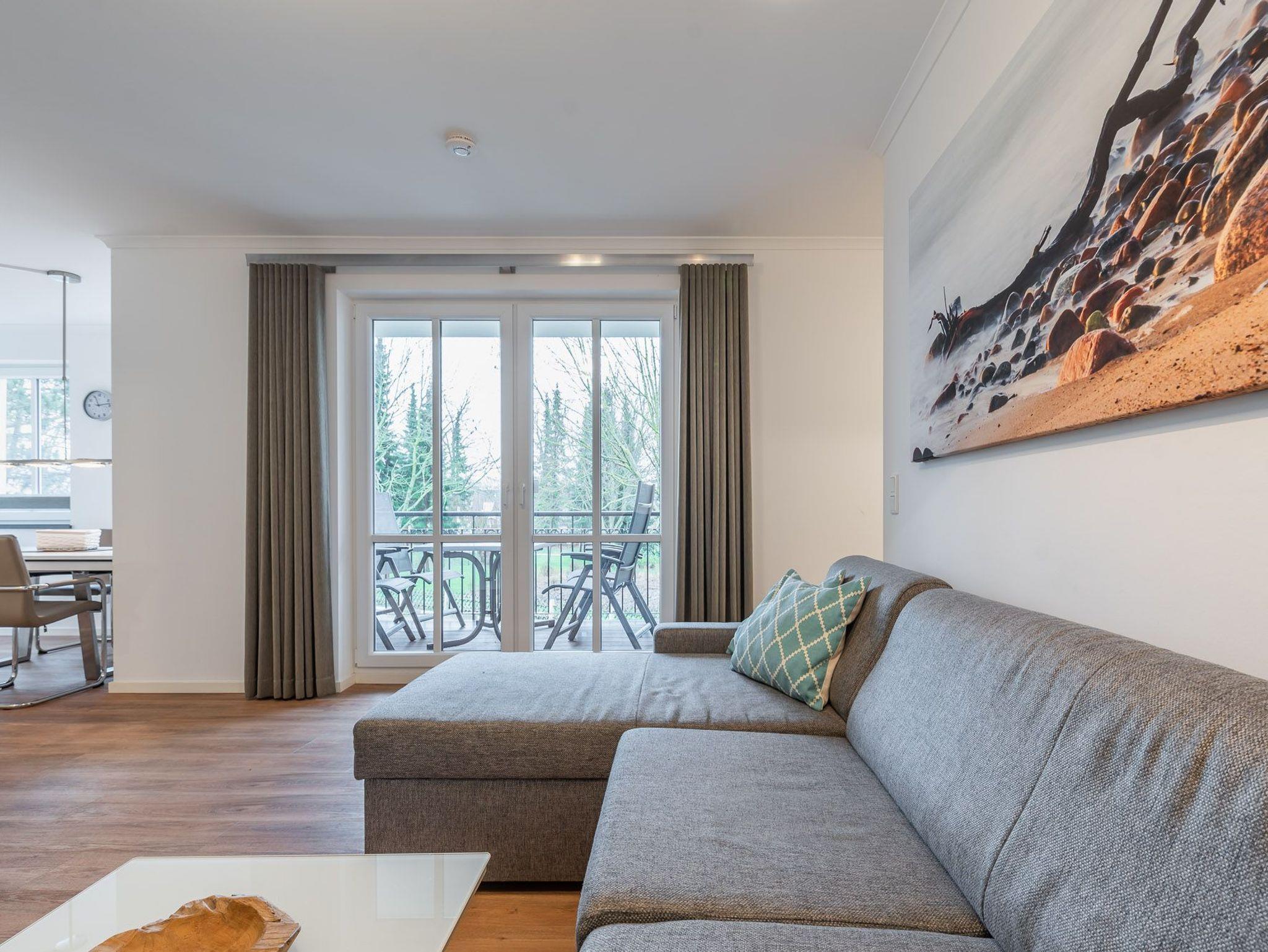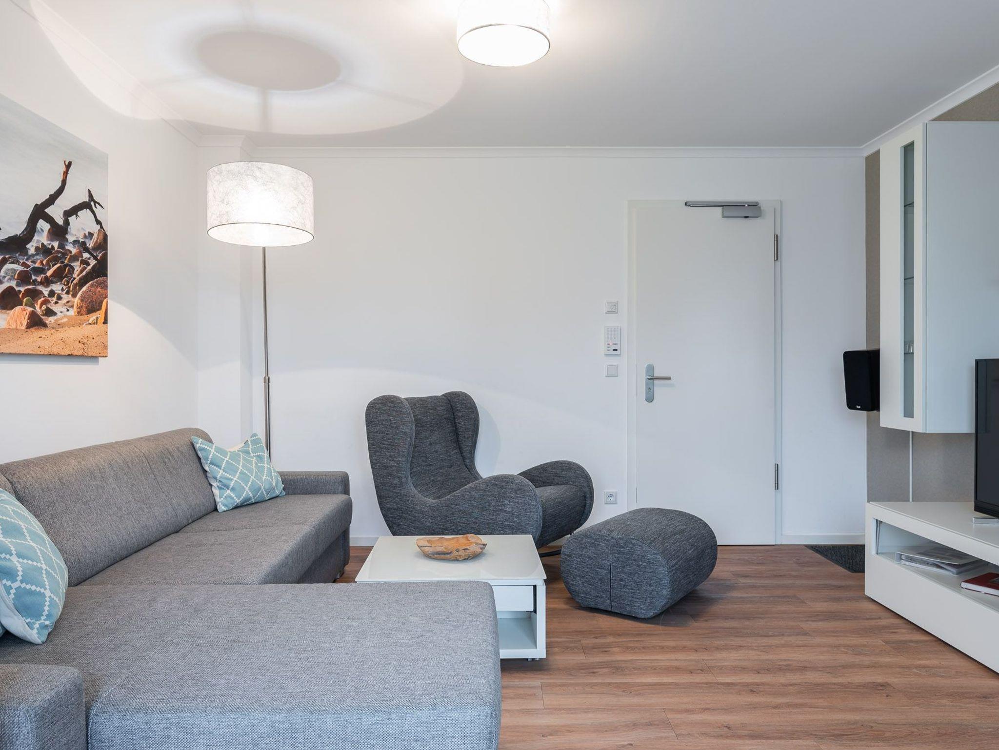 Die 2-Zimmer-Ferienwohnung im 1. OG des neu errichteten Ferienparks im Ostseebad Nienhagen lässt kaum Wünsche offen. Der Wohnbereich verfügt über eine große und gemütliche Schlafcouch, einen Couchtisch, ein 48-Zoll-Fernseher, ein Multimedia-Center