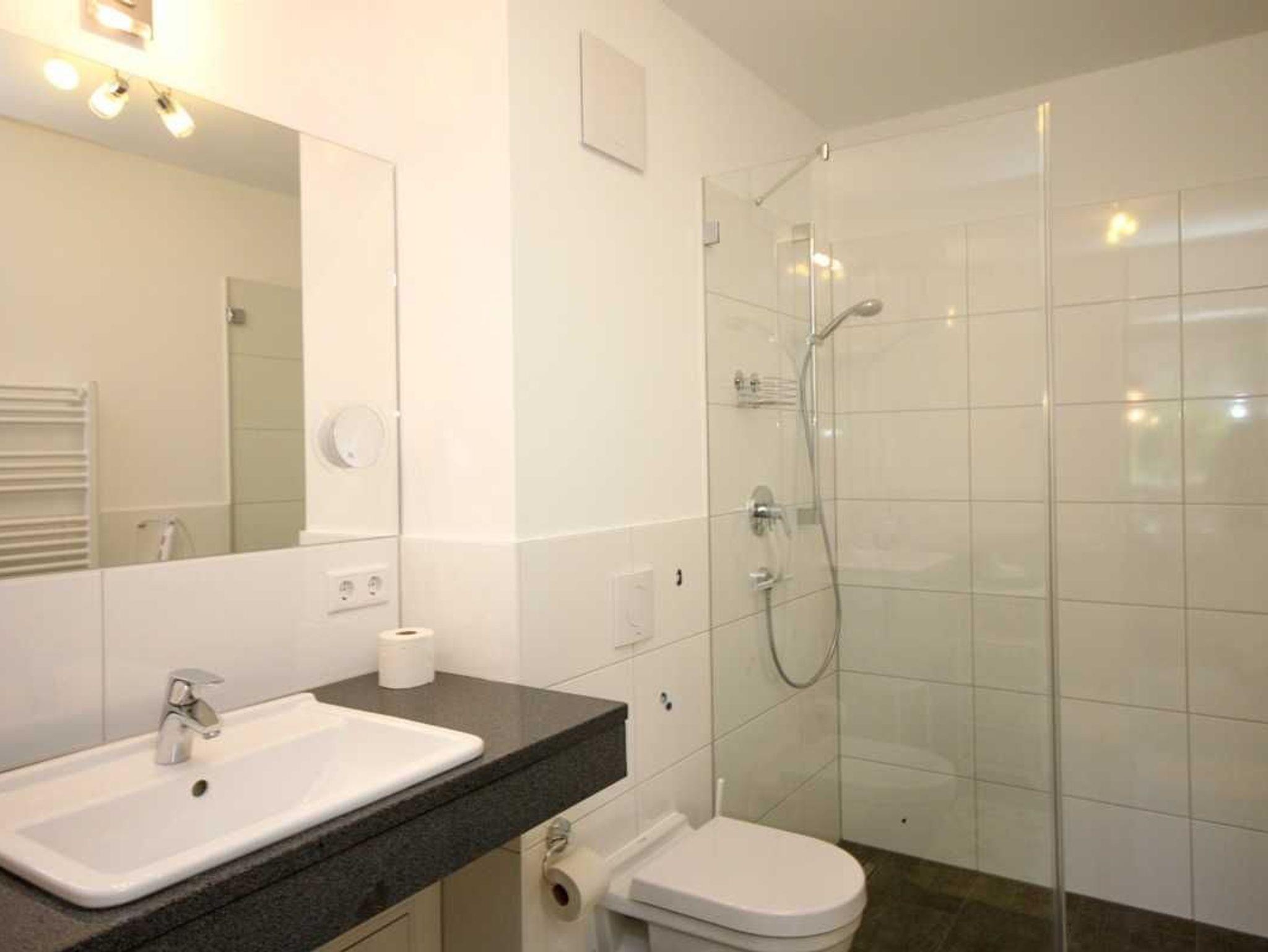 ? Hochwertiges Bad mit ebenerdiger Regenwalddusche, Fön, Elektrohandtuchhalter;