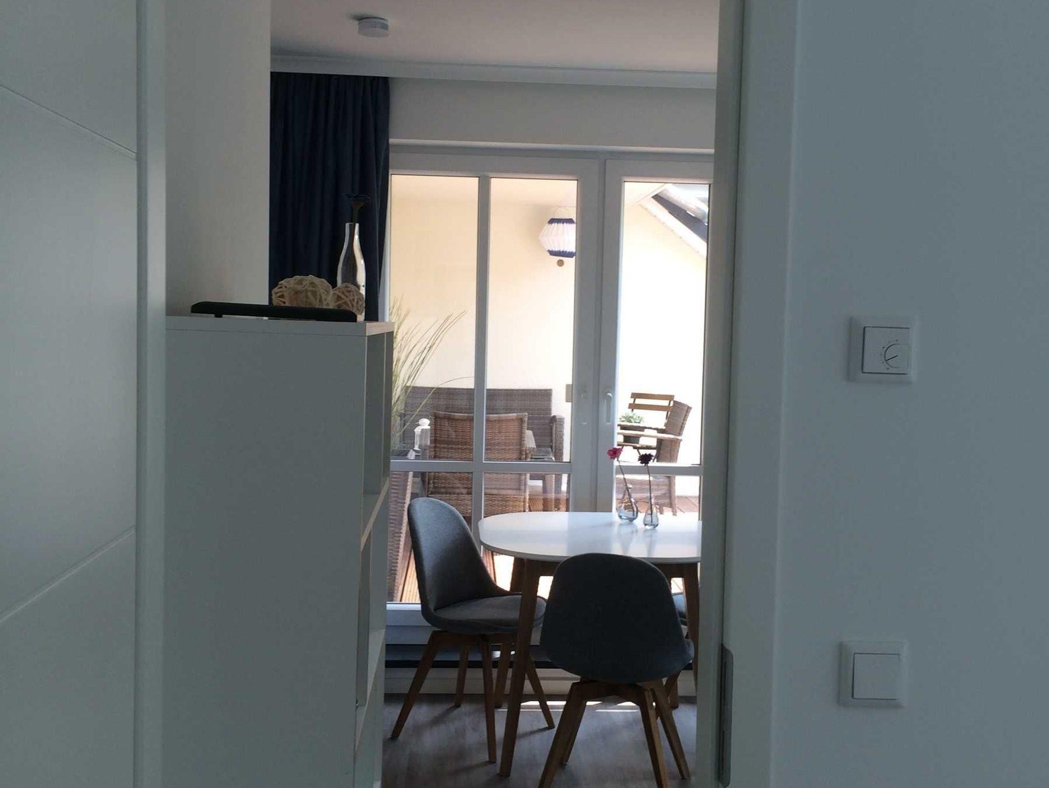 Die 52 m² 2 Raum-Ferienwohnung mit Persönlichkeit im skandinavischen Stil bietet Dir einen offenen Wohn-/Kochbereich mit Esstisch 3 Stühlen , 1 Hocker,
