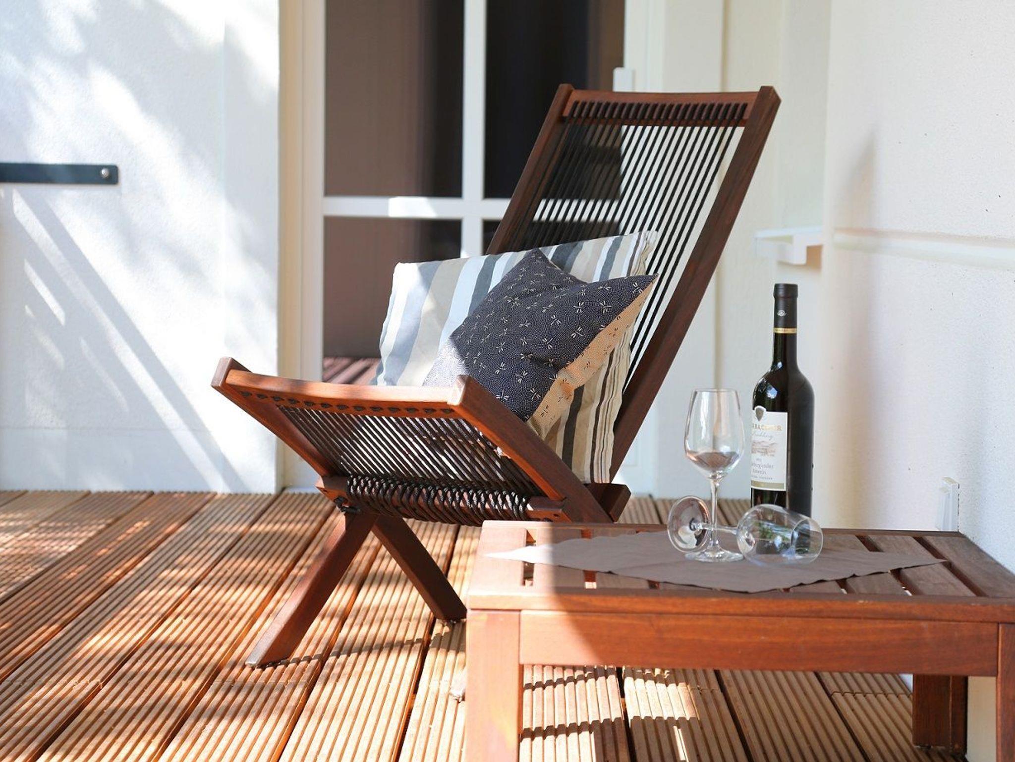 Selbstverständlich finden Sie neben den Sitzmöbeln auch einen Balkontisch sowie einen bequemen Sitzsack.