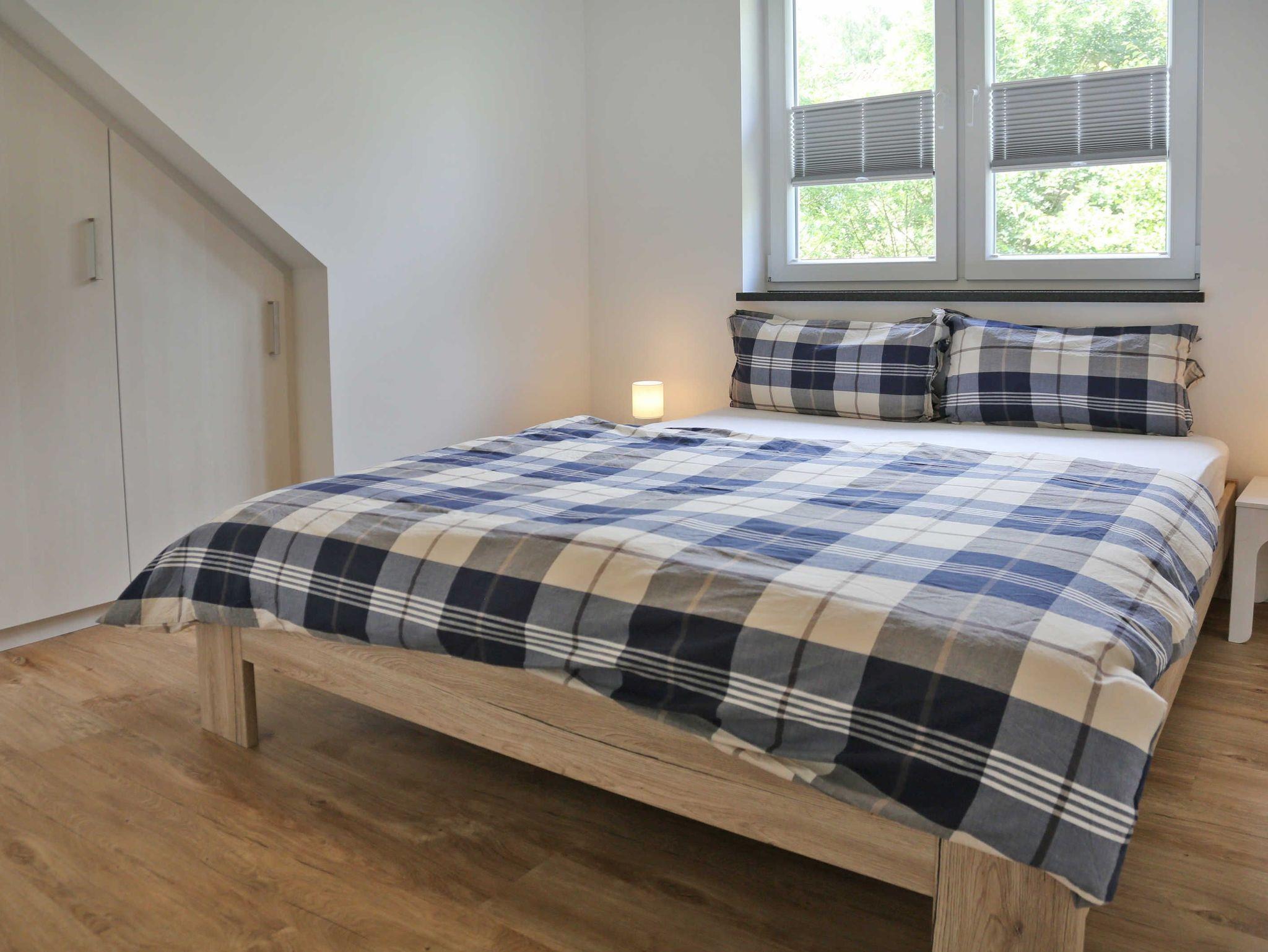 Bei uns finden Sie zwei Schlafzimmer: Ein Schlafzimmer mit einem Doppelbett der Größe 160cm x 200cm sowie ein kleines Kinderschlafzimmer mit einem Etagenbett.