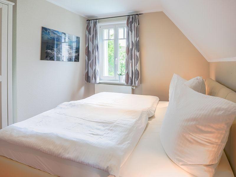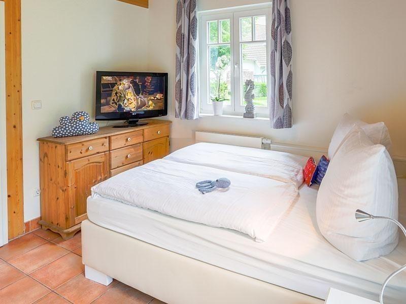 Über eine Wendeltreppe gelangen Sie in das Obergeschoss. Hier stehen drei weitere Schlafzimmer für Sie bereit. Diese sind eingerichtet mit je einem komfortablen Doppelbett sowie einem Kleiderschrank mit viel Platz für Ihre Urlaubsgarderobe. In einem dieser Zimmer finden Sie ein zusätzliches Fernsehgerät.