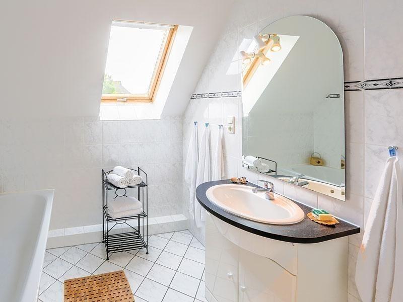 Ein weiteres Badezimmer befindet sich ebenfalls auf dieser Ebene. Es ist ausgestattet mit einer Badewanne, einem WC, einem Waschtisch mit geräumigem Unterschrank sowie diversen Ablageflächen für Ihre Badutensilien.