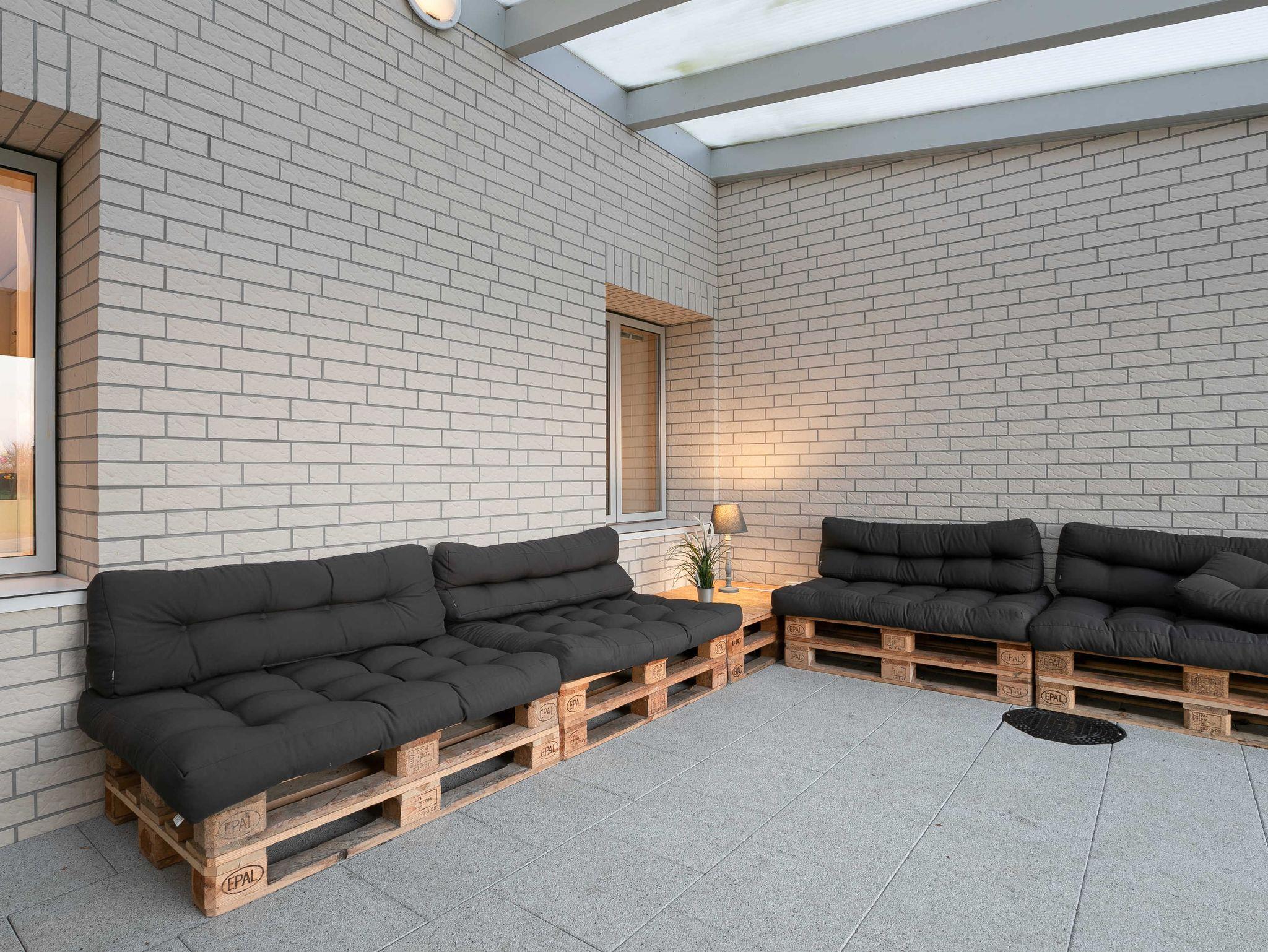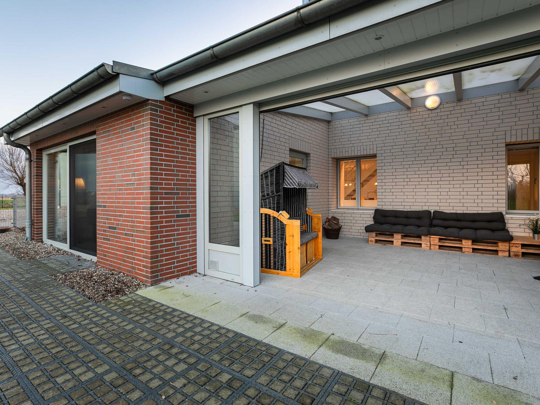 Entspannt in der Sonne auf der eigenen Terrasse mit 2 Strandkörben oder auch bei schlechtem Wetter an der frischen Luft im überdachten Freisitz auf den gemütlichen Loungemöbeln.
