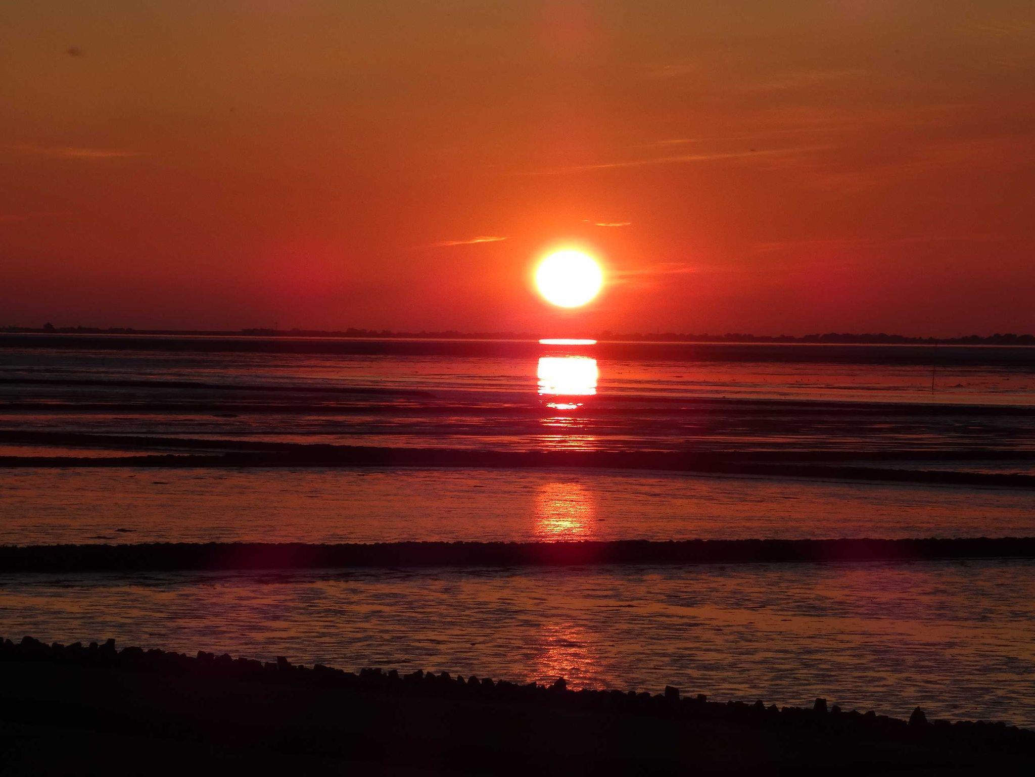 Das Auto kann man stehen lassen, um runter an den Deich zu laufen oder zu radeln, von wo die schönsten Sonnenuntergänge der Welt betrachtet werden können (O-Ton diverse Stammgäste).
