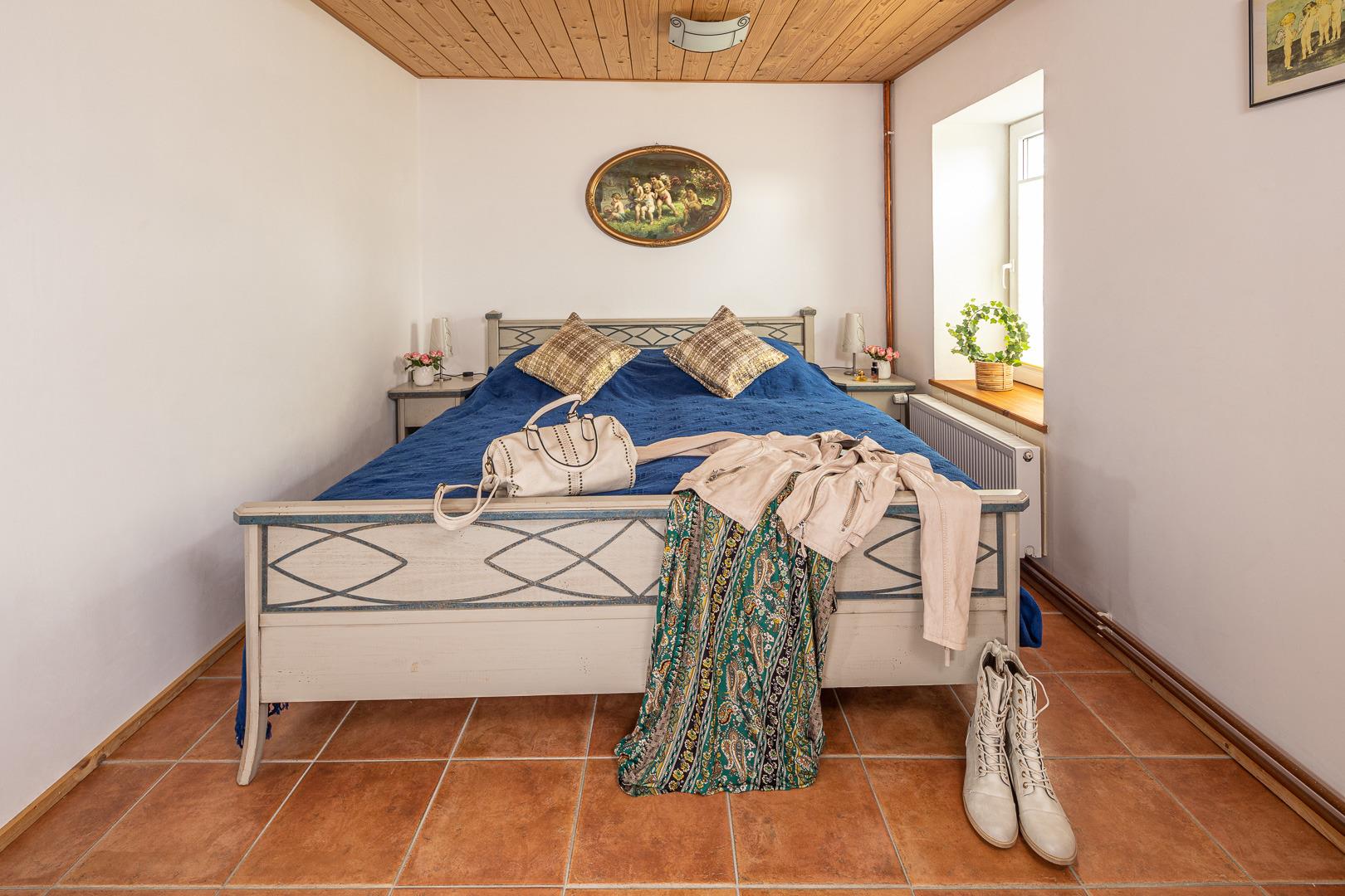 Daneben befindet sich das Schlafzimmer mit Doppelbett. Eine kleine Terrasse vor dem Esszimmer lässt Sie bei schönem Wetter die Sonnenstrahlen auf der Liege genießen.