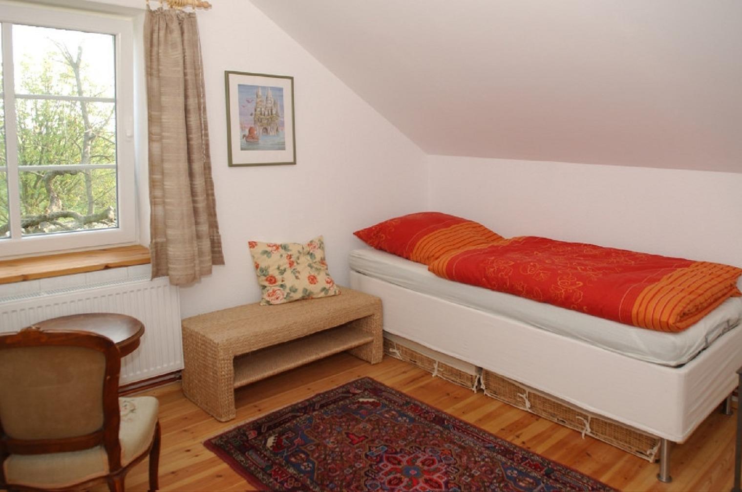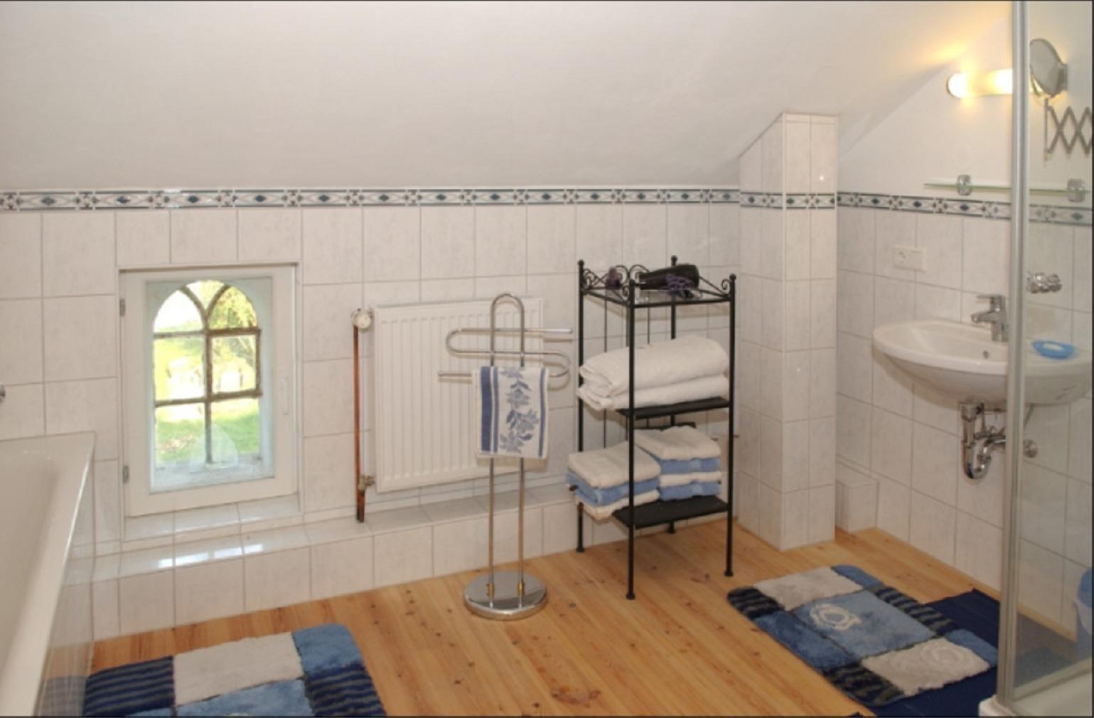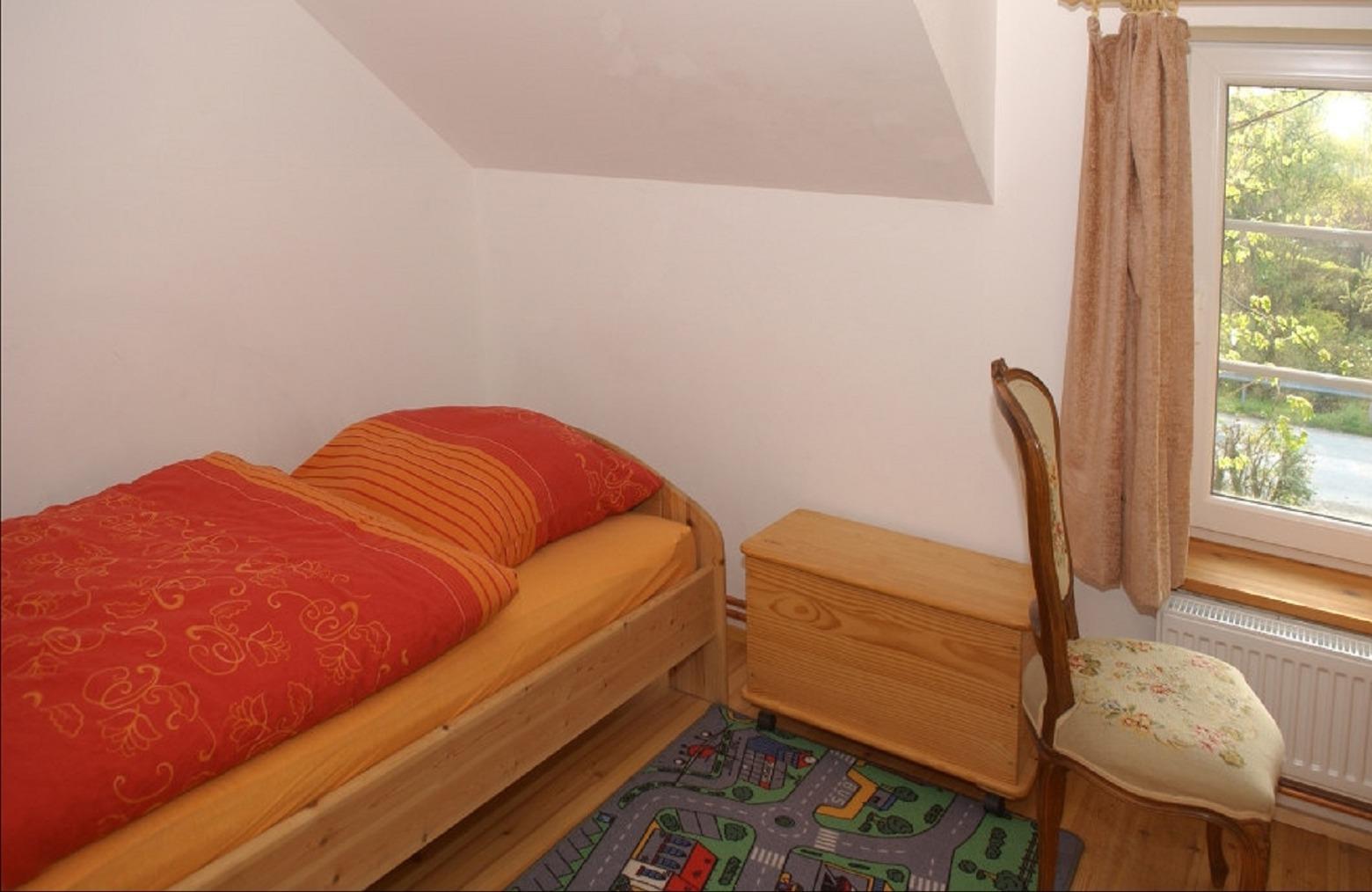 Im 1. Stock ist das Badezimmer mit Badewanne und Dusche; 3 Schlafzimmer mit je einem Einzelbett, davon eines mit PC und WLAN.