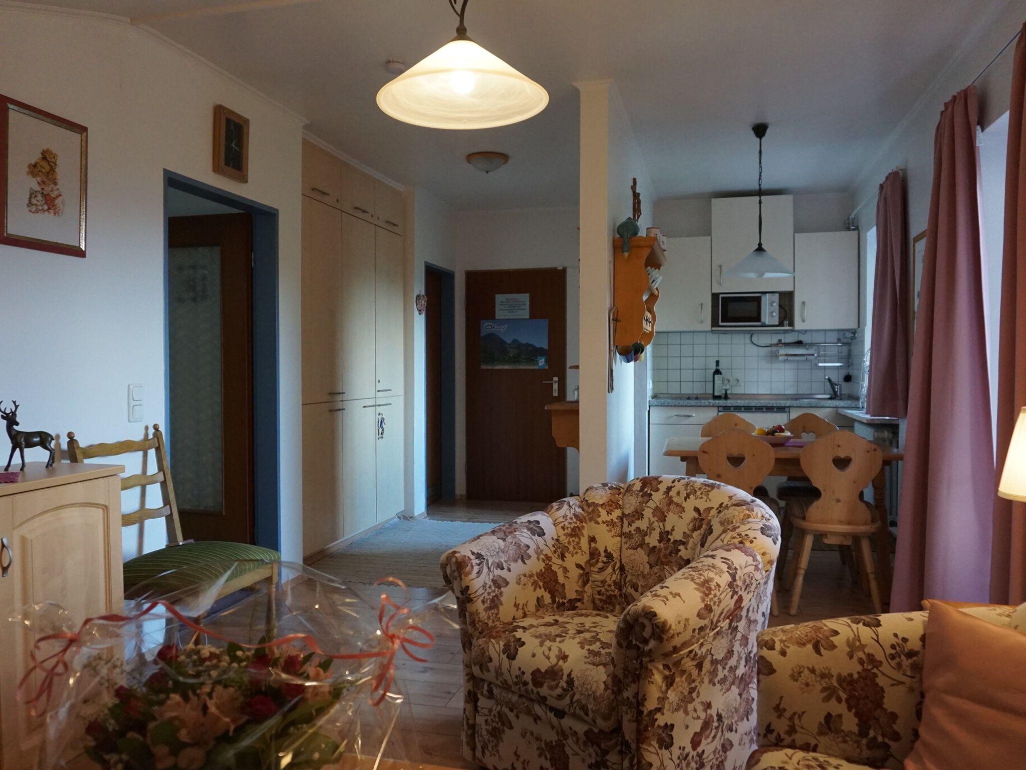 Gemütliche Ferienwohnung im 2. Obergeschoss (Dachgeschoß) mit überdachtem Balkon zur Süd-Ostseite mit Blick auf Oberaudorf, das Inntal und das Kaisergebirge. Die Wohnung ist für den Aufenthalt von 1 bis 3 Personen geeignet und entsprechend möbliert. Küchenzeile mit Ceran-Kochfeld ausgestattet. Für Ihren PKW steht eine Garage zur Verfügung. Bettwäsche u. Handtücher sind vorhanden.