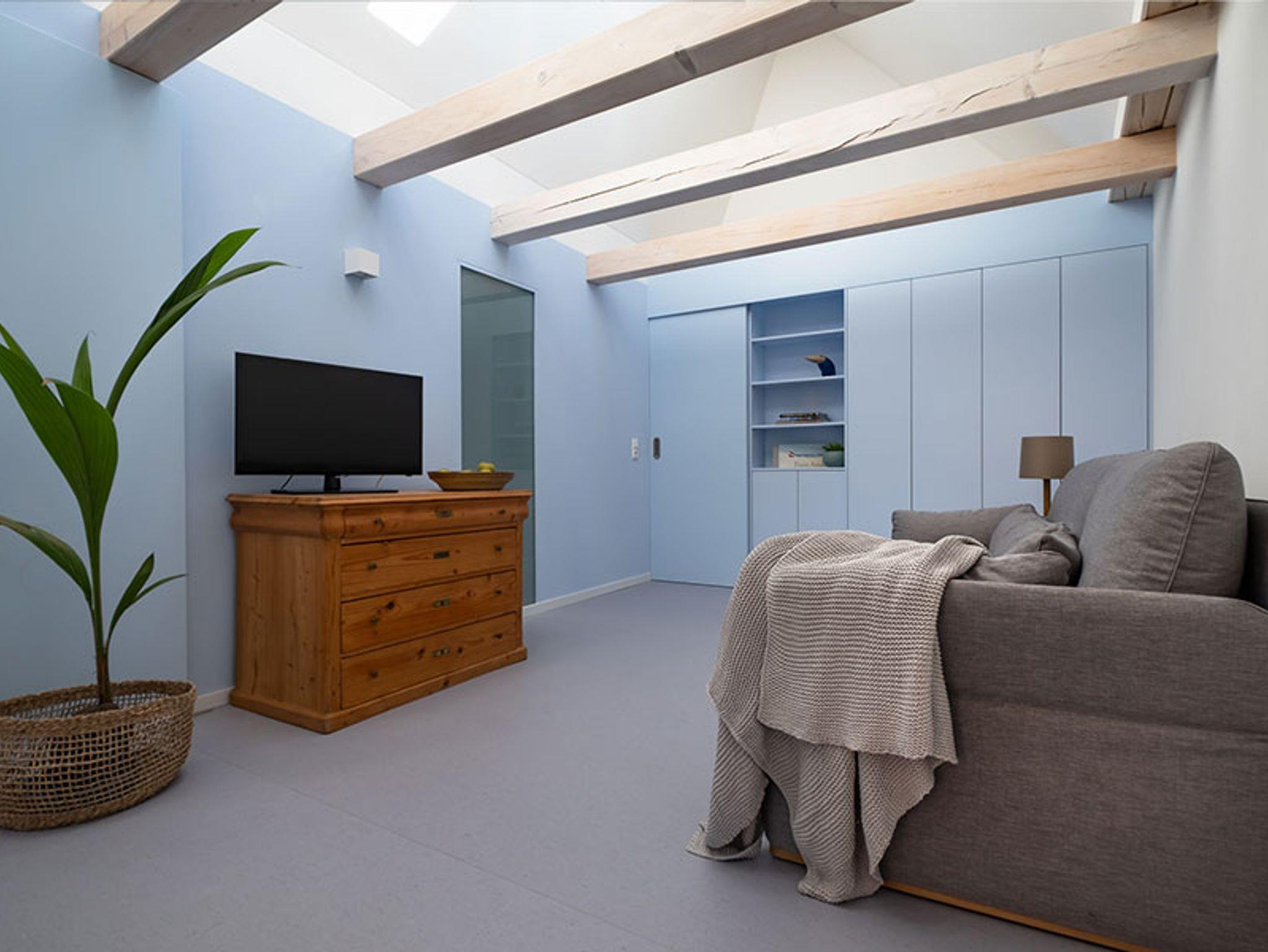 Ein Schlafzimmer mit einem extra langen Bett (2.20 m), ein Wohn-Schlafraum mit einem komfortablen Schlafsofa, ein komfortables Schlafsofa im separierbaren Wohnraum, diverse Kissen und Decken, Arbeitsplatz mit WLAN, kleine Bibliothek mit der Möglichkeit Bücher auszuleihen, eine gut ausgestattete Küche in der Sie Ihrer Kochleidenschaft frönen können, Waschmaschine, Trockner, Bügeleisen finden Sie im Technikraum.