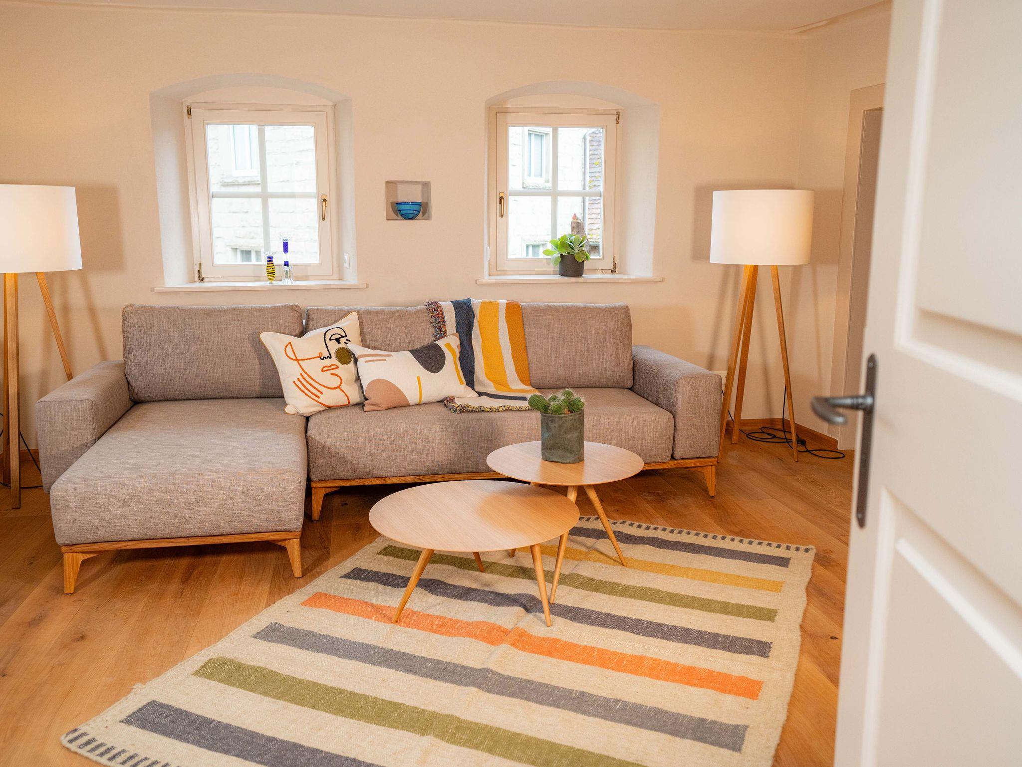 Diese wunderschöne Wohnung kann mit bis zu 6 Personen genutzt werden. Sie ist im Untergeschoss eines denkmalgeschützten Hauses. Es gibt 2 Schlafzimmer ein Wohnzimmer eine offene Küche mit Essplatz sowie ein Badezimmer und eine Toilette. Die Wohnung ist Exklusiv eingerichtet und es fehlt nichts zum Wohlfühlen. Am Abend könne Sie in einem Saunagarten mit holzbefeuerter Sauna entspannen. Unser Backhaus mit Kamin und Pizzaofen kann für einen gemütlichen Spieleabend genutzt werden.